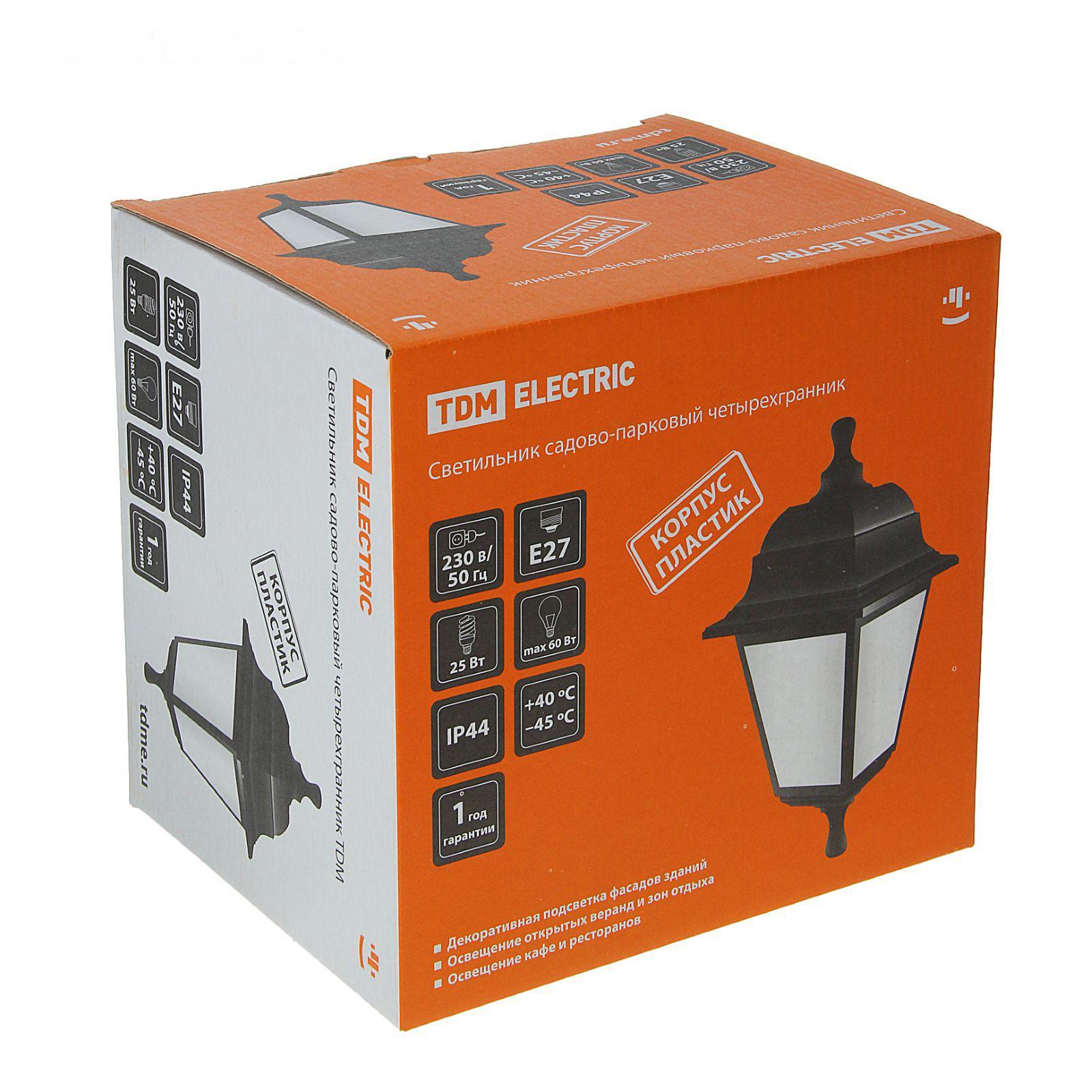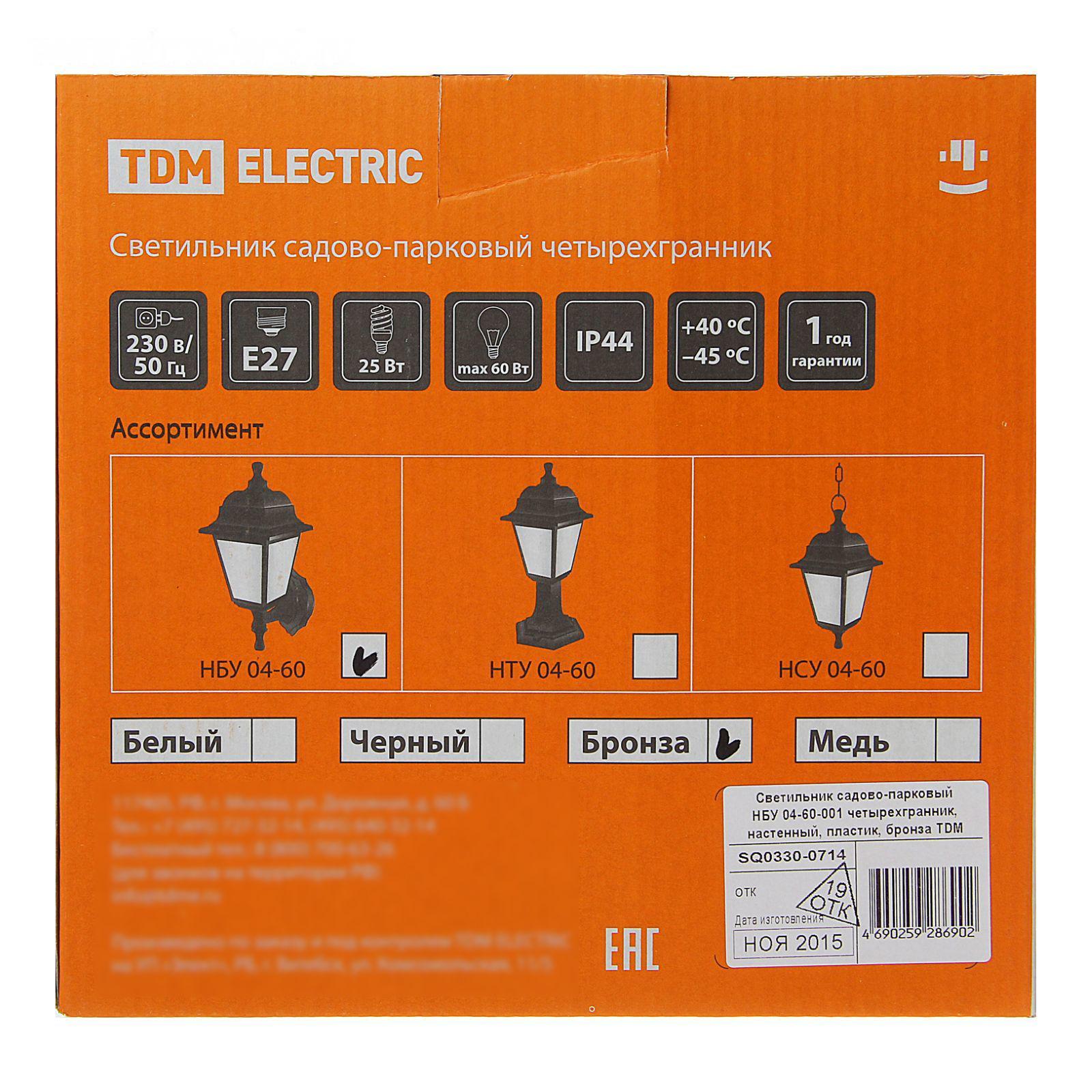 Светильник садово-парковый TDM НБУ 04-60-001, E27, 60 Вт, четырёхгр., настен., под бронзу