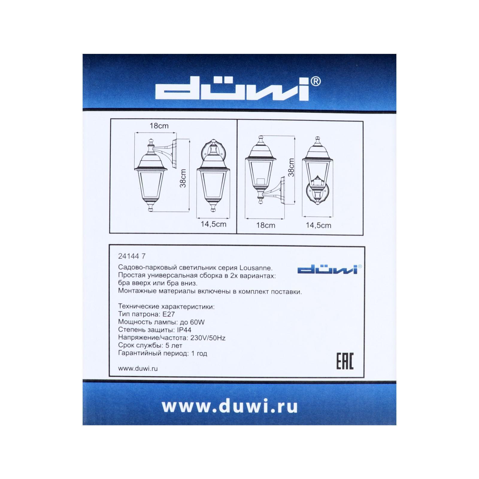 Светильник садово-парковый Duwi Lousanne, Е27, 60 Вт, 220 В, IP44, черный