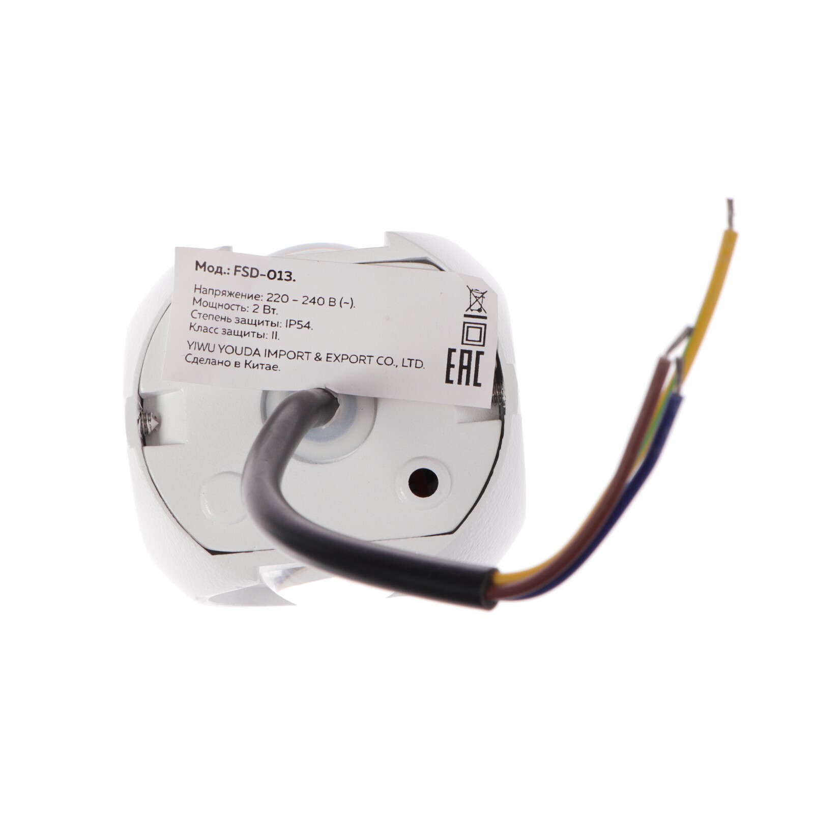 Светильник настенный уличный, 2 Вт, 3000К, однолучевой, IP54, 220 В, металл, белый