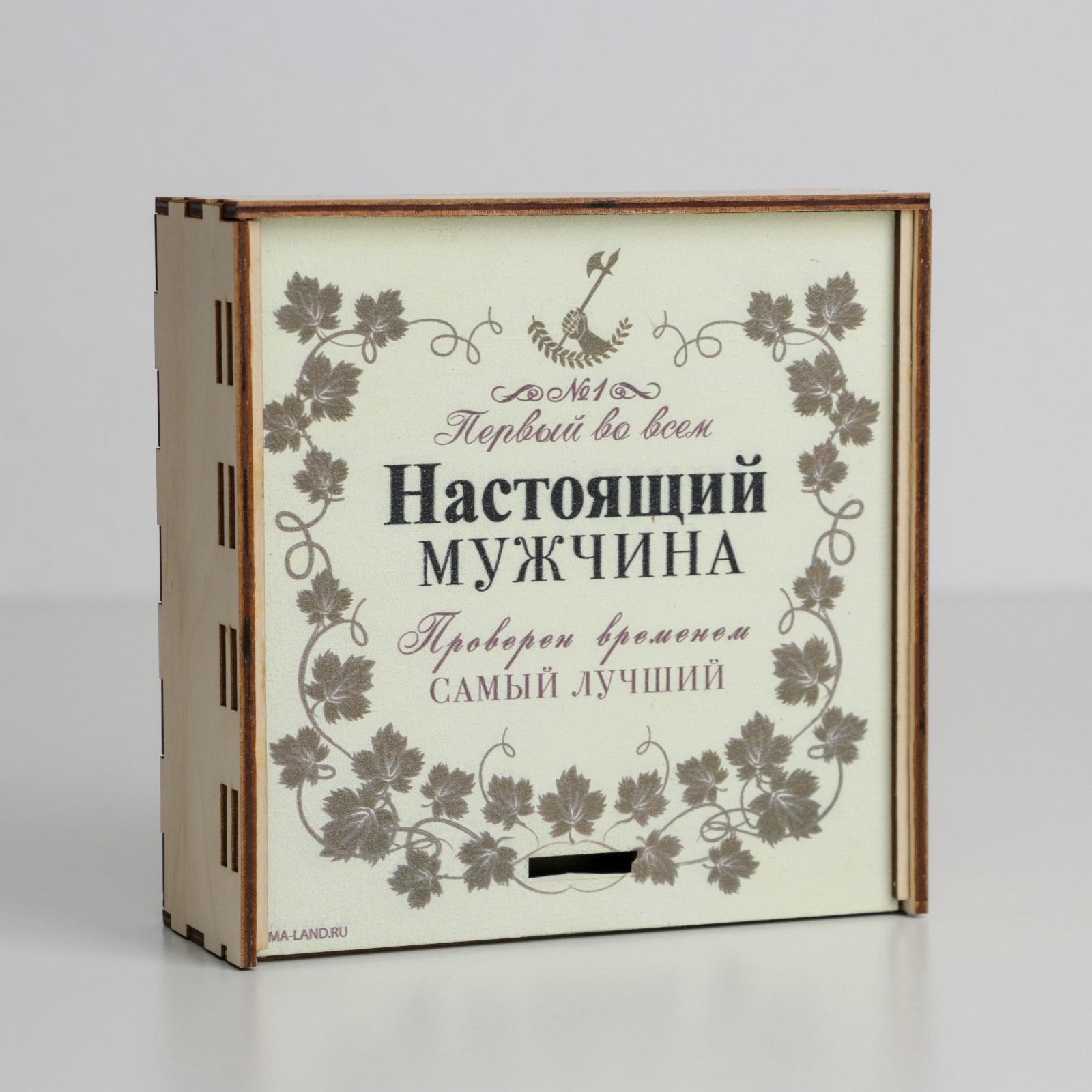 Ящик деревянный «Настоящий мужчина», 15,5 × 15,5 × 5,5 см
