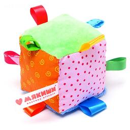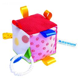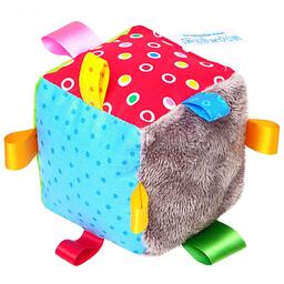 Кубик будет способствовать развитию у малыша воображения, мелкой моторики, цветового и тактильного восприятия. Яркий кубик выполнен в виде забавной мордашки с пришивными элементами.
