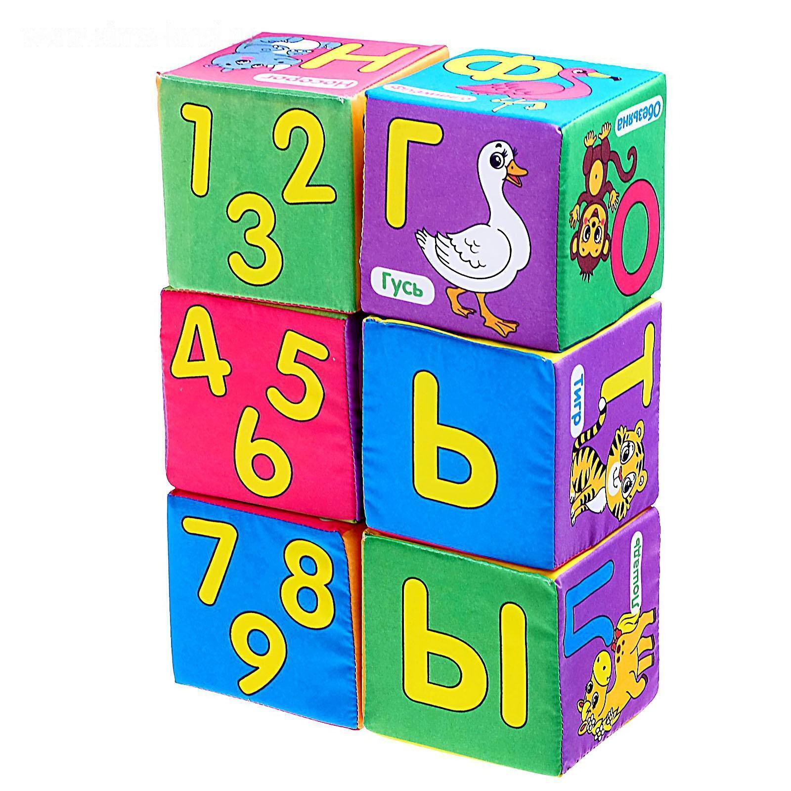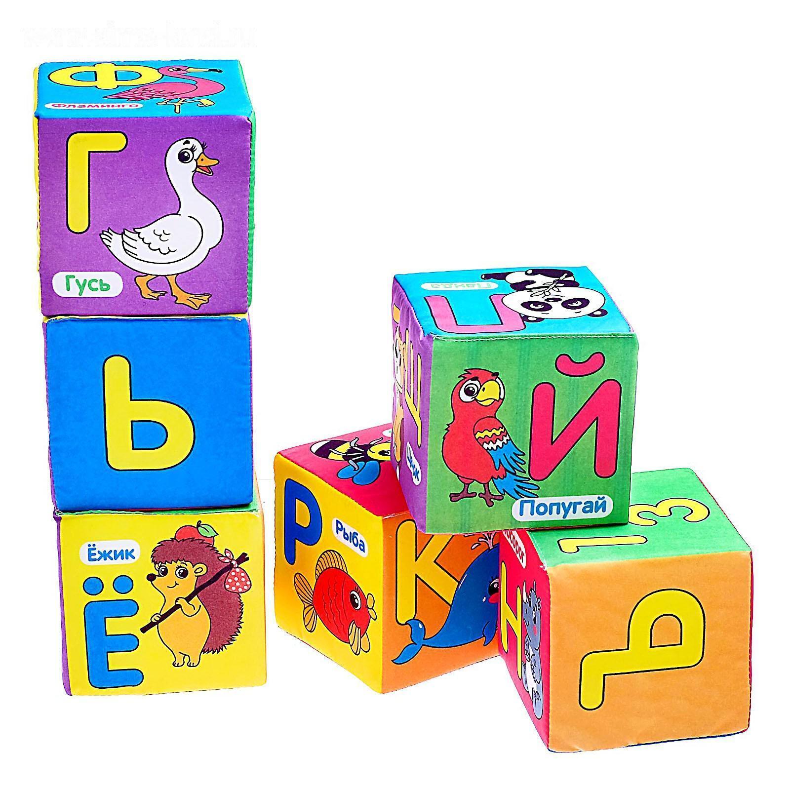Мягкие кубики «Учим алфавит», 6 шт, 10 х 10 см, по методике Монтессори