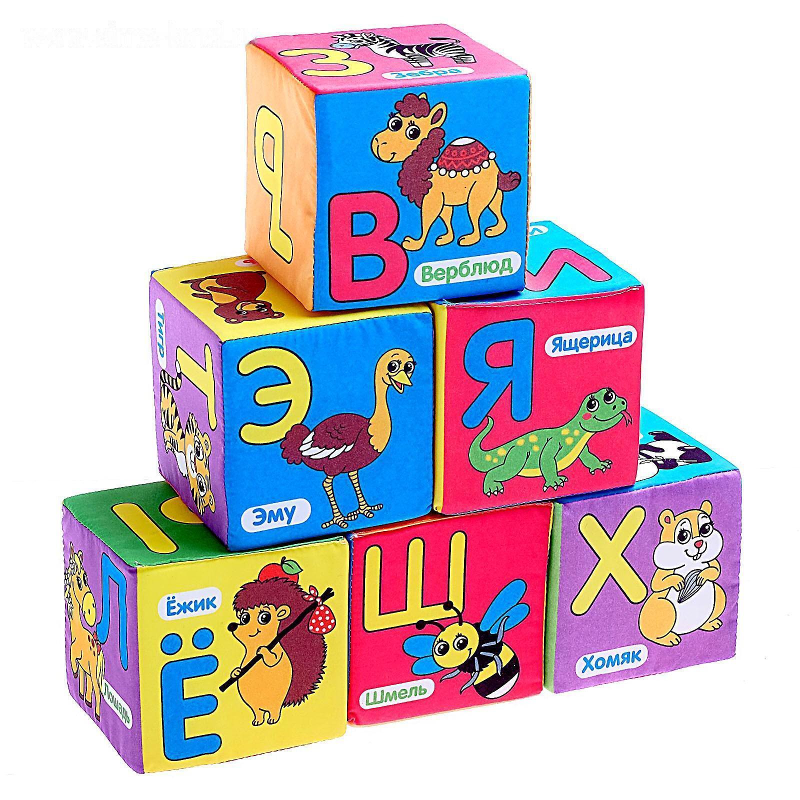 Мягкие кубики способствуют развитию тактильного восприятия, знакомят малыша с первыми животными и окружающим миром. Игрушки выполнены из безопасных и безвредных материалов: верх из трикотажного текстиля, наполнитель из синтепона.