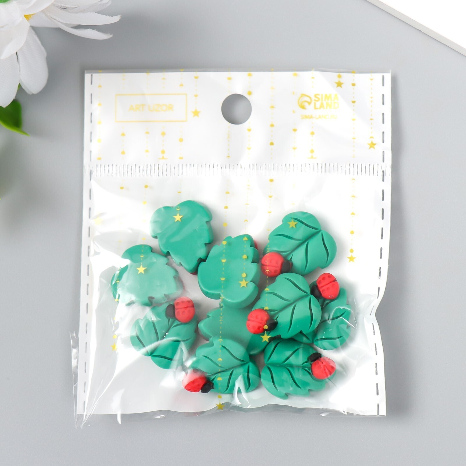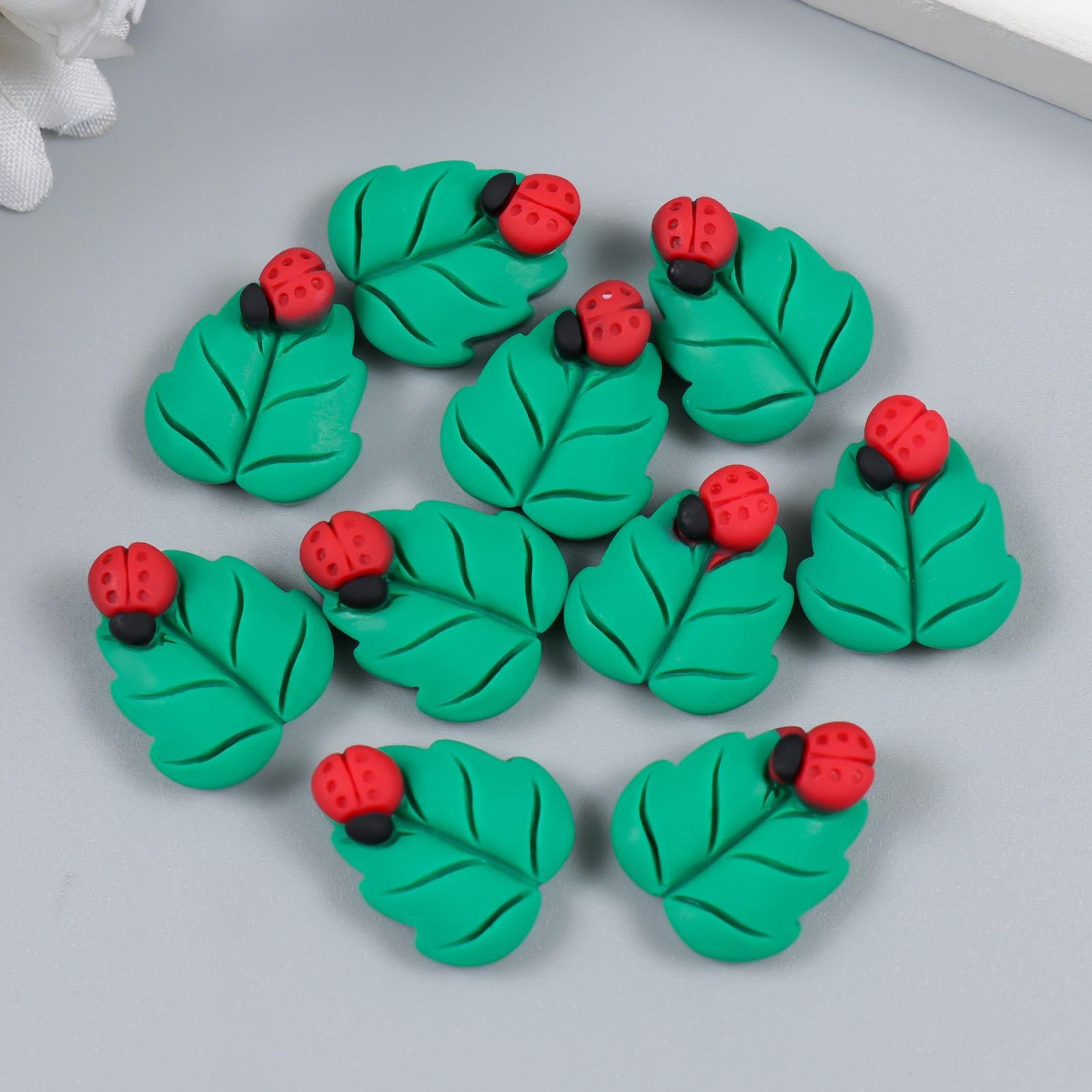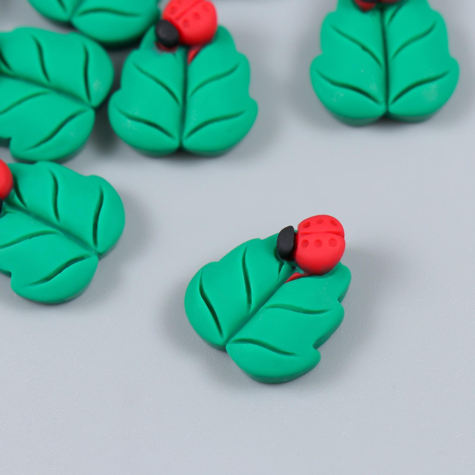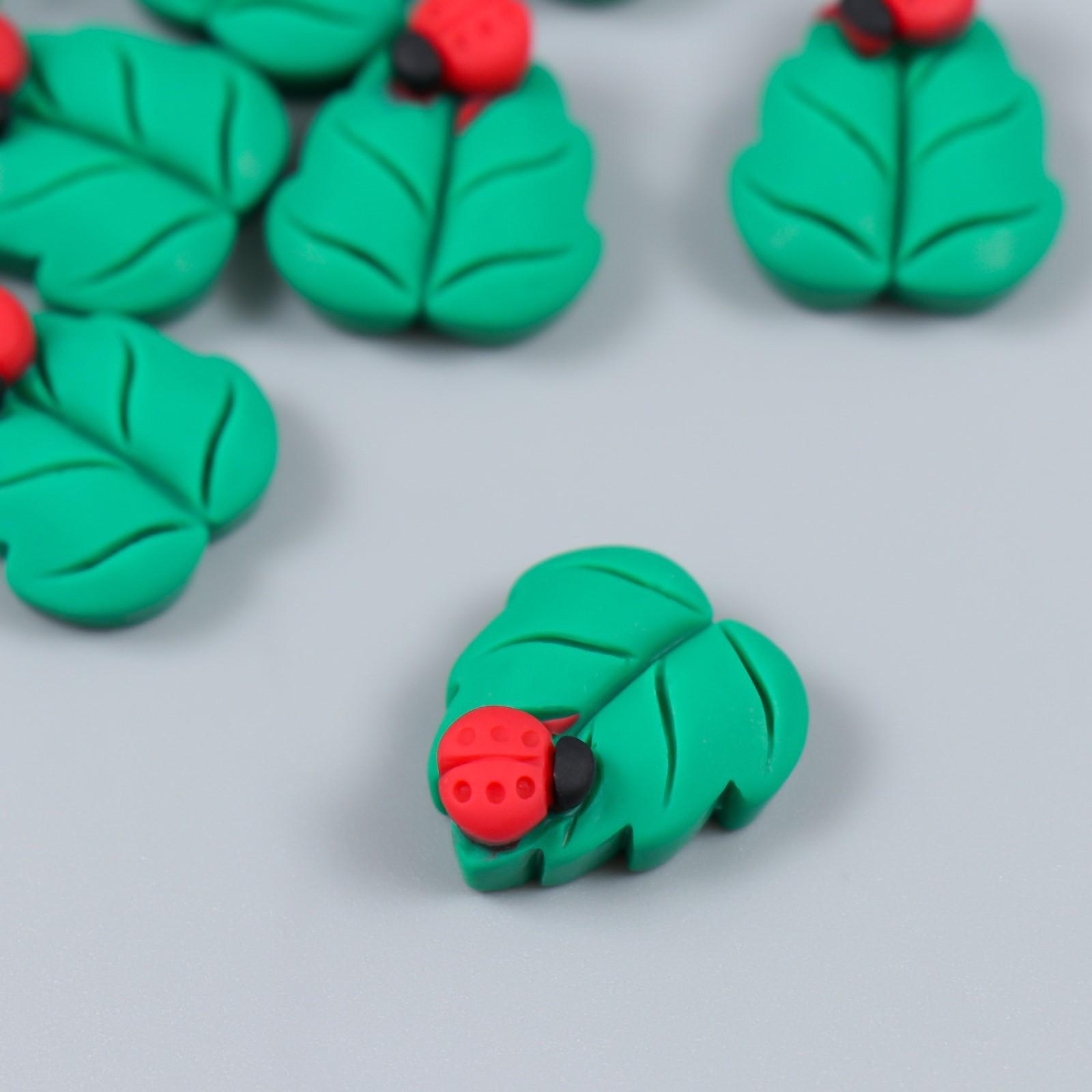 Декор для творчества пластик "Божья коровка на листе" 2х1,5 см