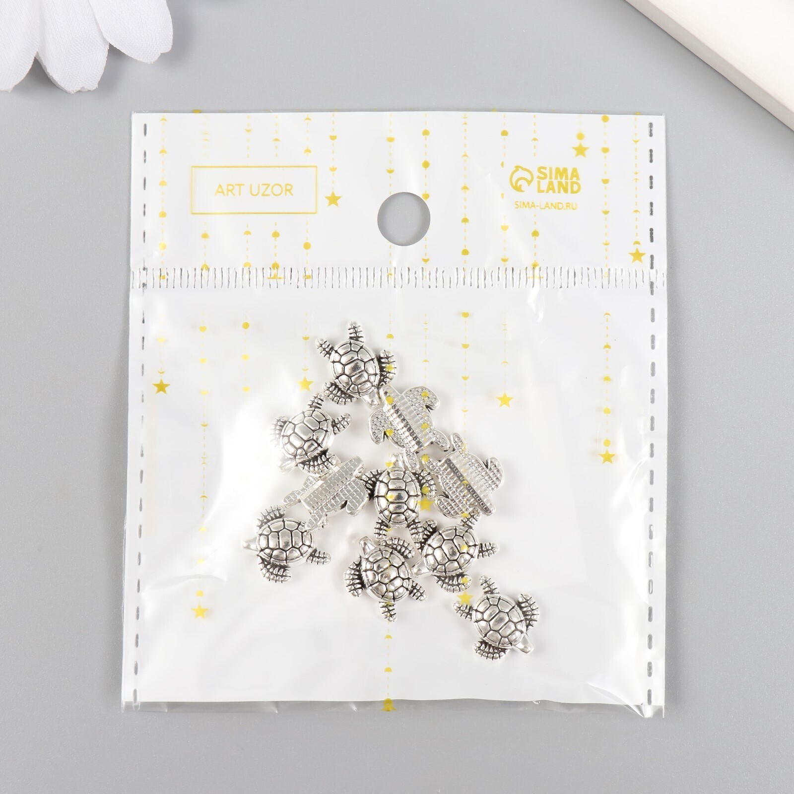 Декор для творчества металл "Черепашка" серебро 1,3х1,2 см