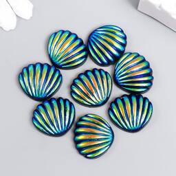 Декор для творчества пластик "Ракушка с перламутром" синий 1,8х2 см