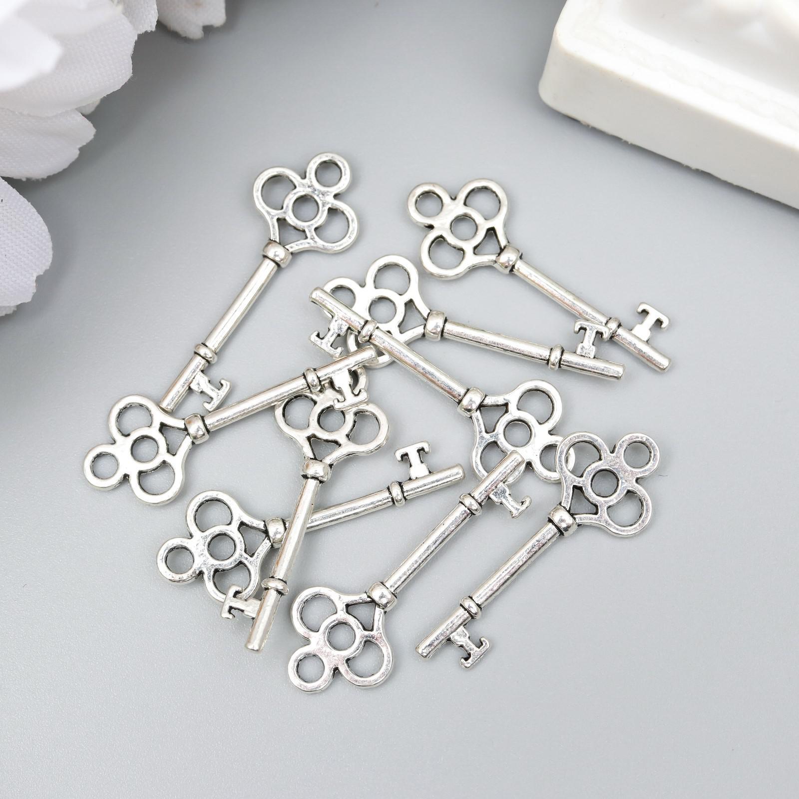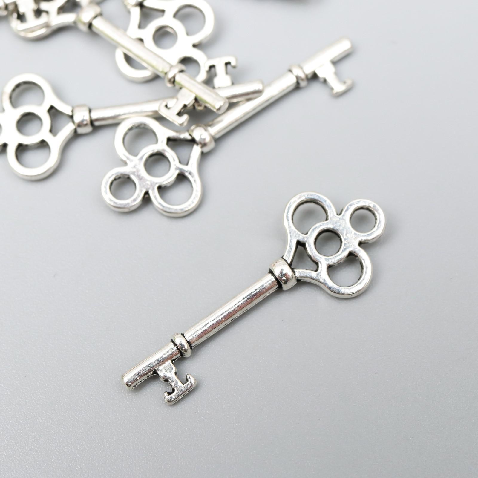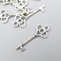 Декоративный элемент "Ключ" цвет серебро 9*25 мм