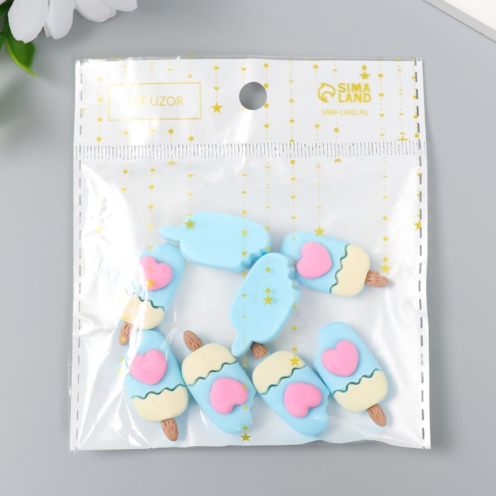 Декор для творчества пластик "Эскимо с сердечком" 3х1,5 см