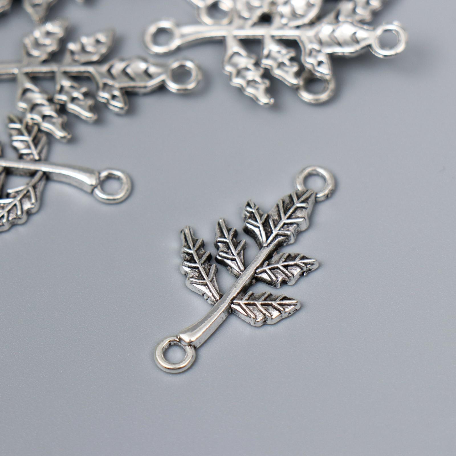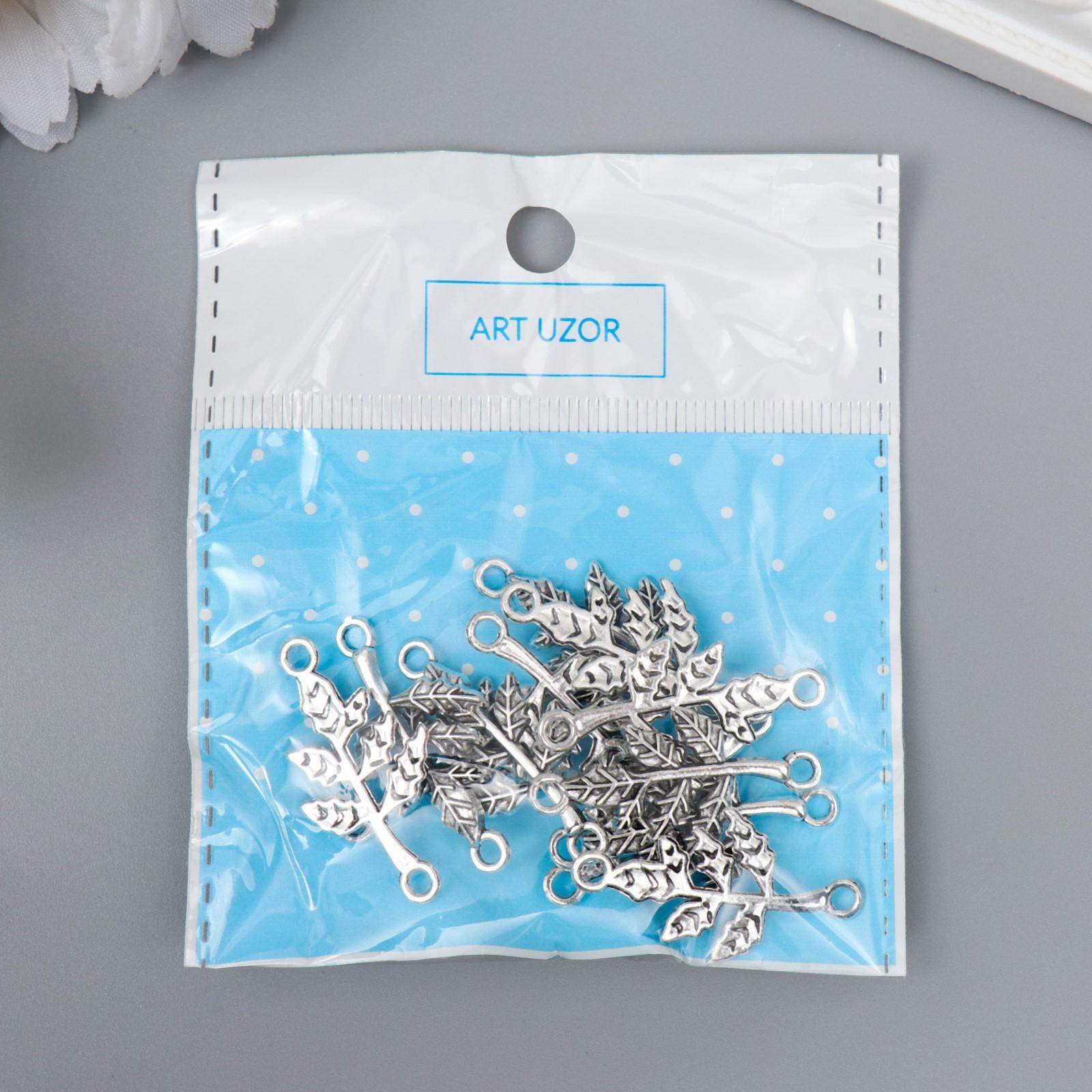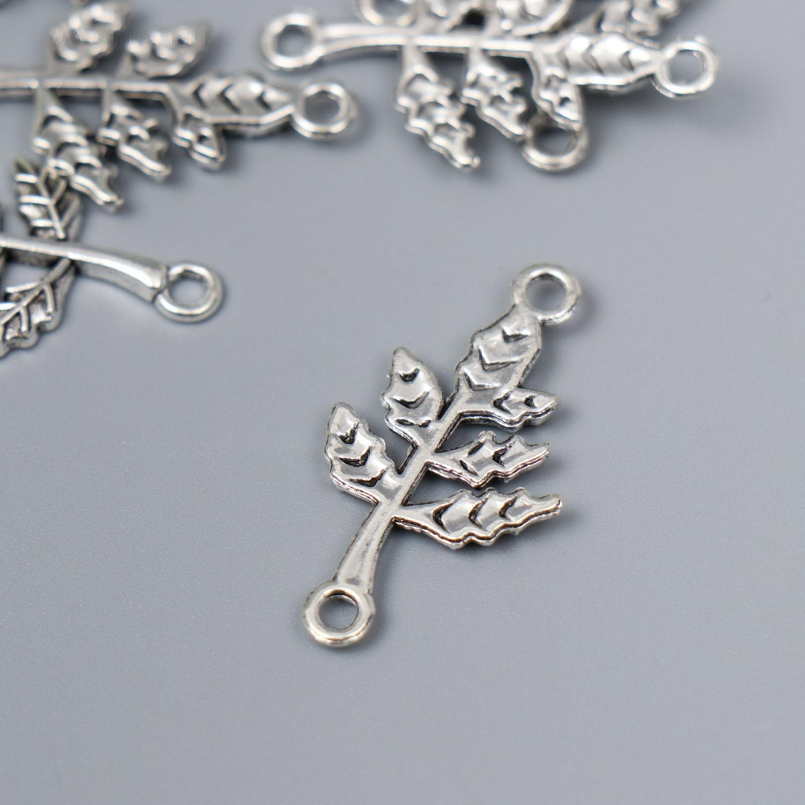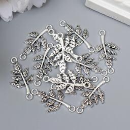 Коннектор для творчества металл 2 ушка "Ветка с листьями" серебро G170B678 3,2х1,7 см