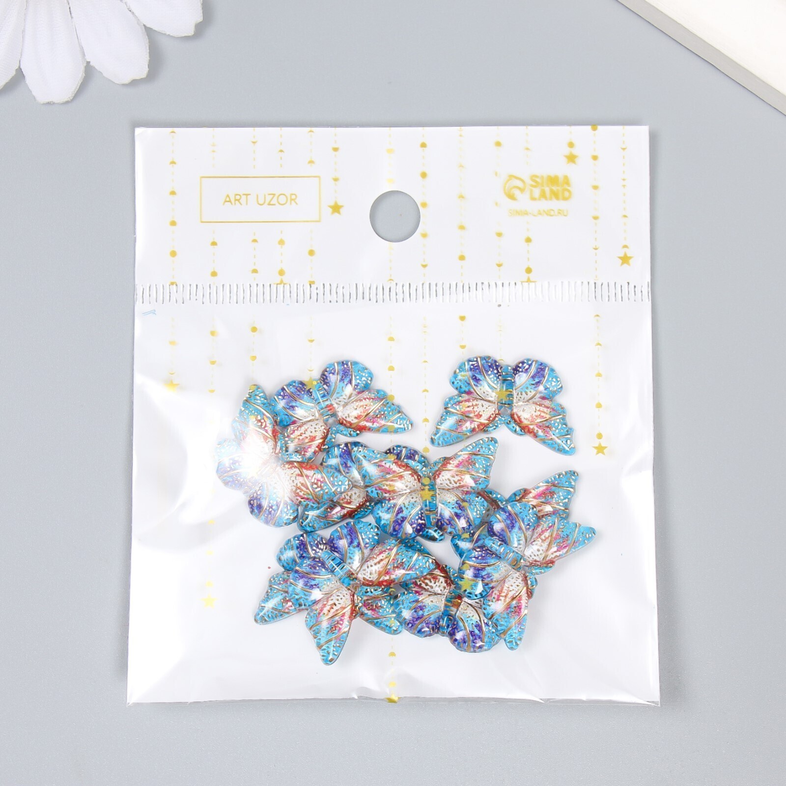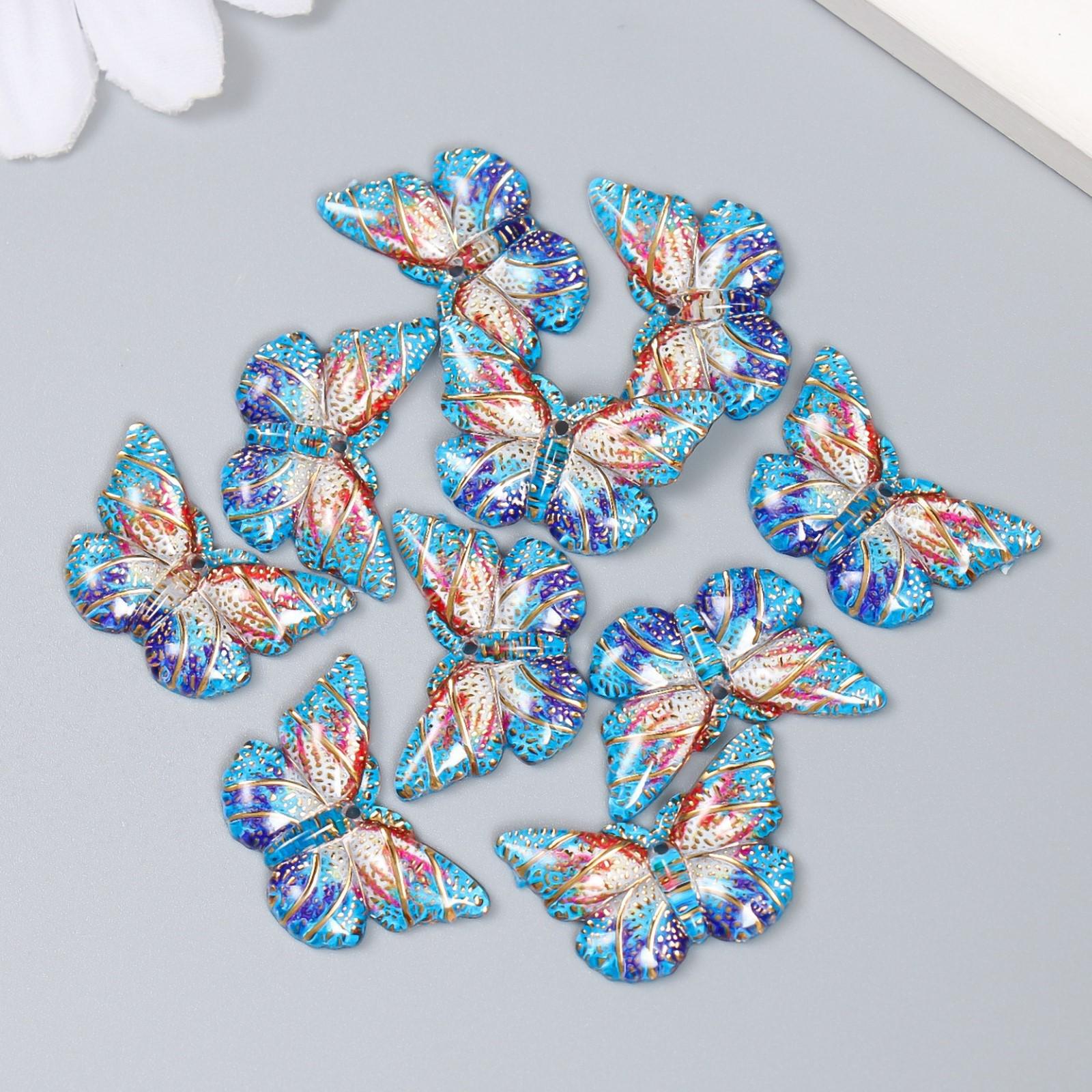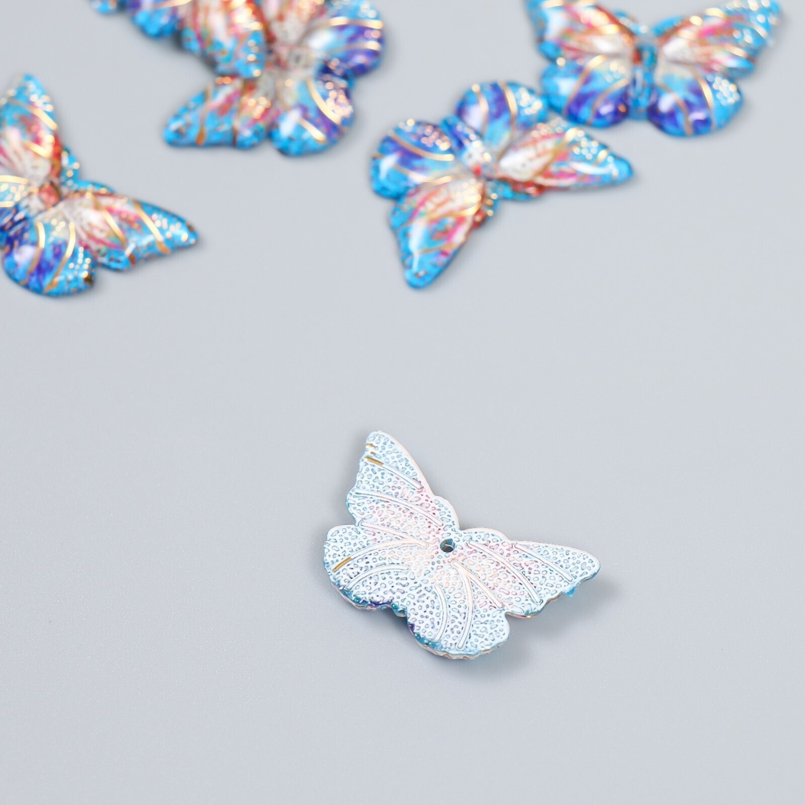 Декор для творчества пластик "Бабочка с золотыми точками" синий 1,5х2,3 см