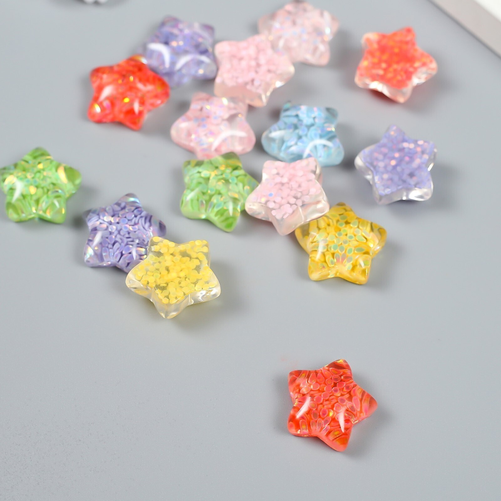 Декор для творчества пластик "Блестящая звёздочка" МИКС 0,8х1,7х1,7 см