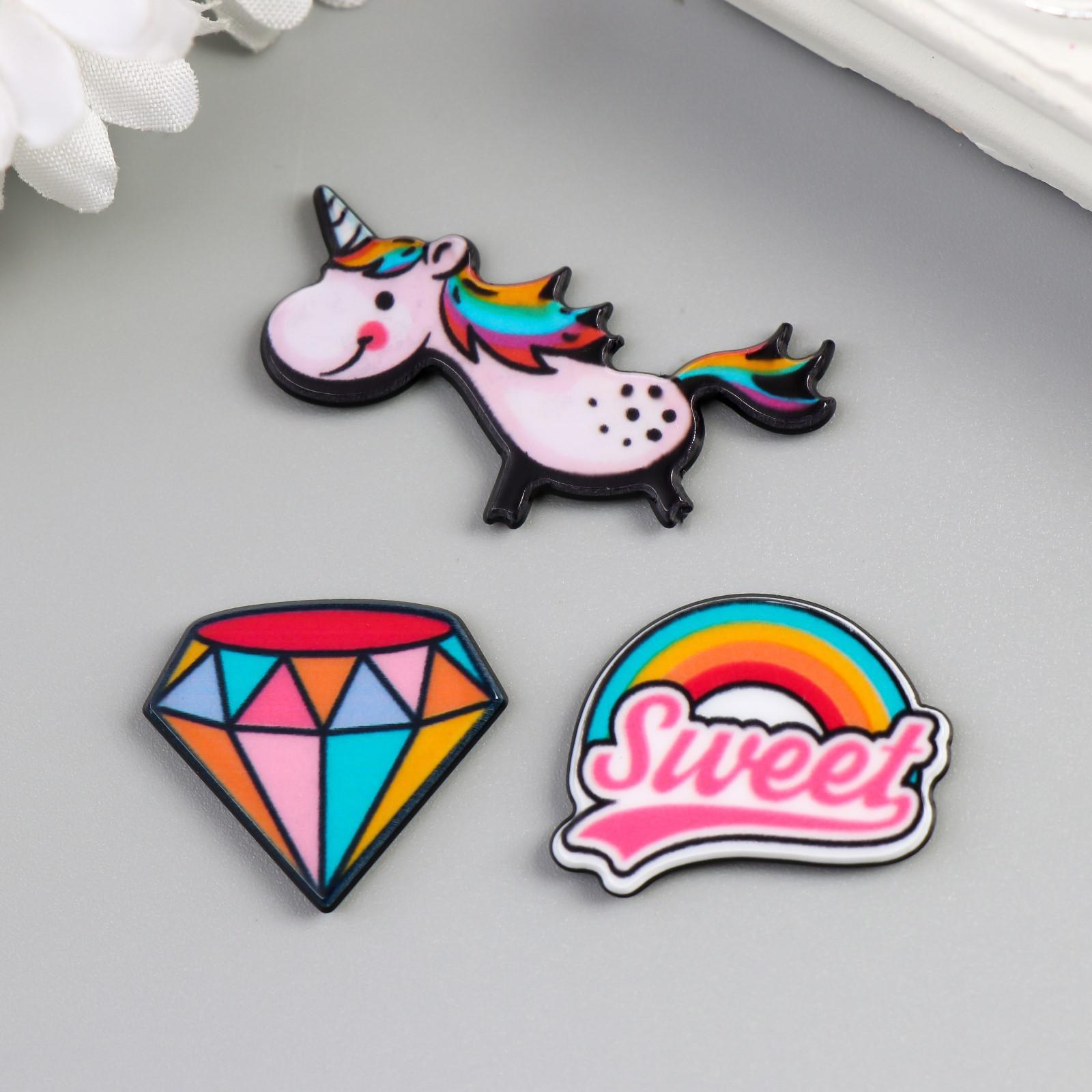Декор пластик "Счастье" набор 3 шт 4,2х1,7 см