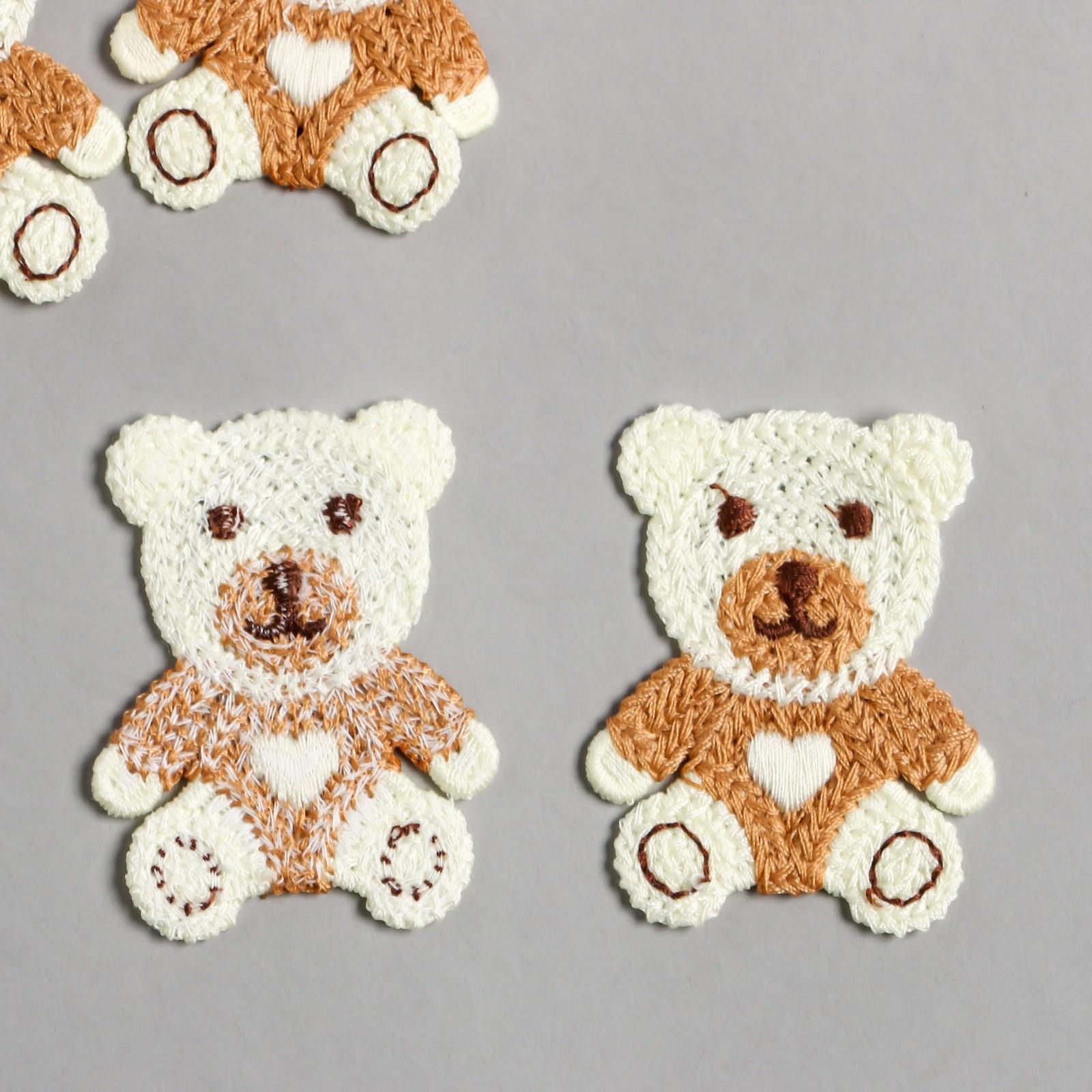 Декор для творчества текстиль вышивка "Медвежонок с сердечком" 5,8х4,6 см