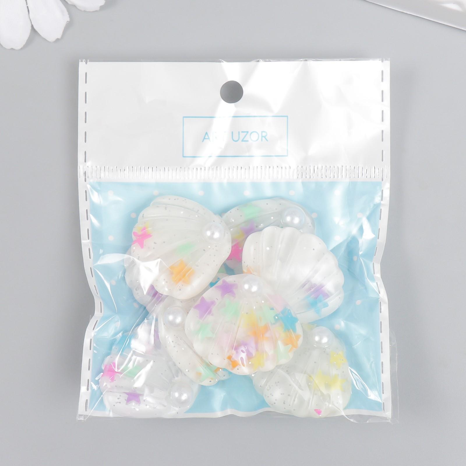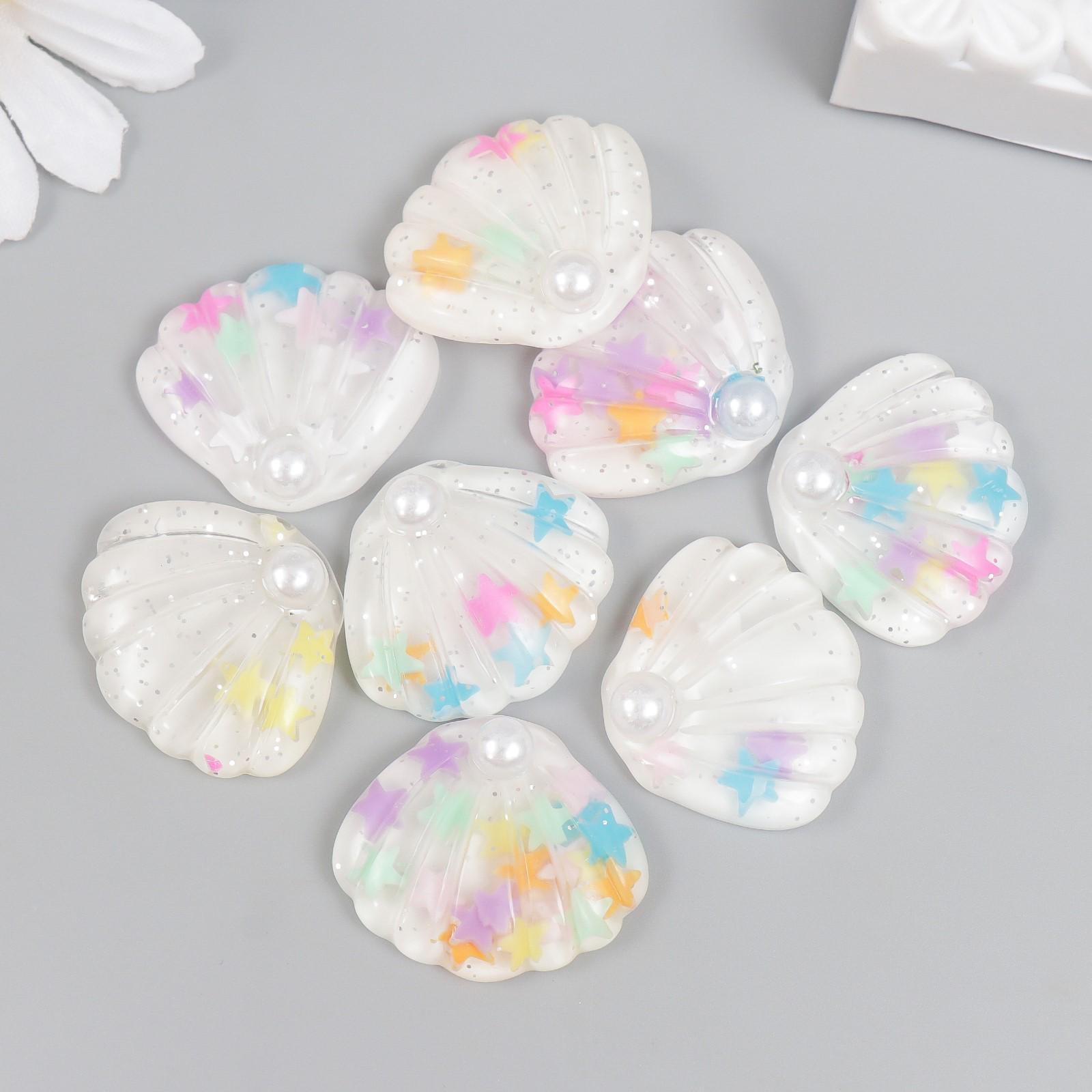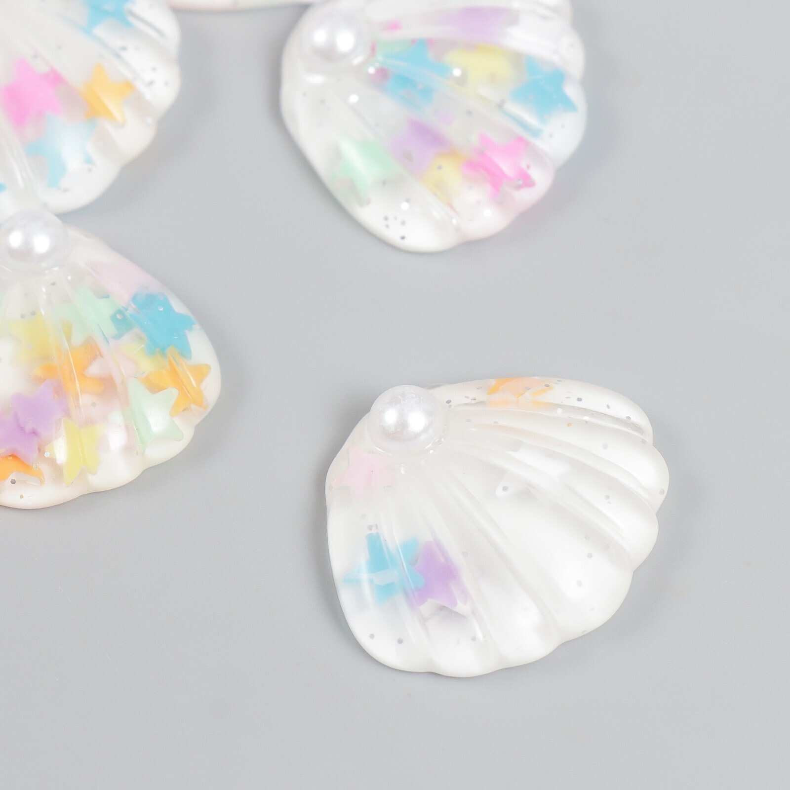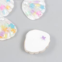 Декор для творчества пластик "Ракушка со звёздочками" белый 2,9х2,5 см