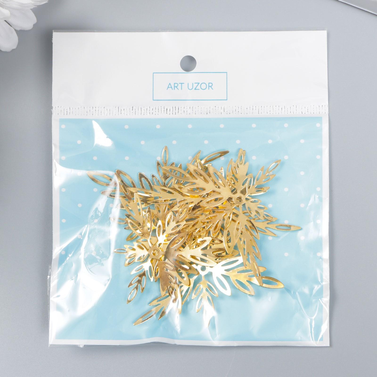 Декор металл для творчества "Листья-вспышка" золото WA-701 4х5 см