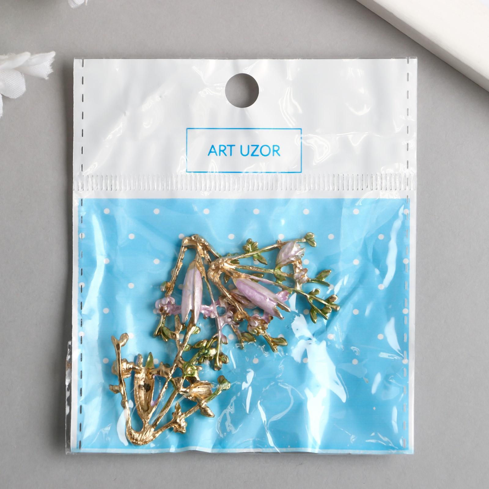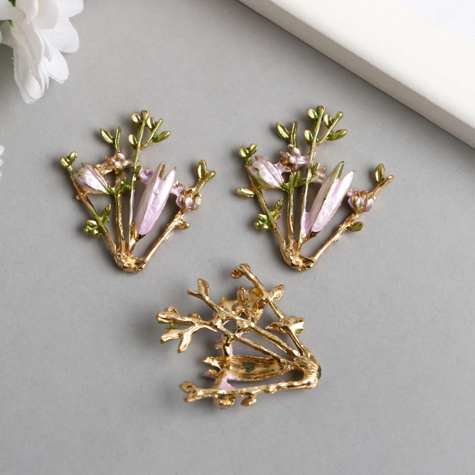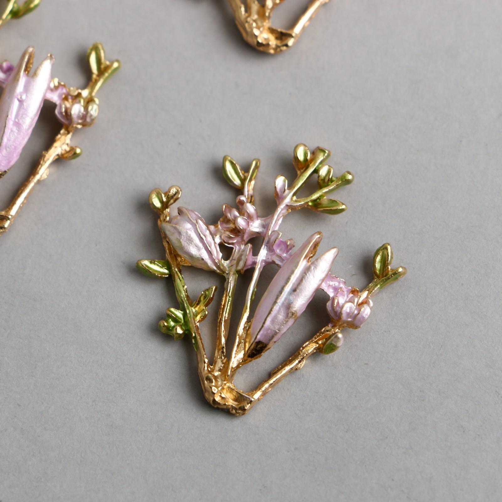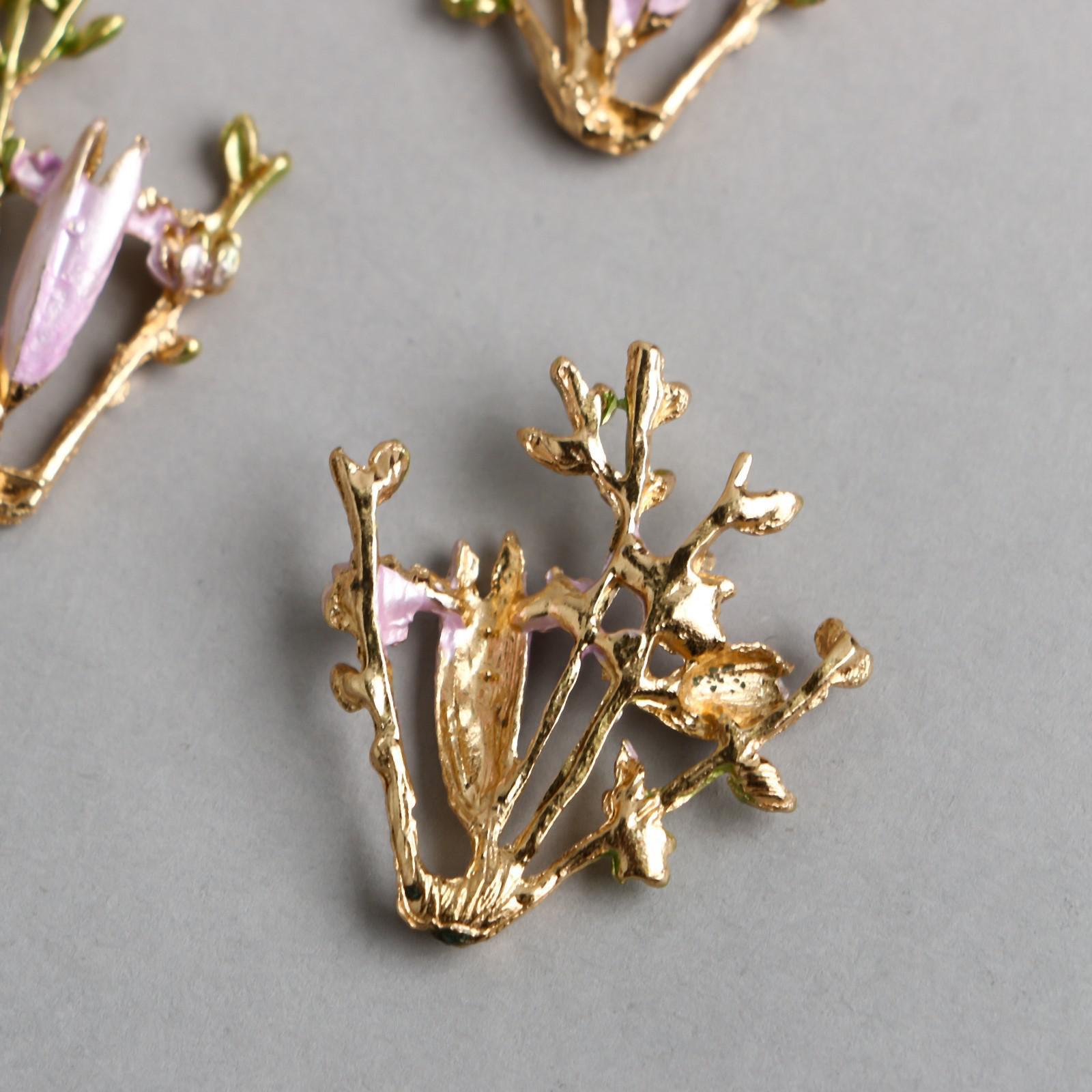 Декор для творчества металл "Веточка с молодыми побегами" эмаль 3,5х2,8х0,6 см