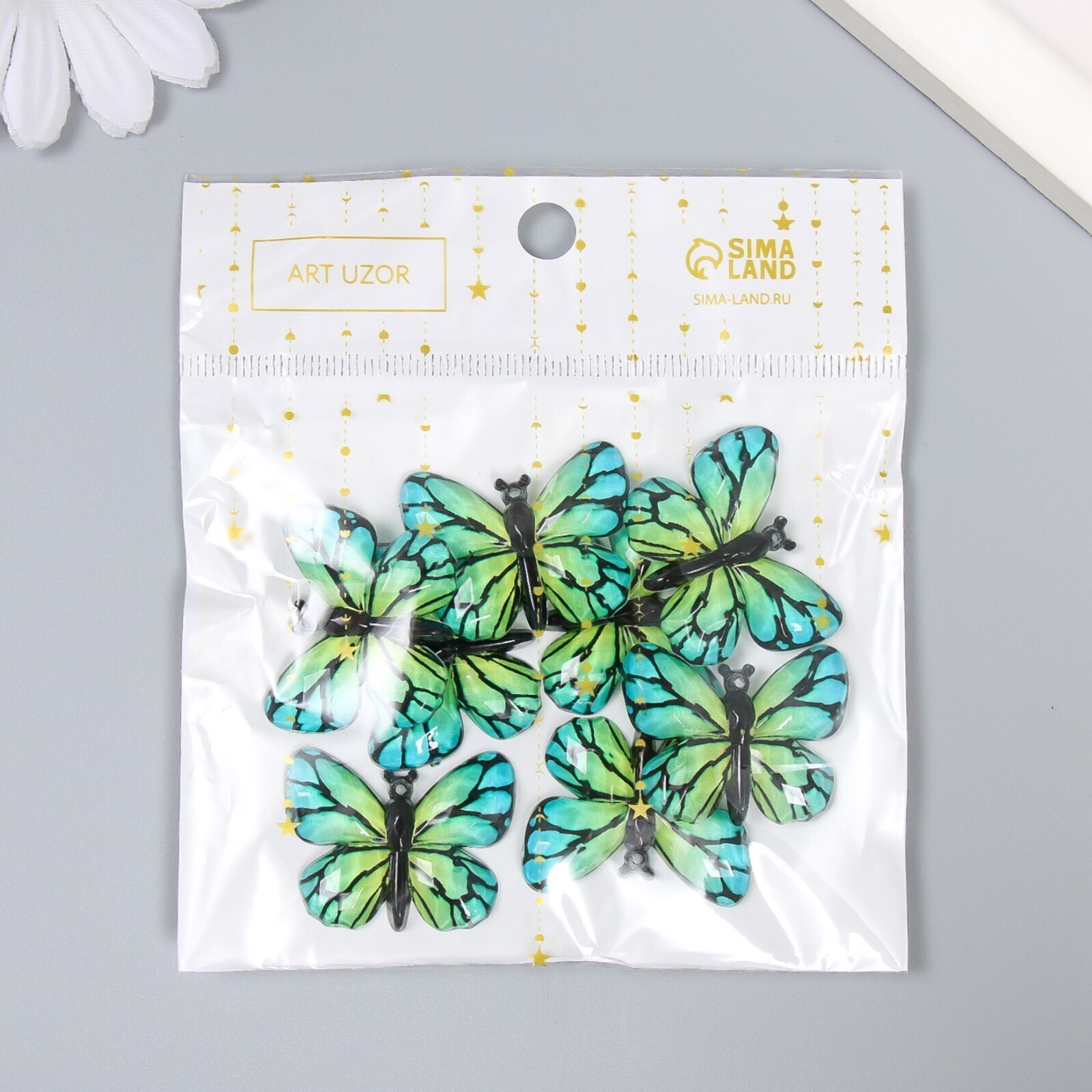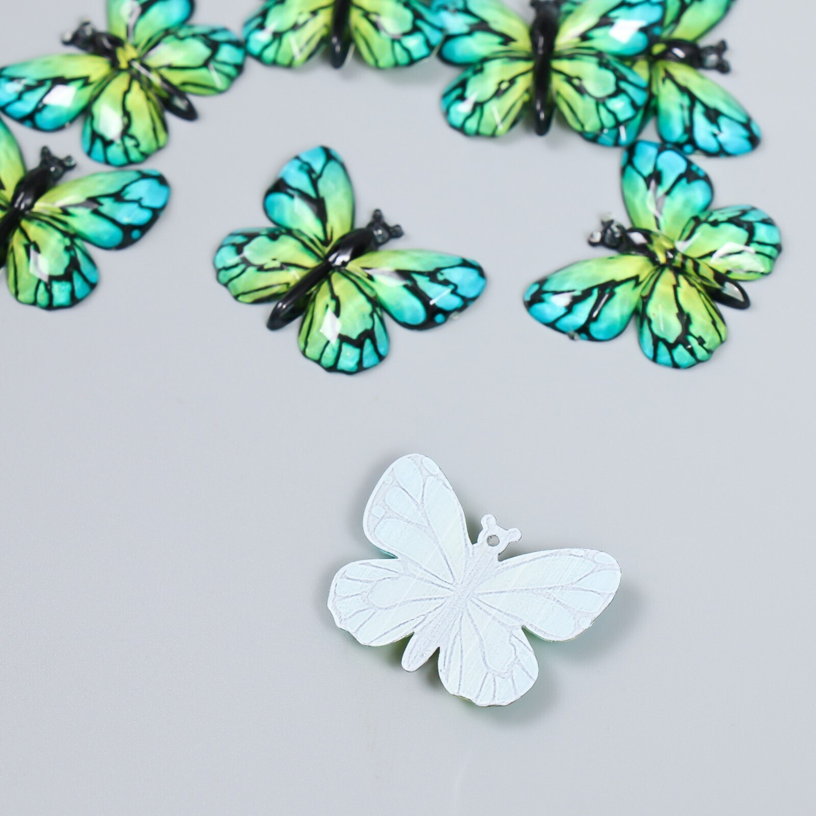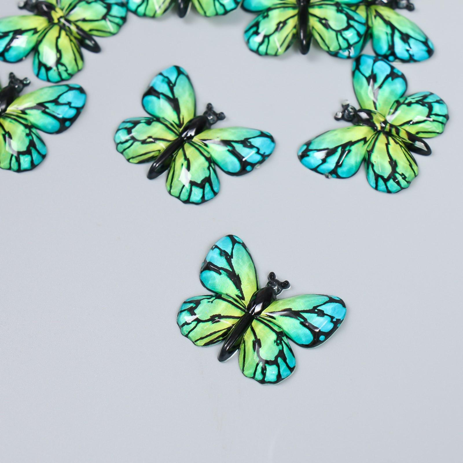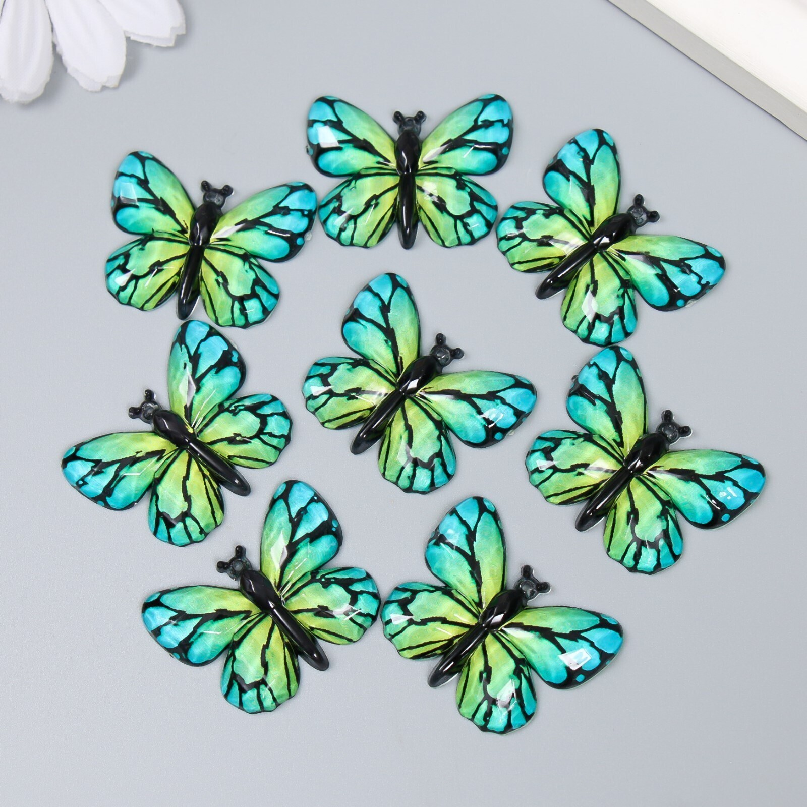 Декор для творчества пластик "Бабочка, зелёно-голубые крылья" 2,5х3,2 см