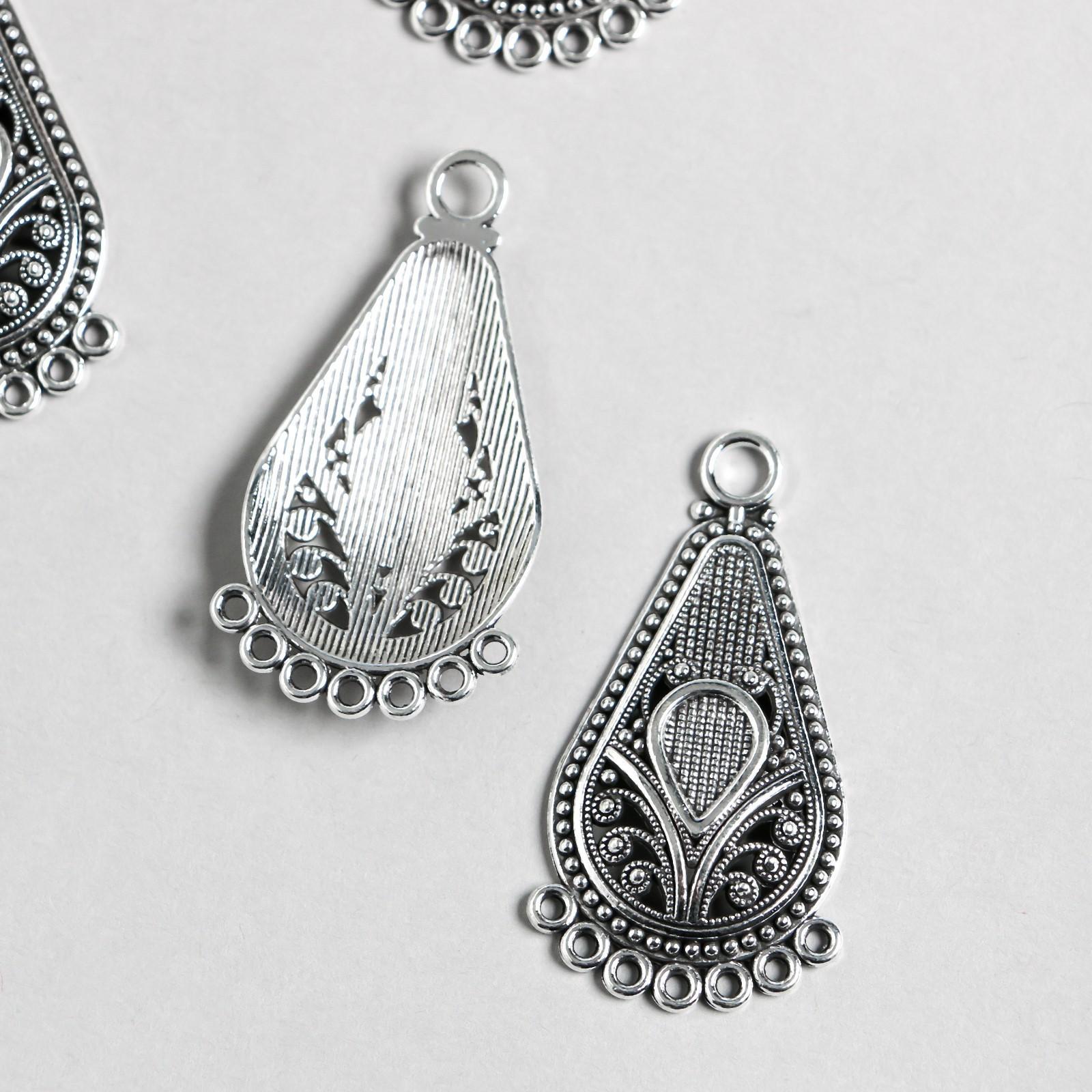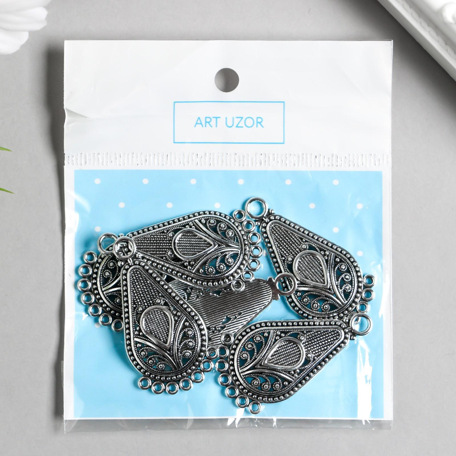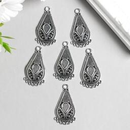 Коннектор металл для творчества 8 ушек "Цветок в капле" серебро 3,8х1,95 см