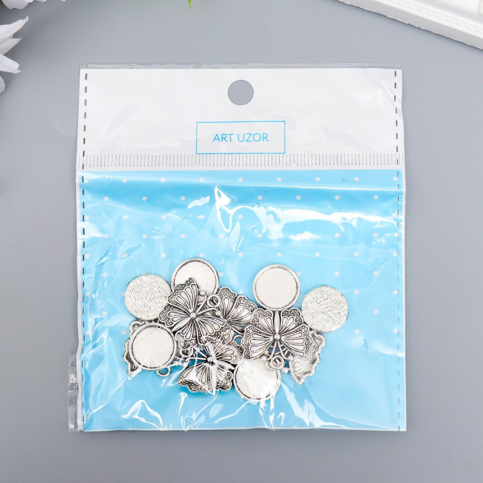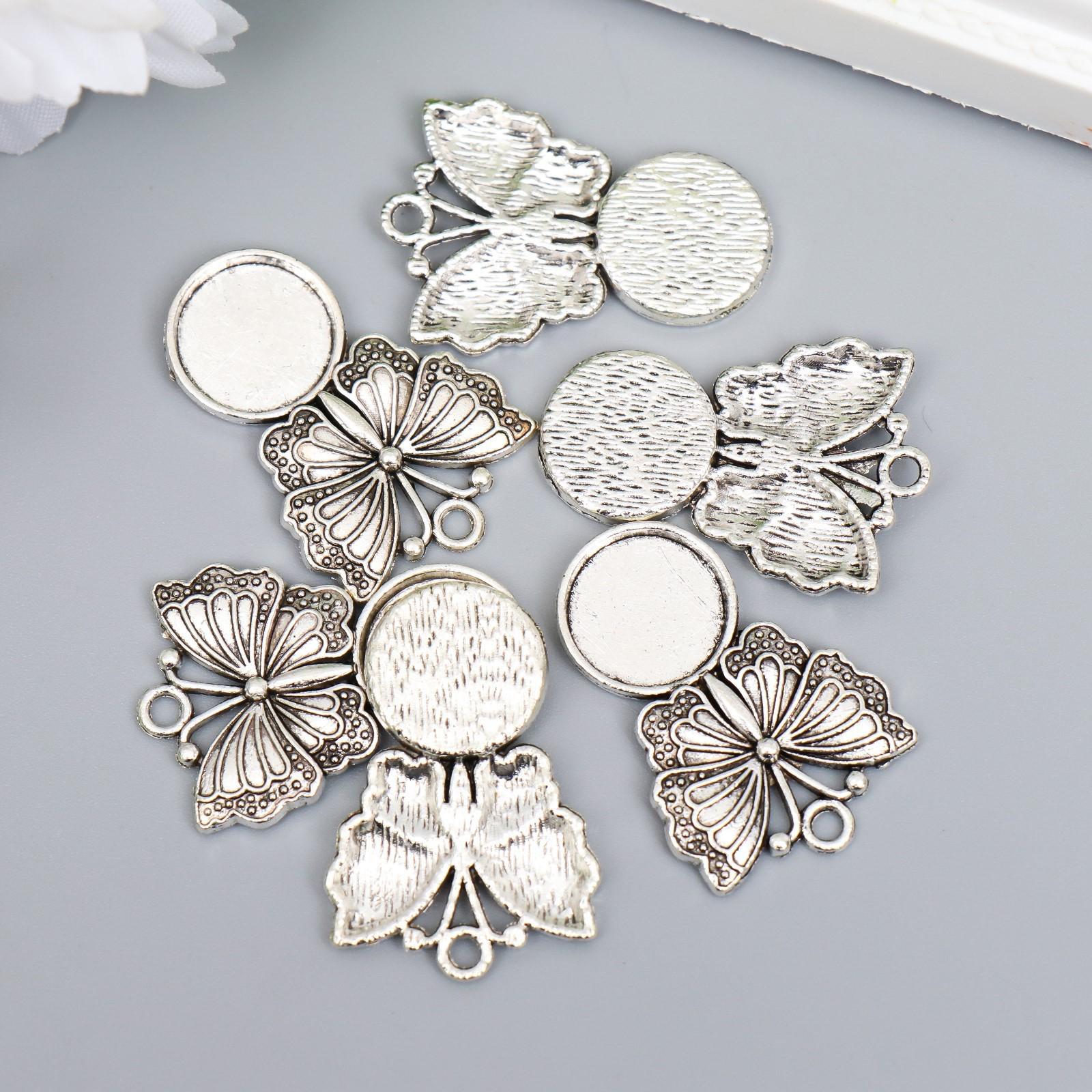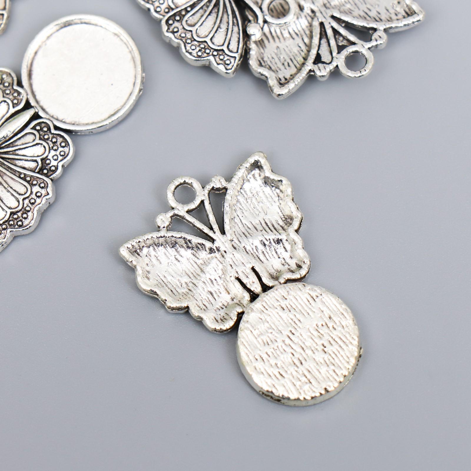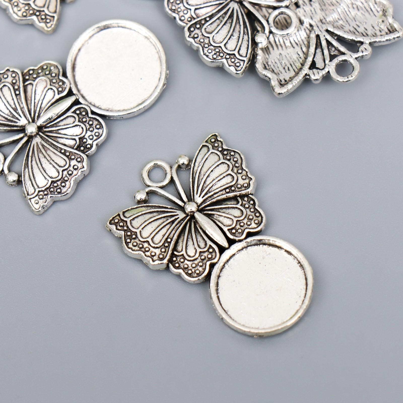 Сеттинг (основа под кабошон) металл "Медальон - Бабочка" серебро 6514 3х2 см