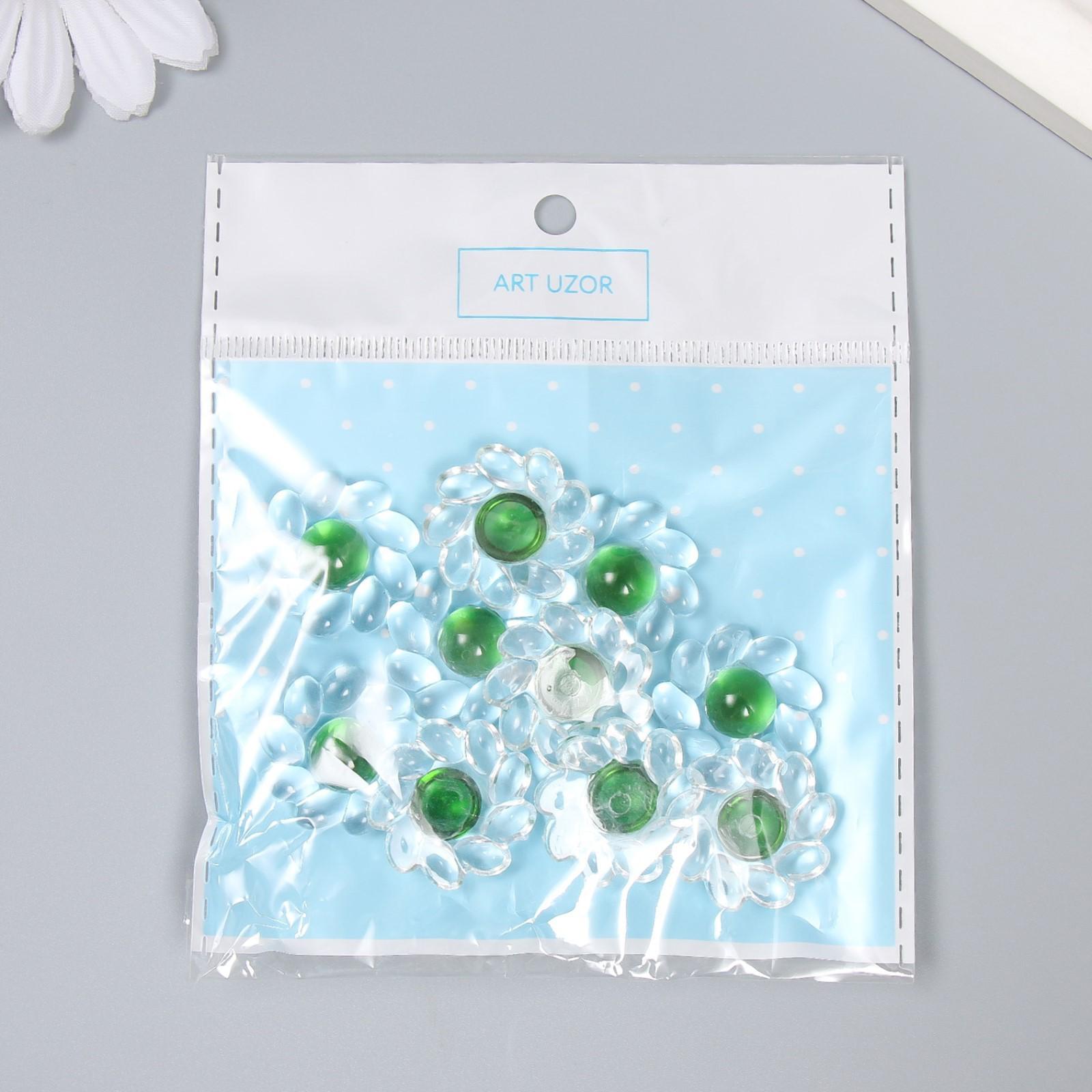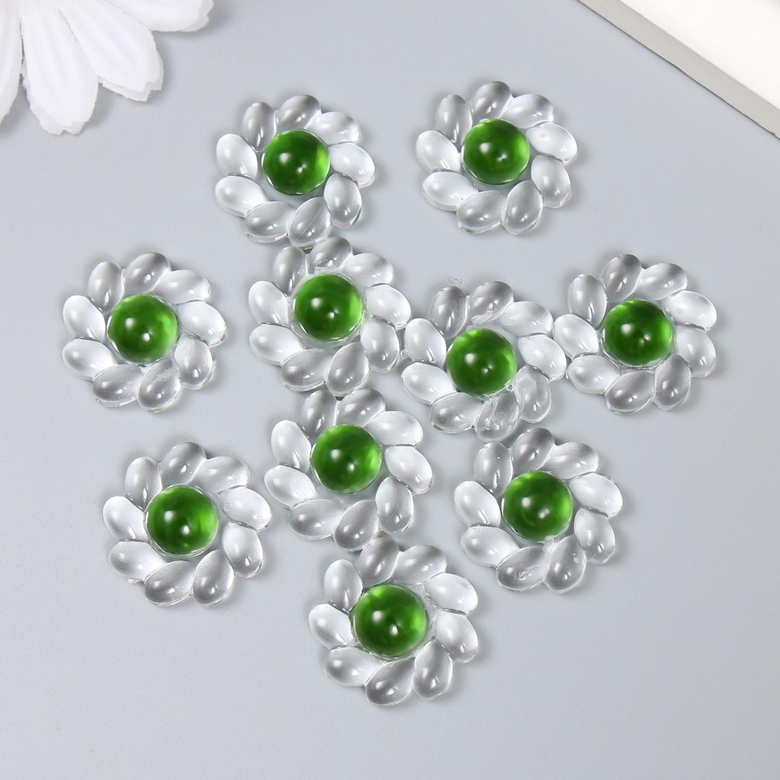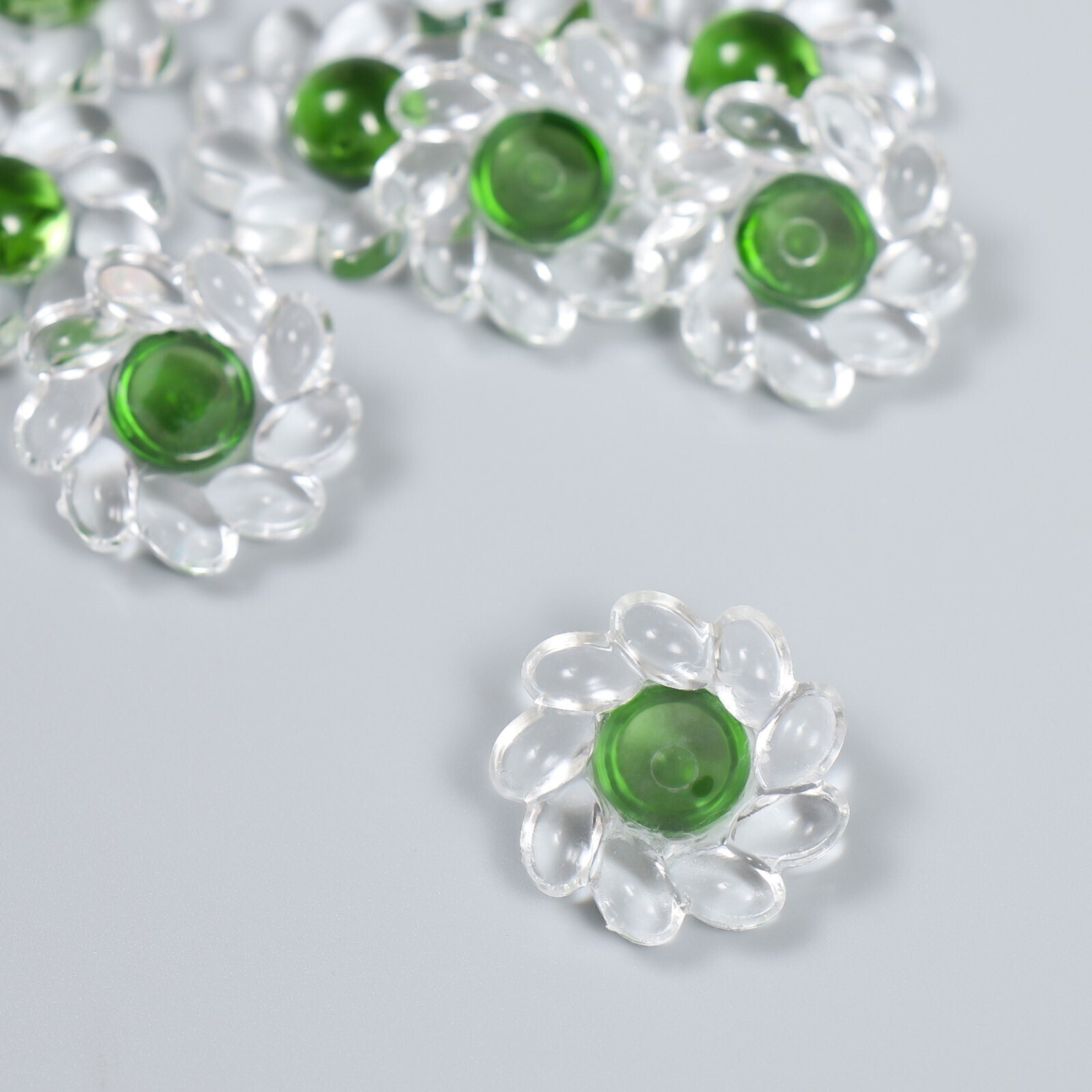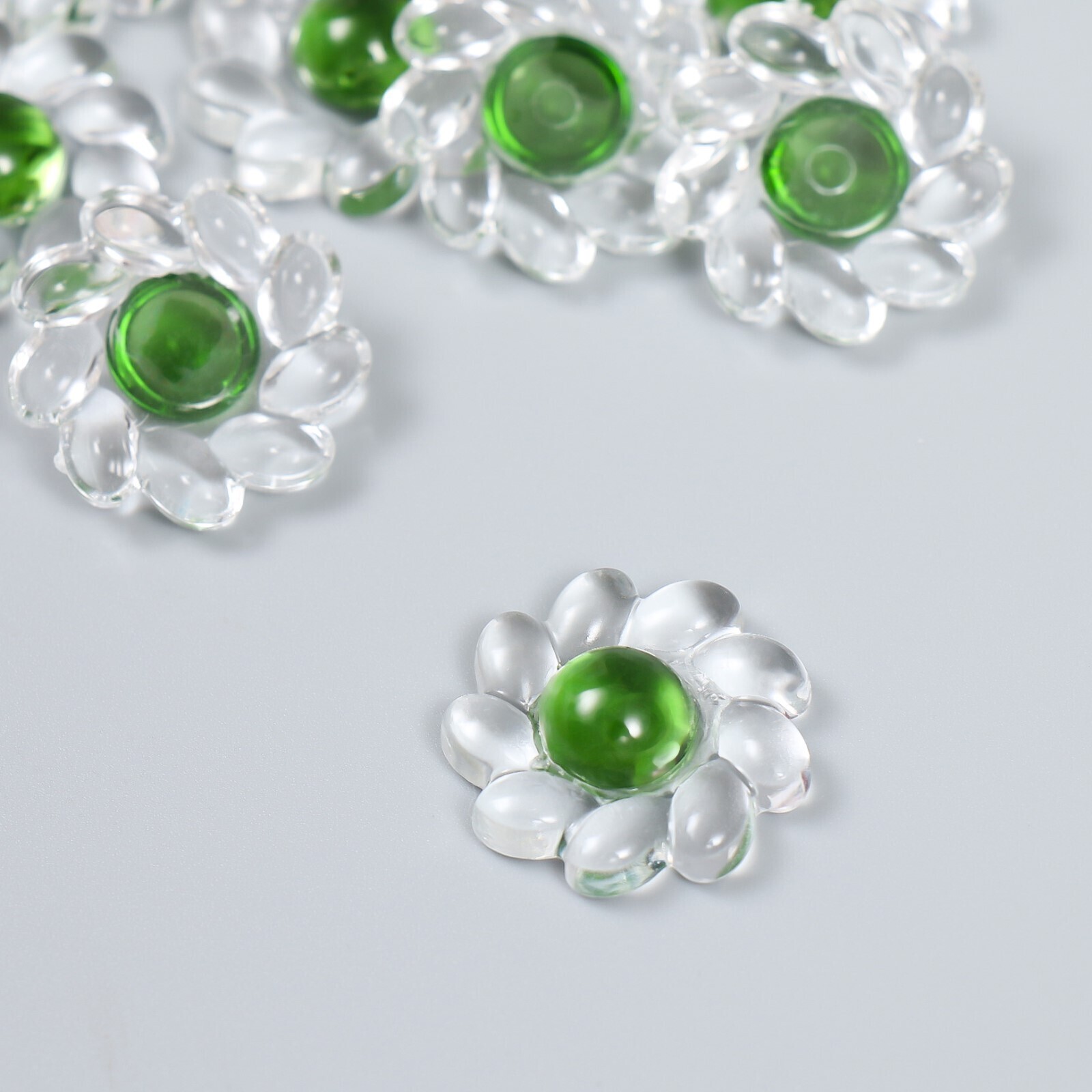 Декор для творчества пластик "Цветок с цветной серединкой" прозрачно-зелёный 0,8х2,4х2,4 см 912946