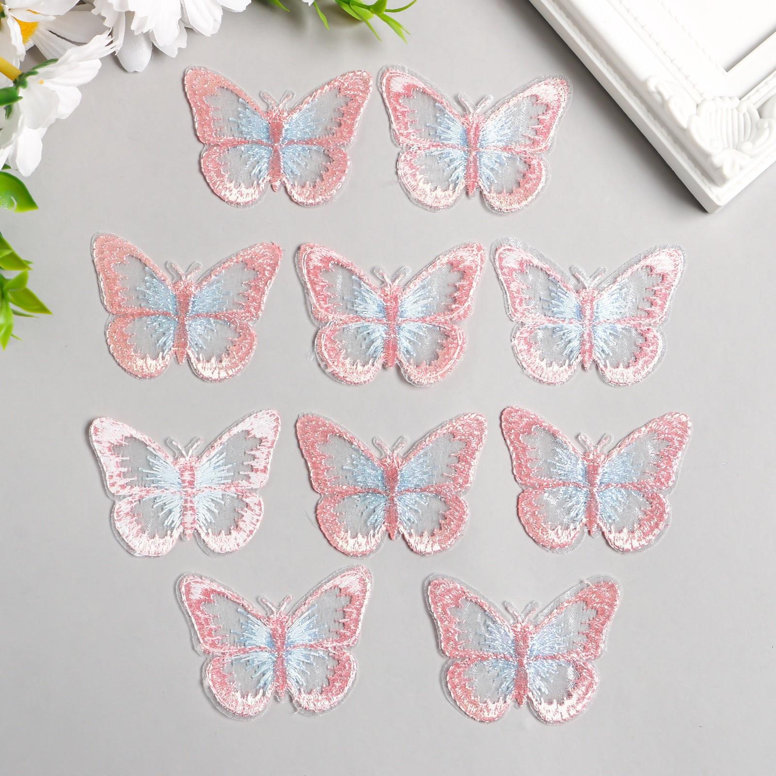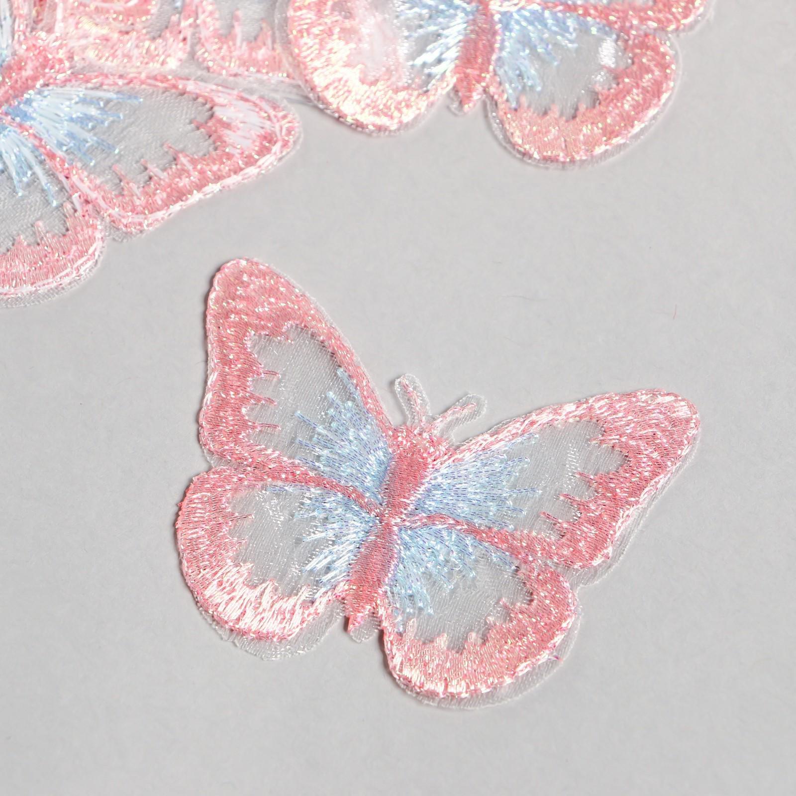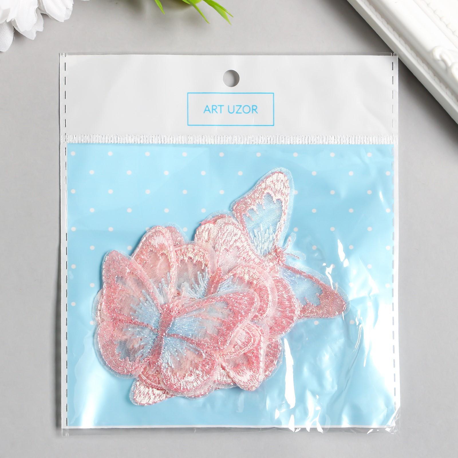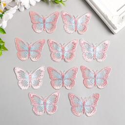 Декор для творчества текстиль вышивка "Бабочка розово-голубая" 4,3х5,5 см