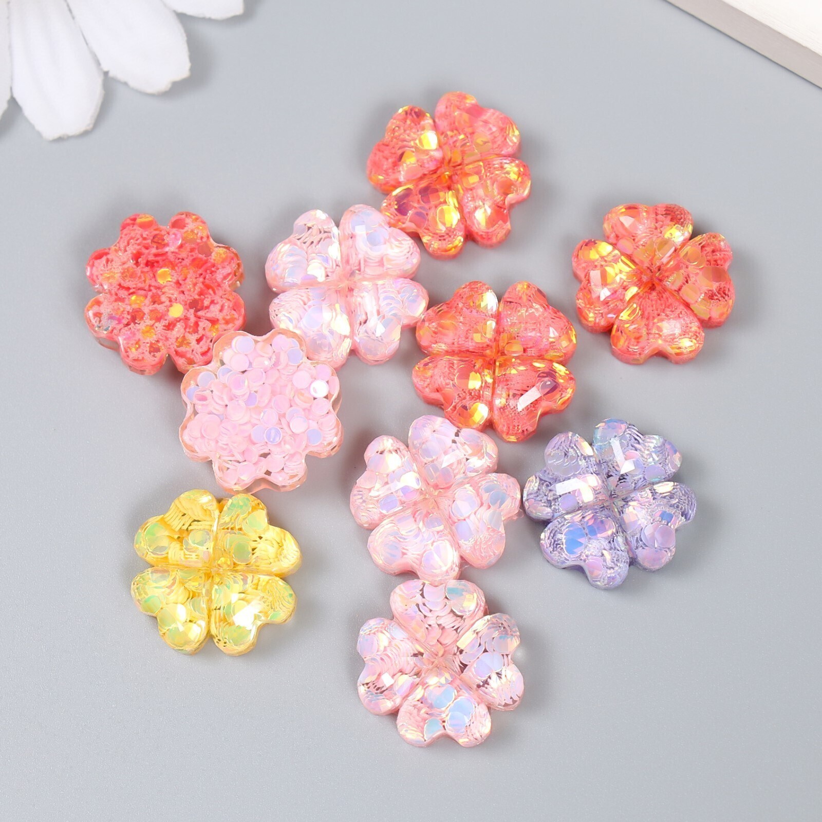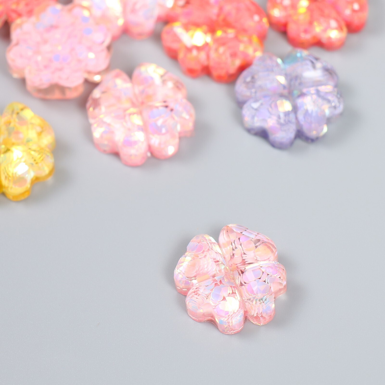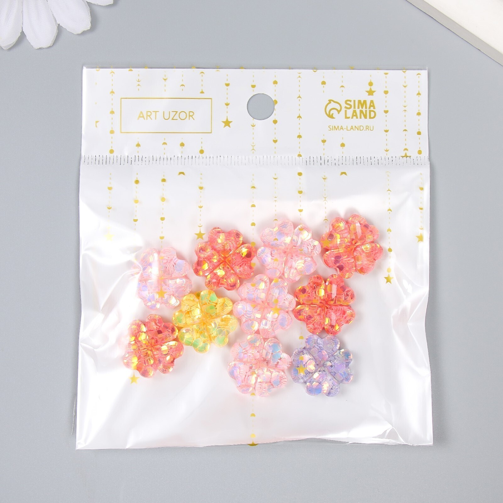 Декор для творчества пластик "Цветочек из сердец" МИКС d=1,8 см
