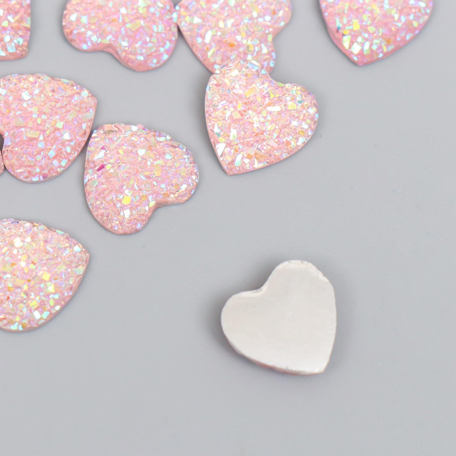 Кабошон "Сердце", цвет розовый 12 мм