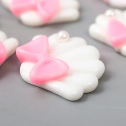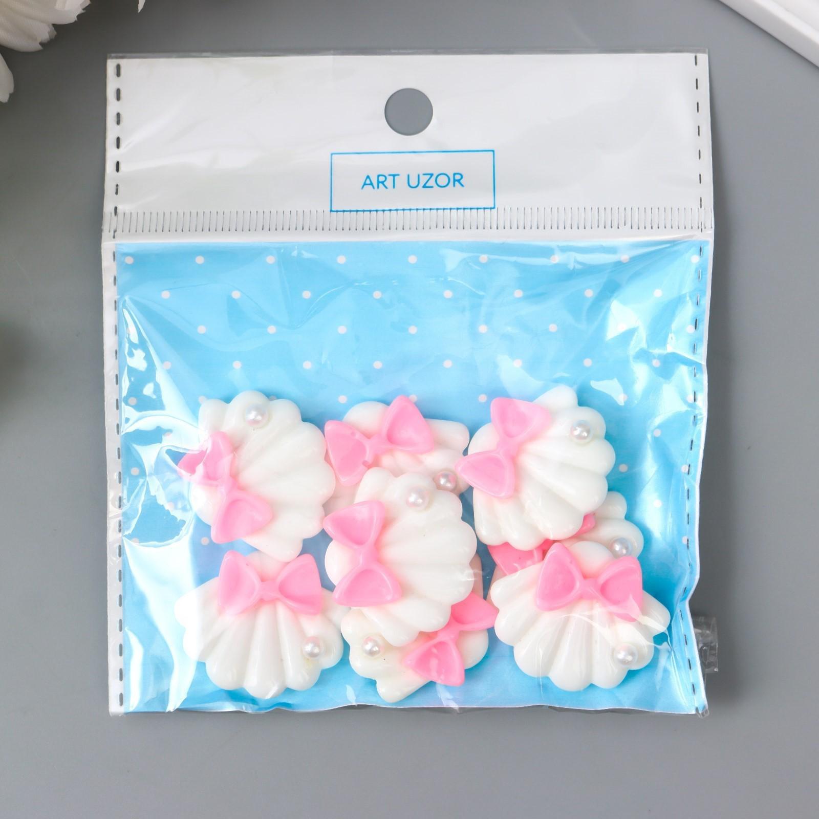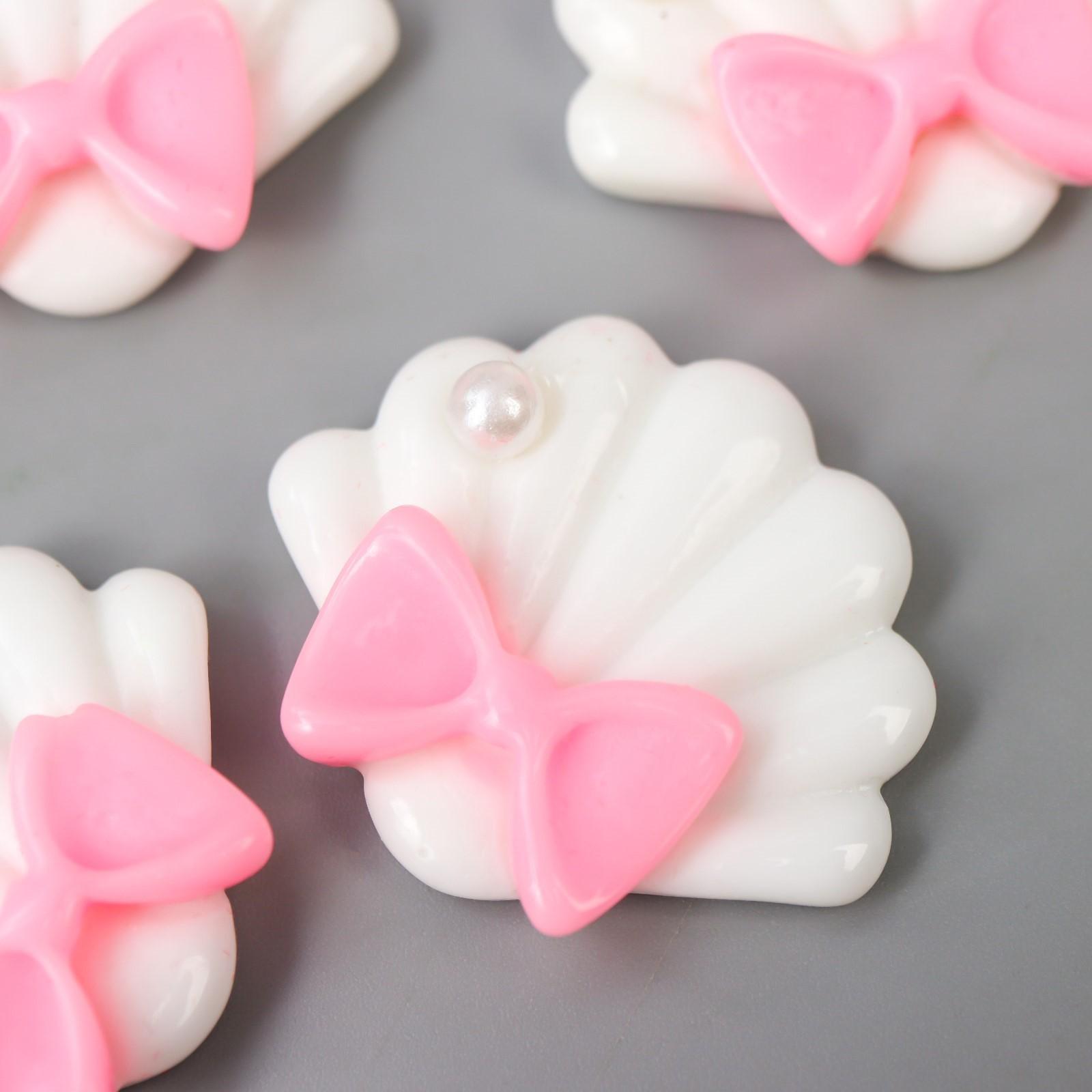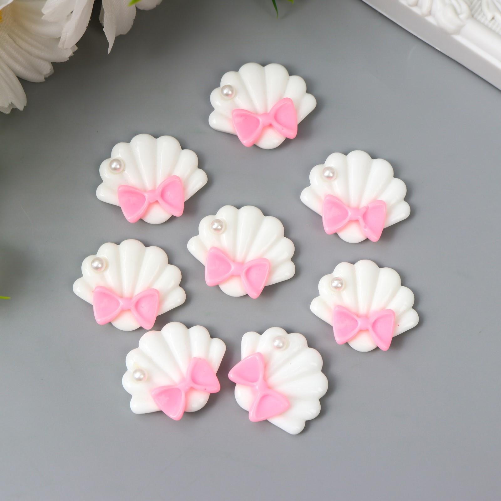 Декор для творчества пластик "Ракушка с бантиком и жемчужиной" белый 2,4х3 см