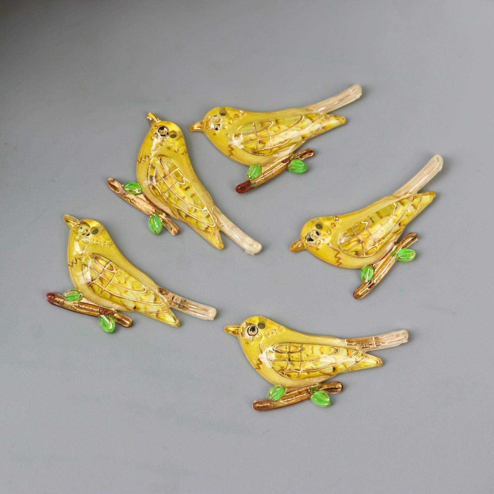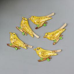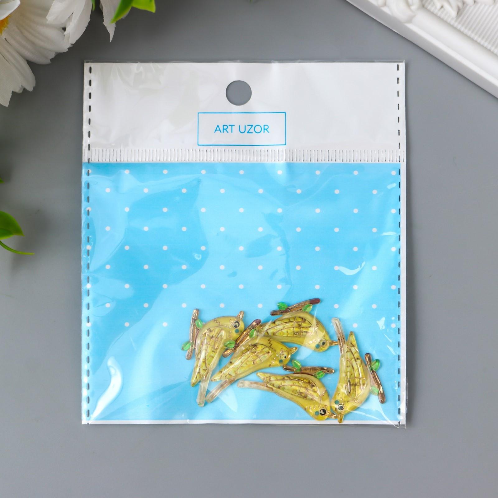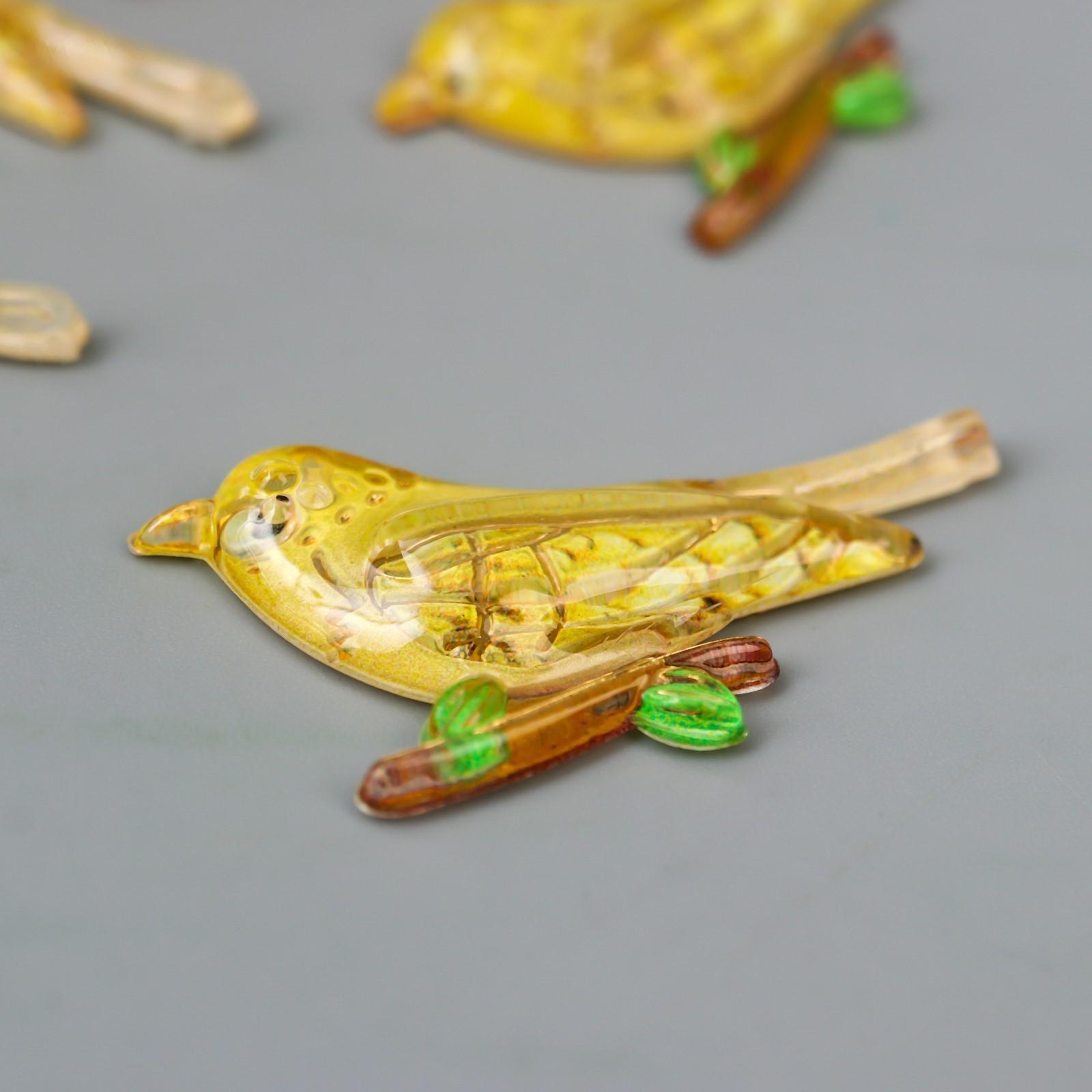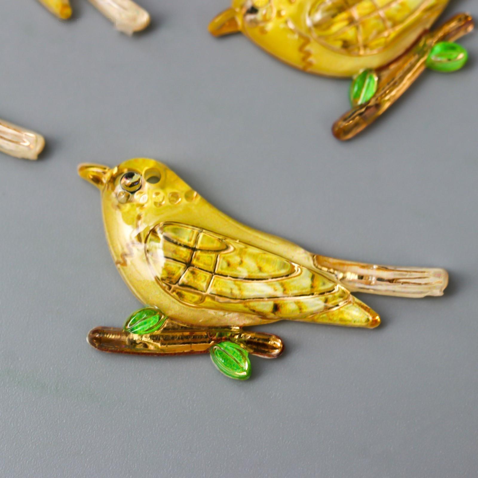 Декор для творчества пластик "Птица на ветке жёлтая" с золотом 1,6х3,1 см