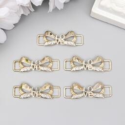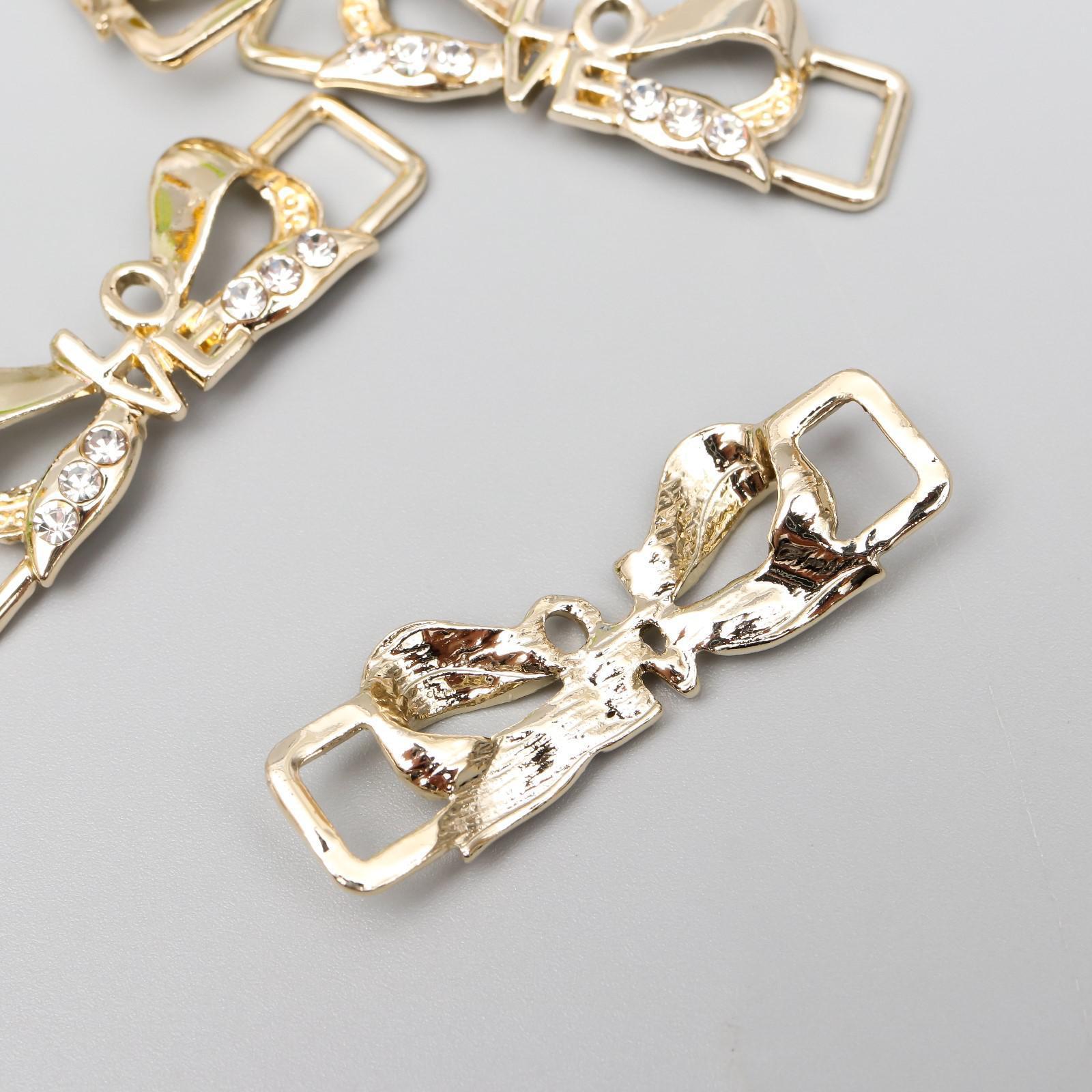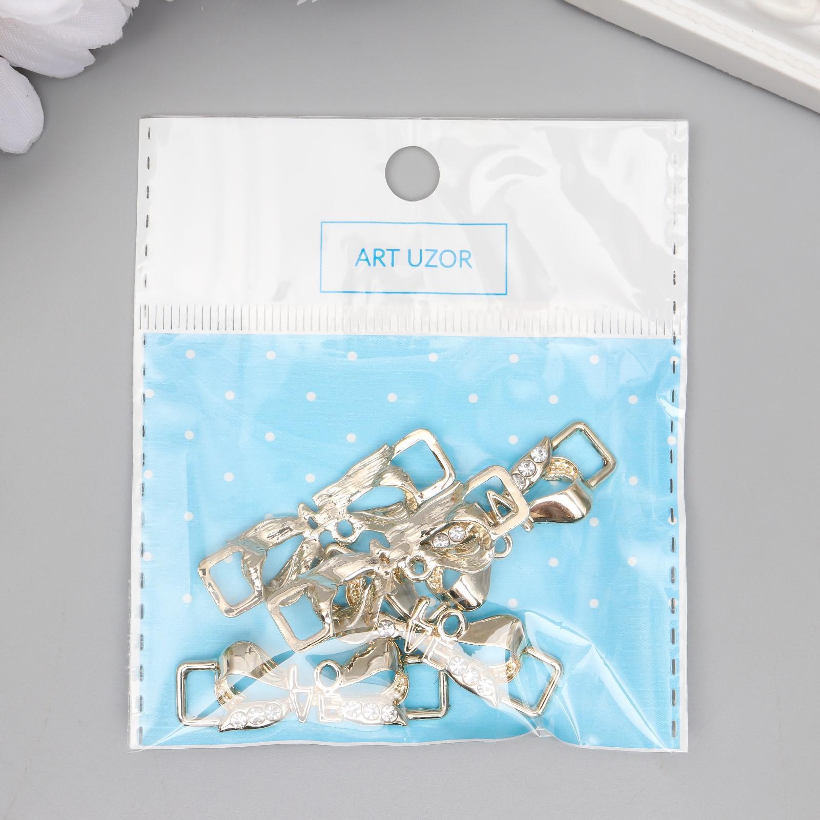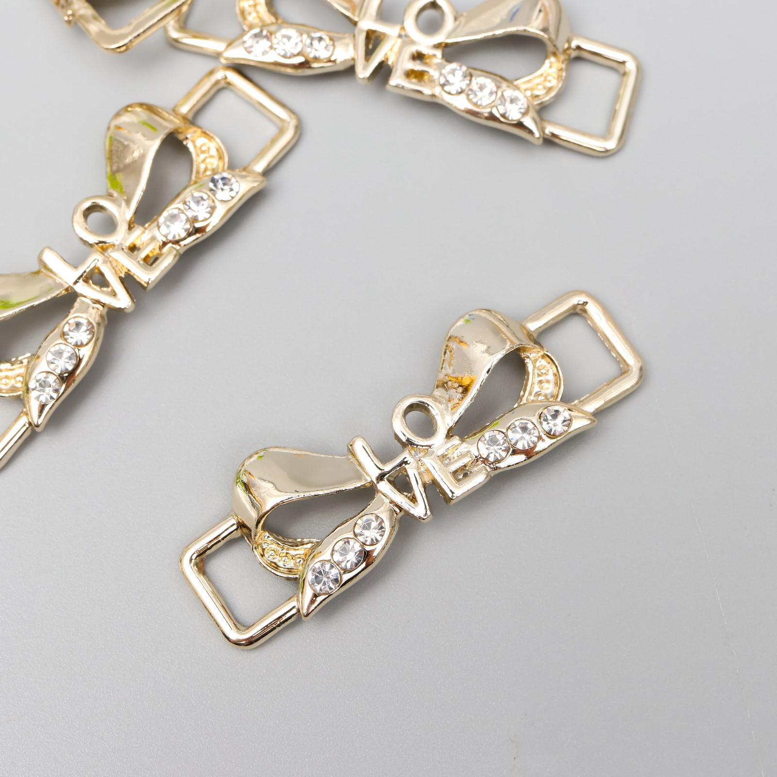 Декор для творчества металл пряжка "Бант - love" золото, стразы 1,3х3,8 см
