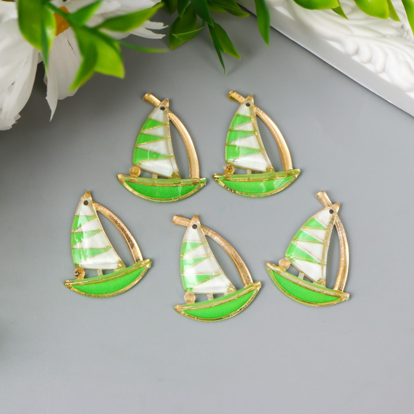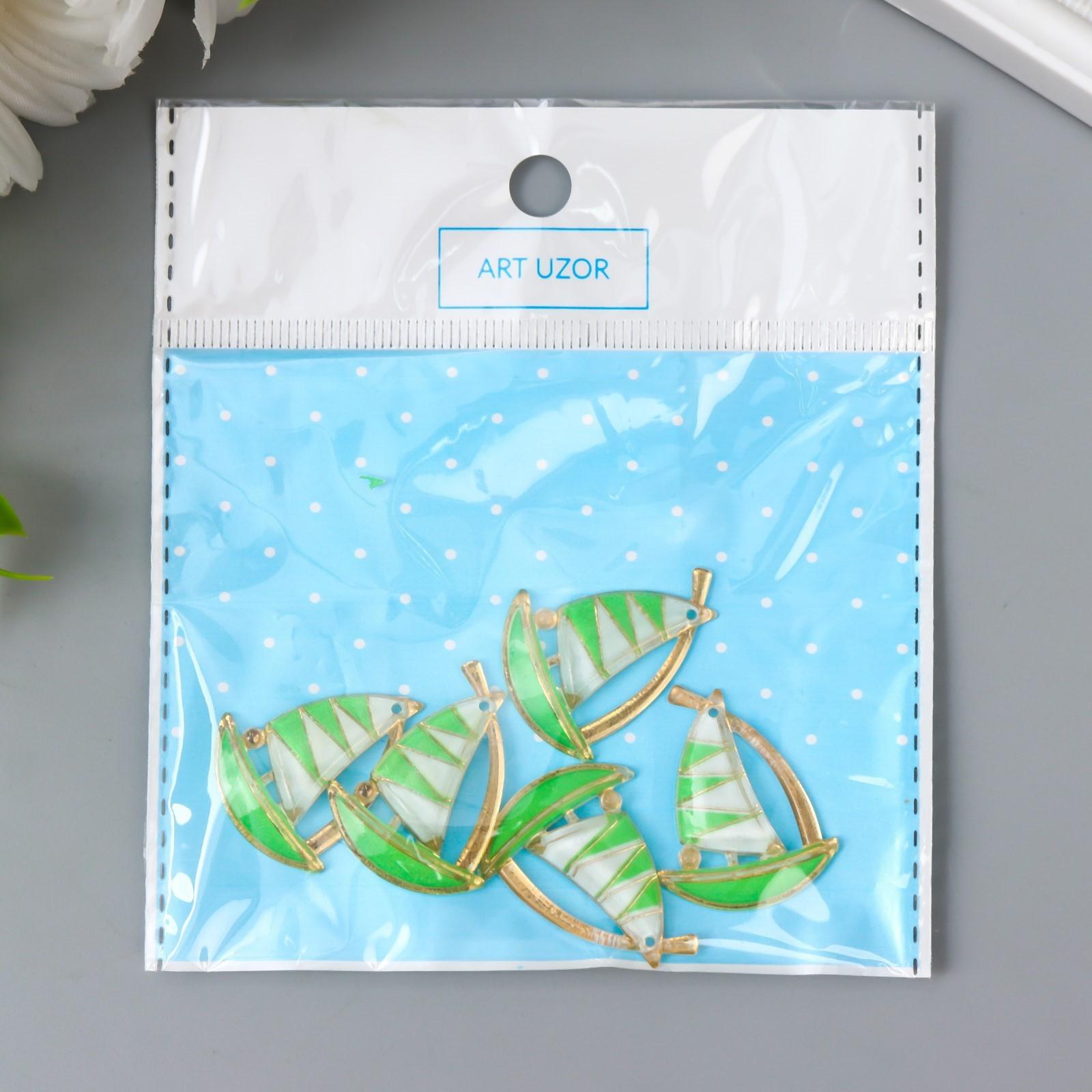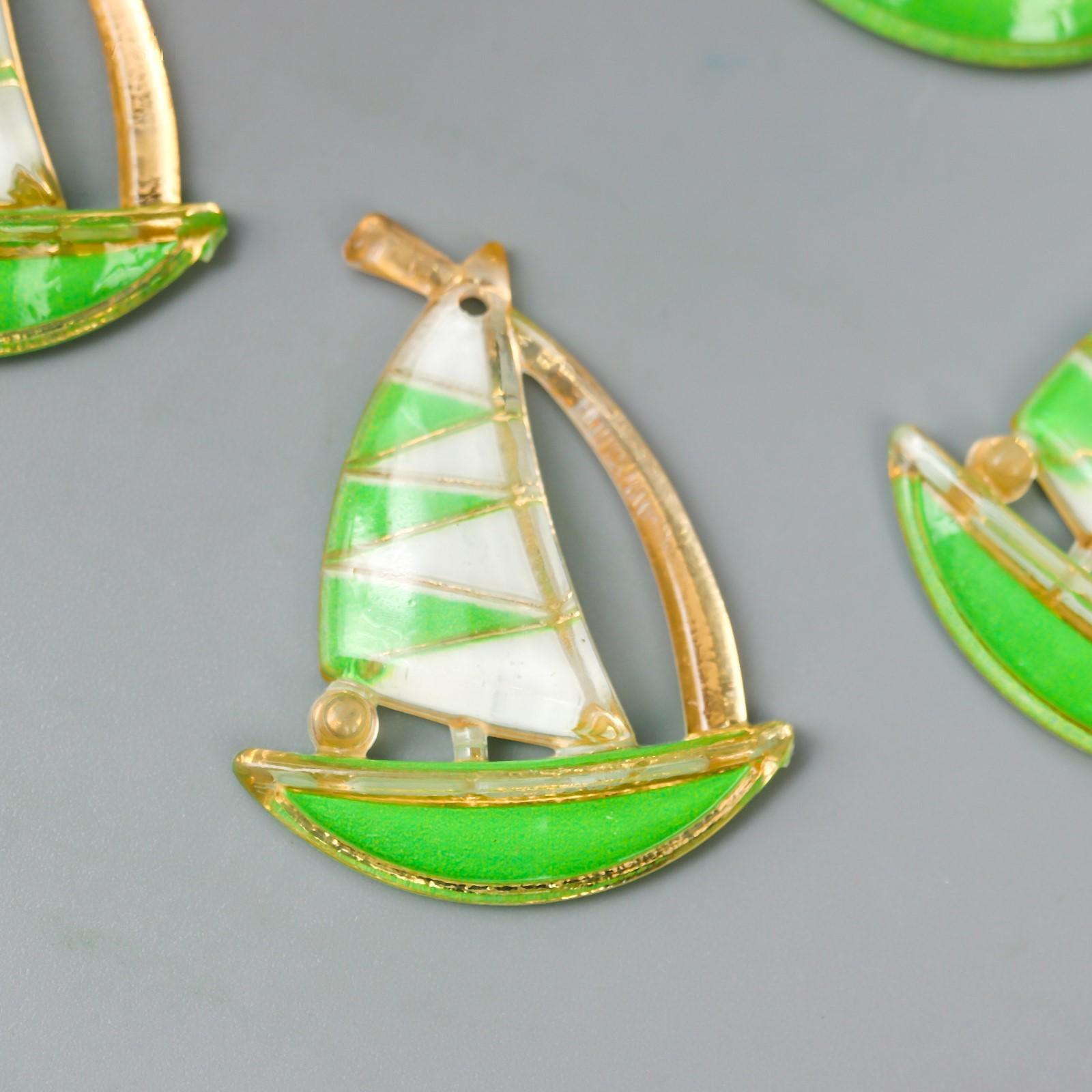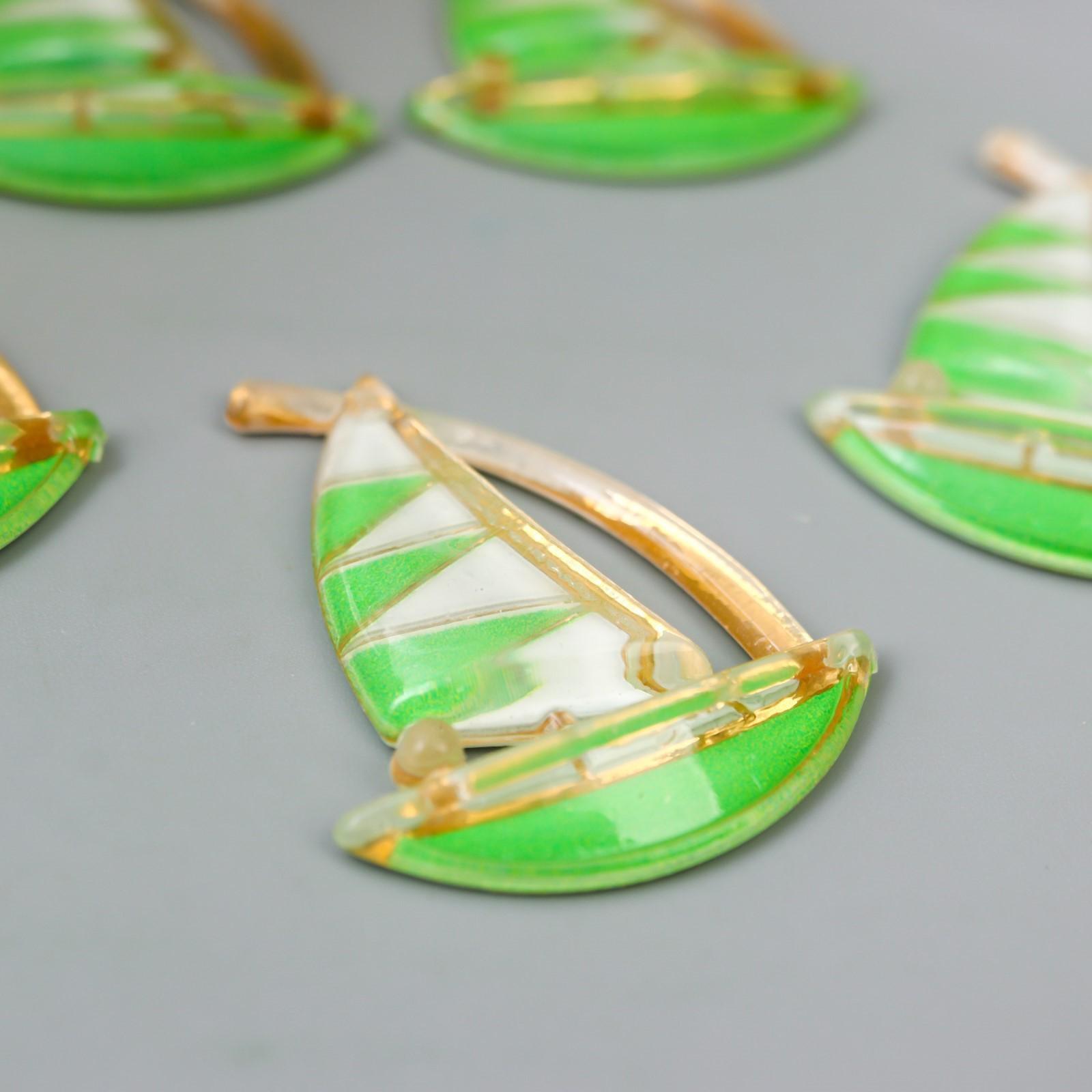 Декор для творчества пластик "Парусник зелёный" с золотом 2,9х2,3 см