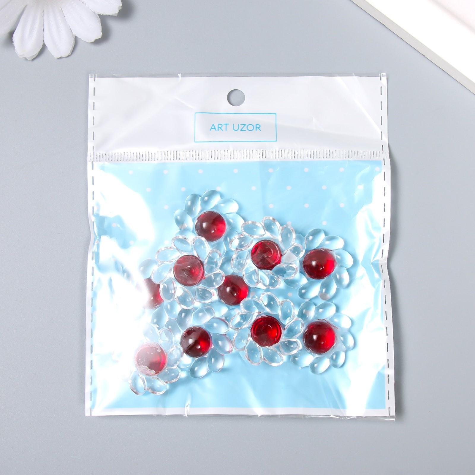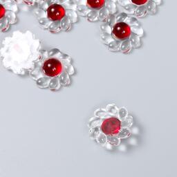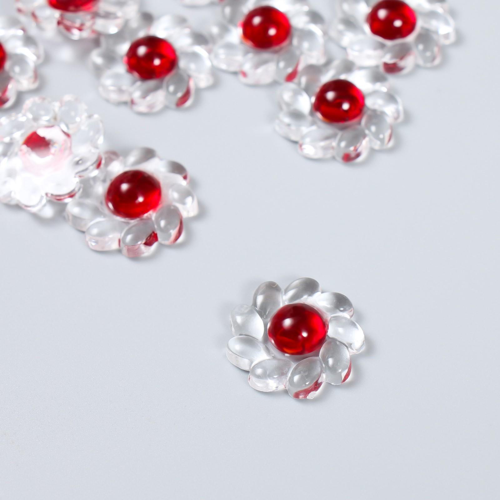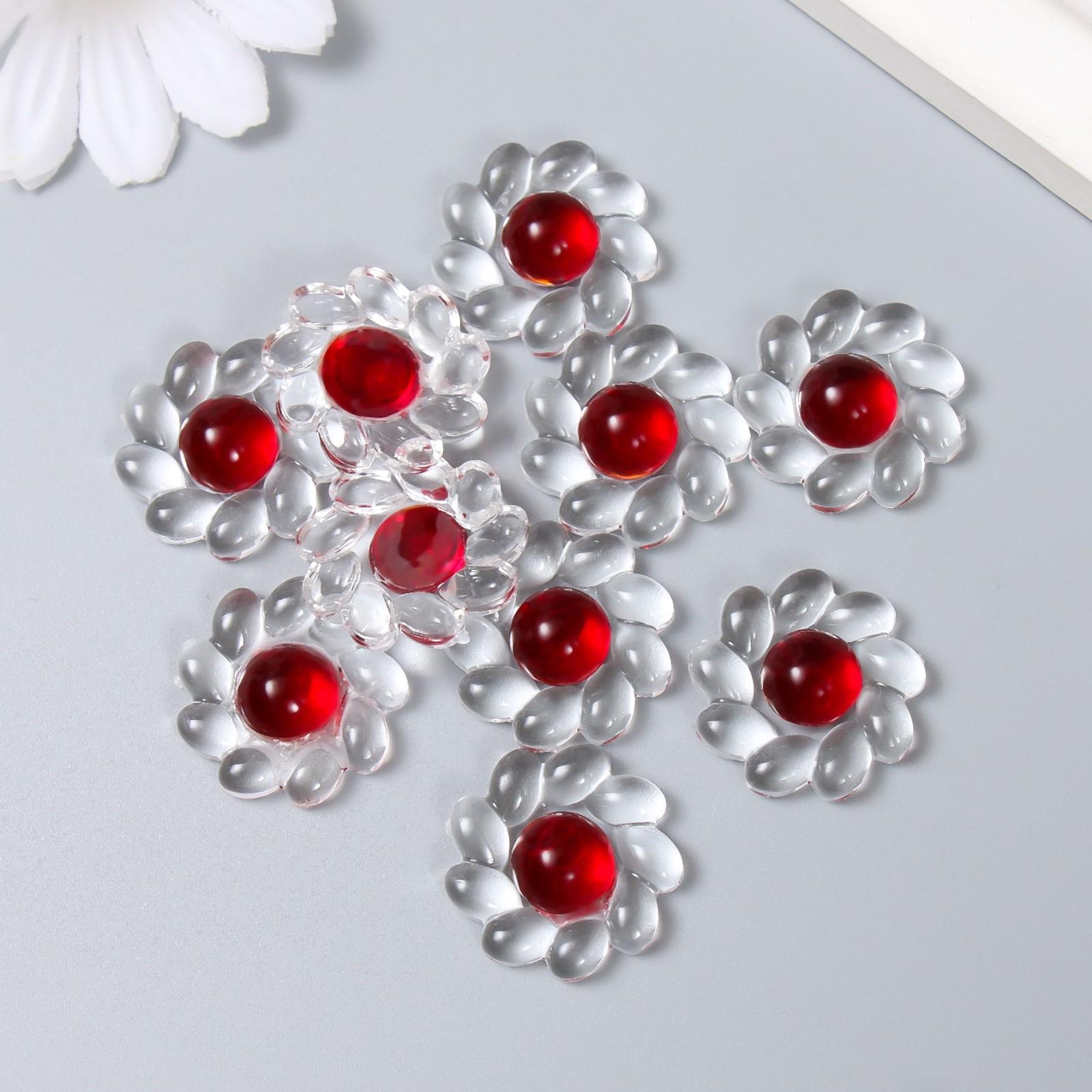 Декор для творчества пластик "Цветок с цветной серединкой" прозрачно-красный 0,8х2,4х2,4 см 912946