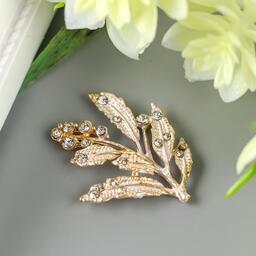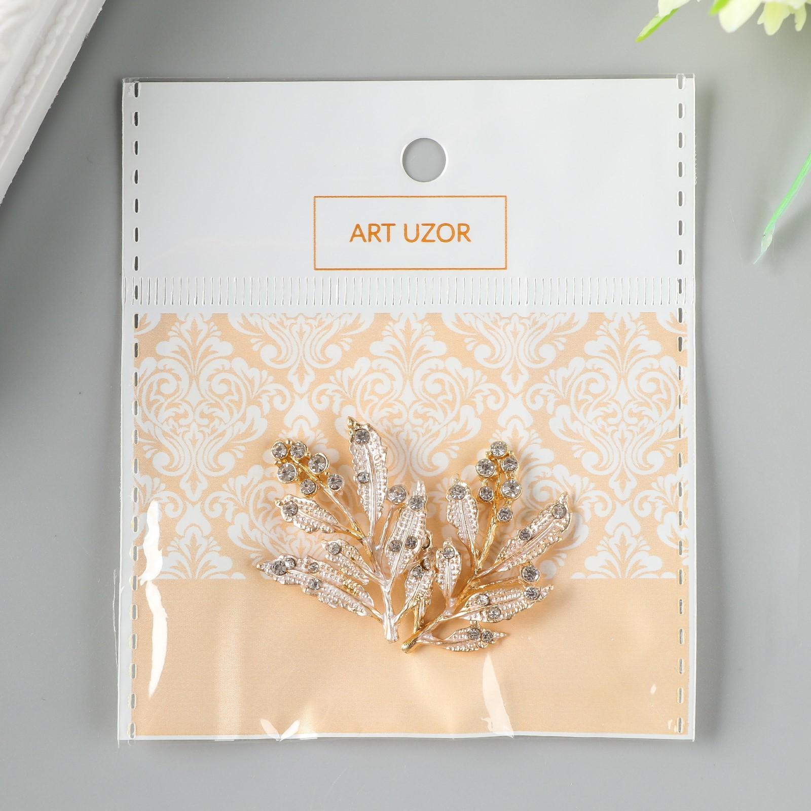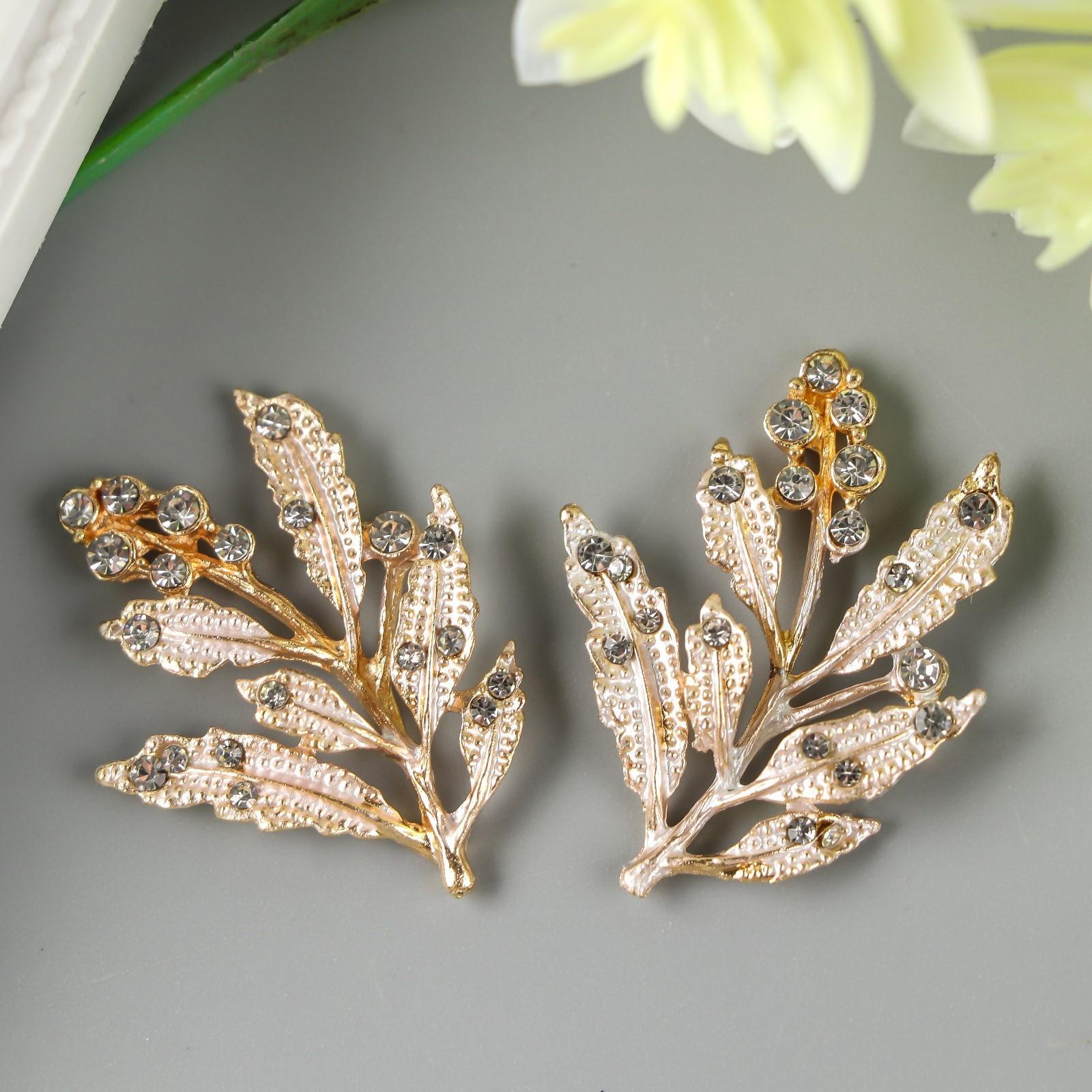 Декор для творчества металл "Листья с плодами" стразы, золото 2,4х3,1 см