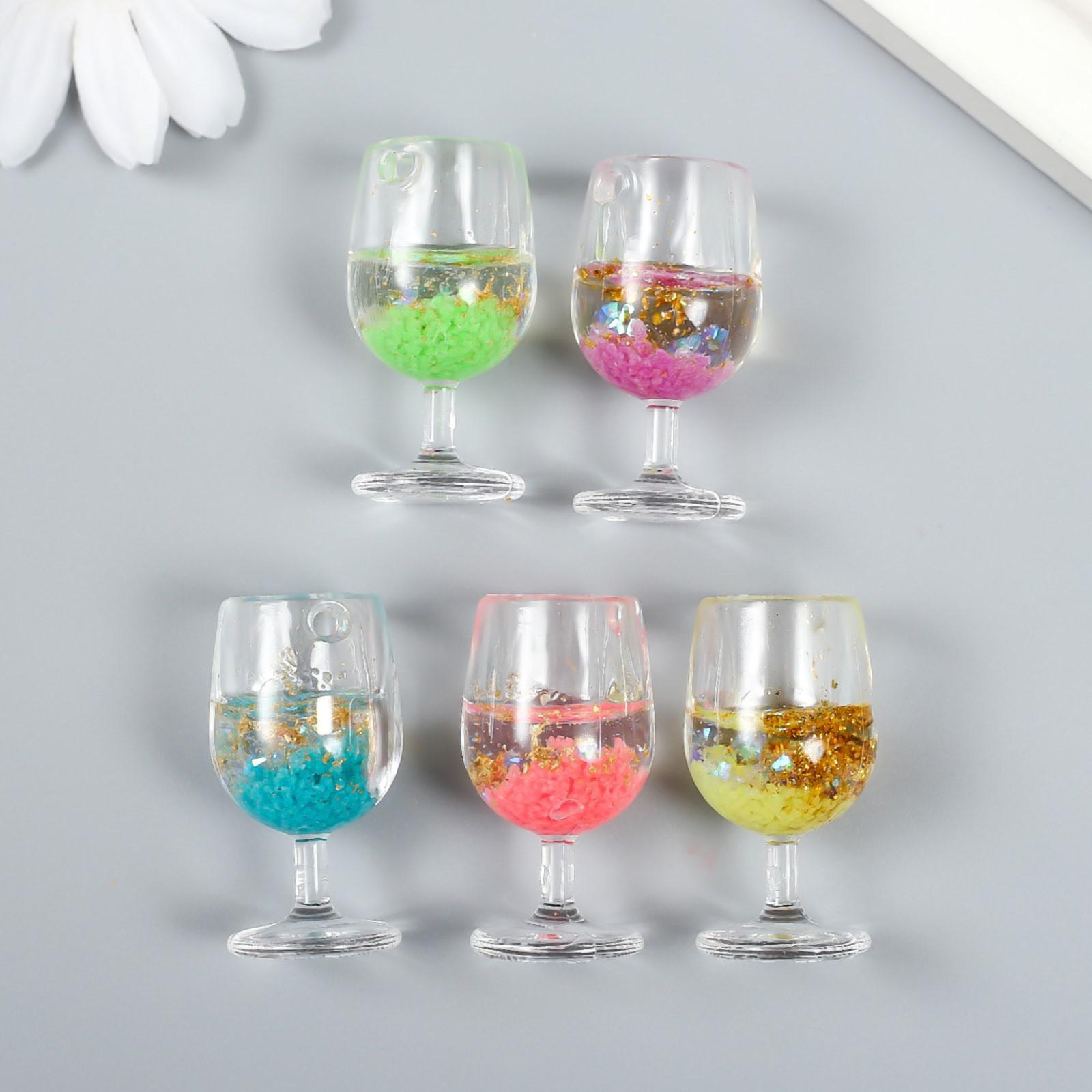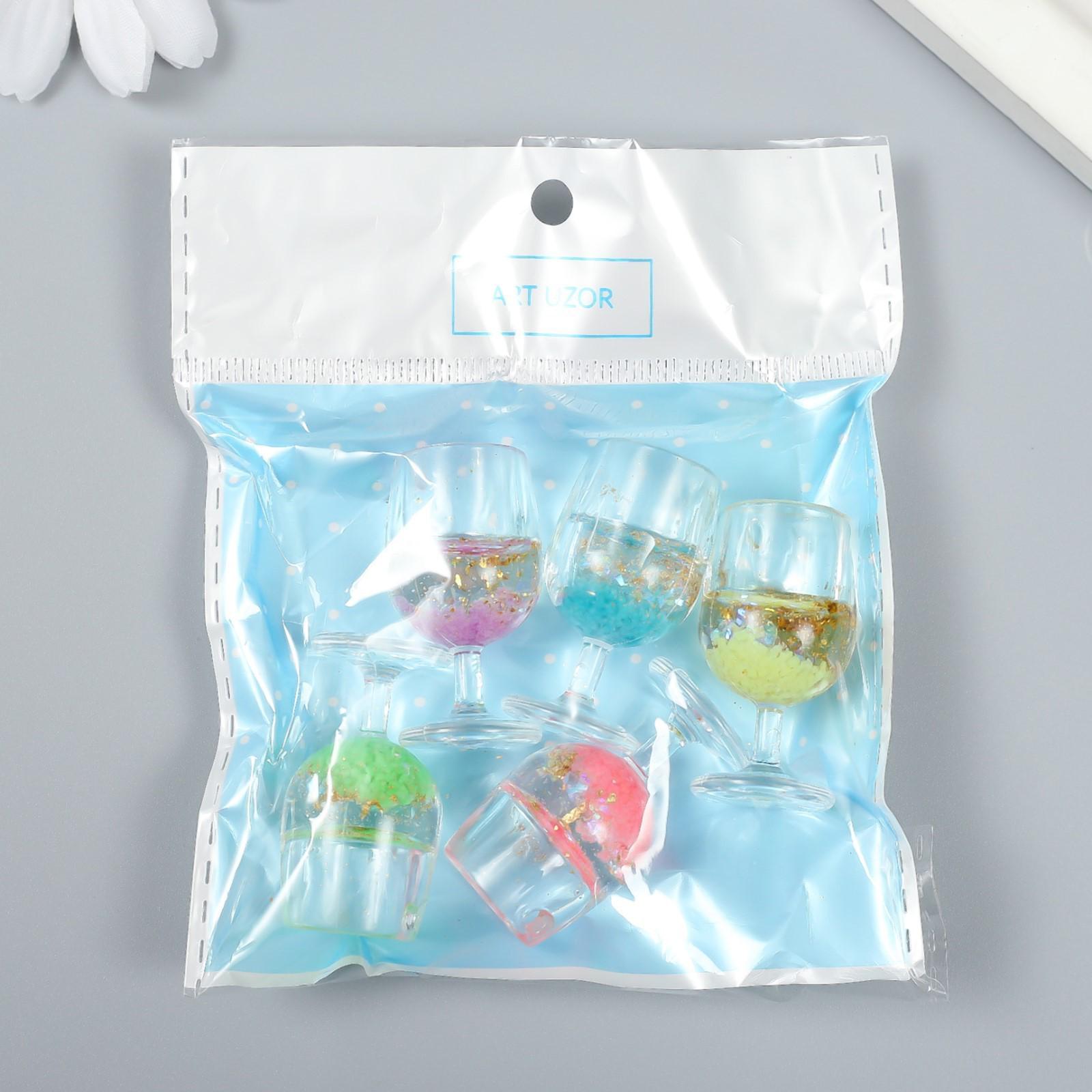 Декор для творчества пластик "Бокал светящийся с блёстками" МИКС 2х2х3,9 см