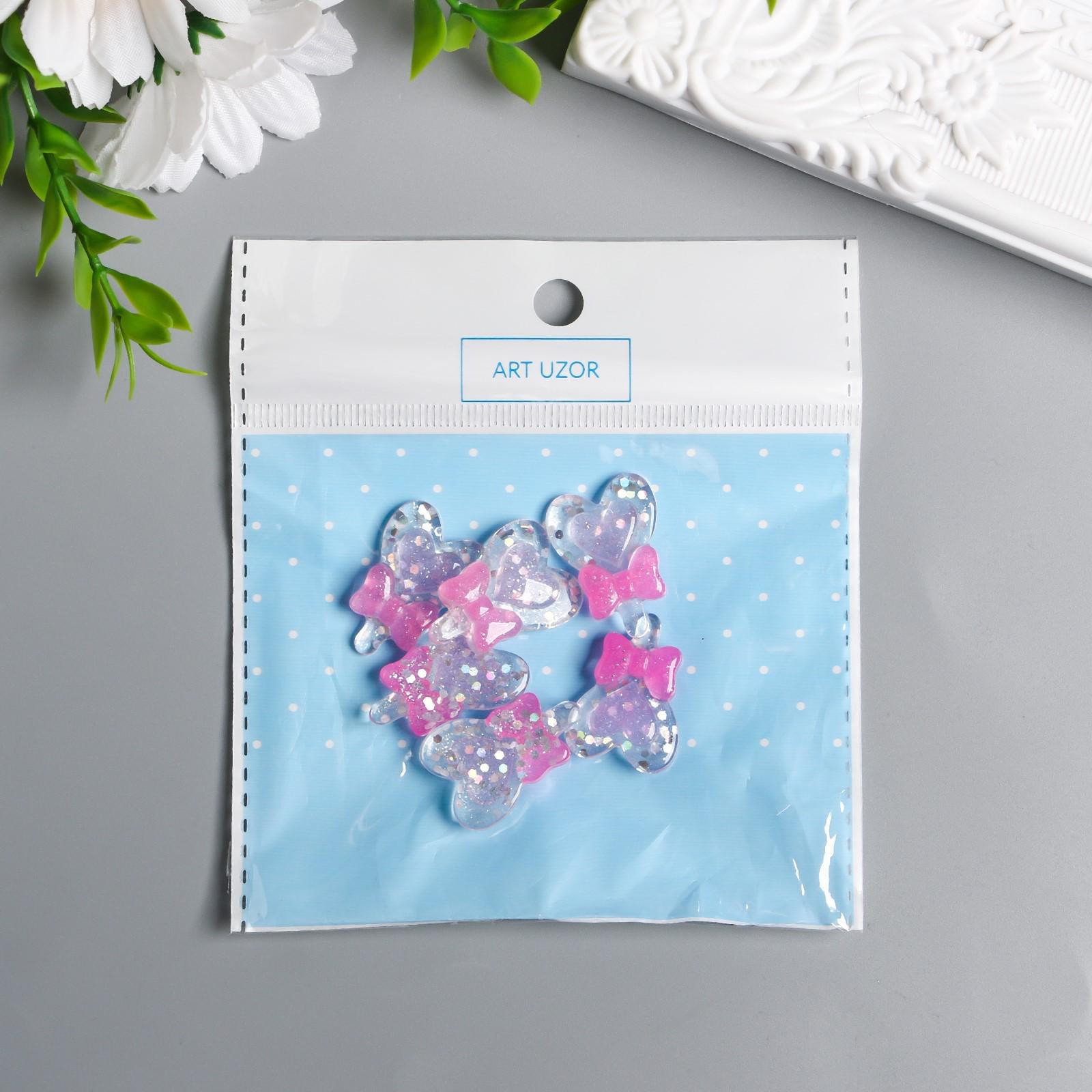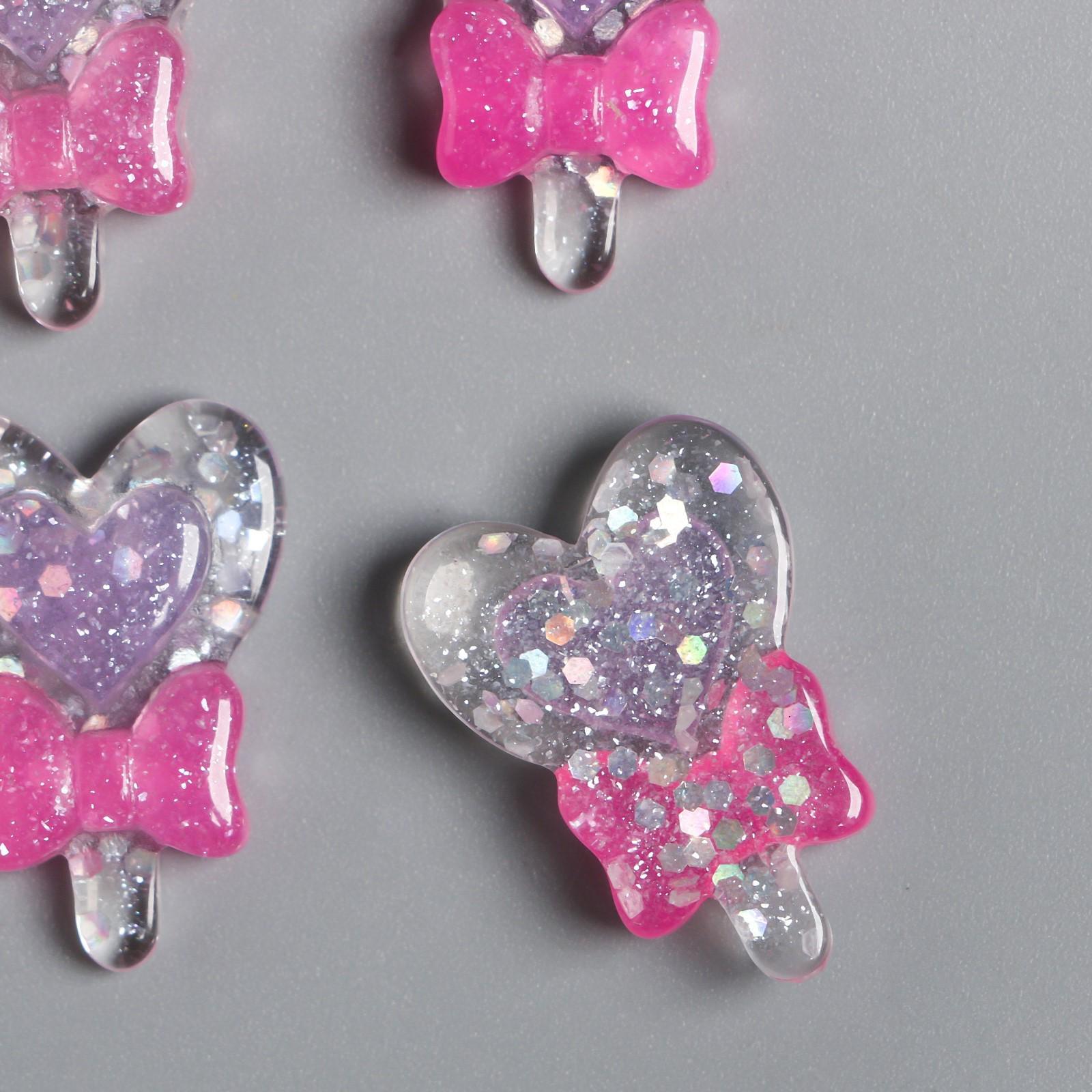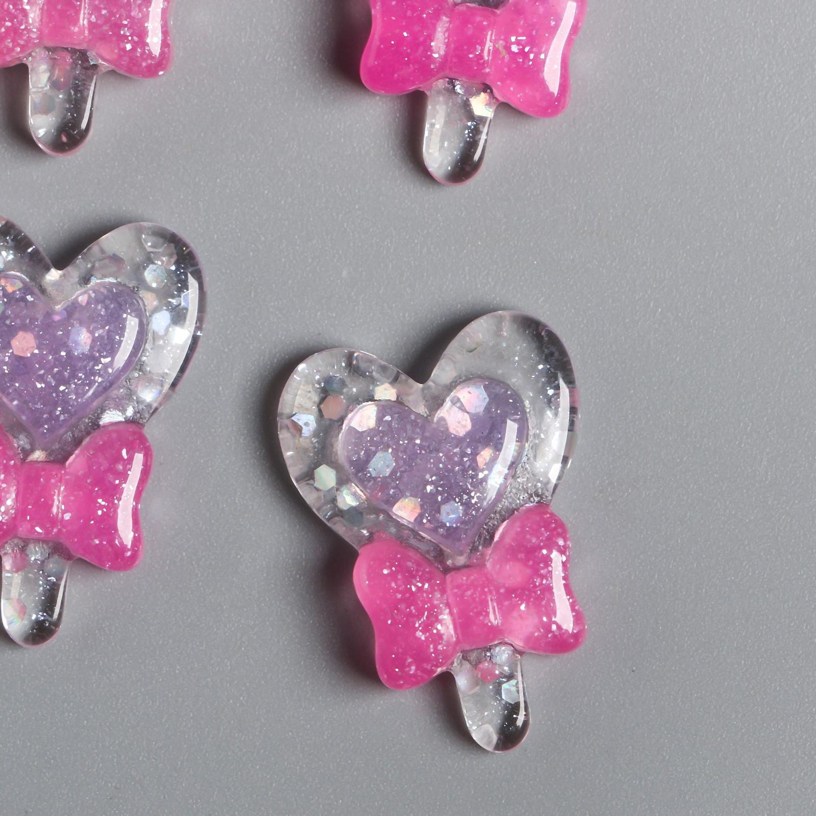 Декор для творчества пластик "Леденец-сердечко с розовым бантом" 2,5х1,8 см