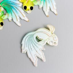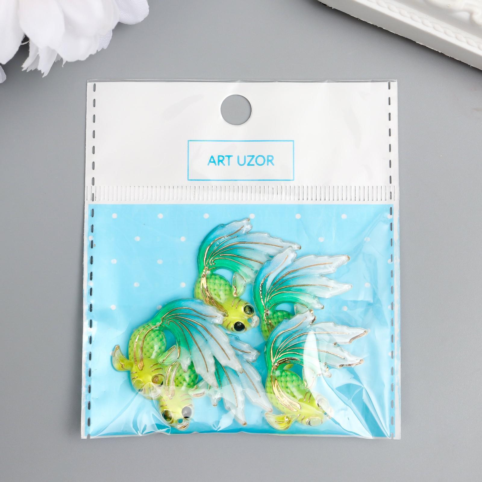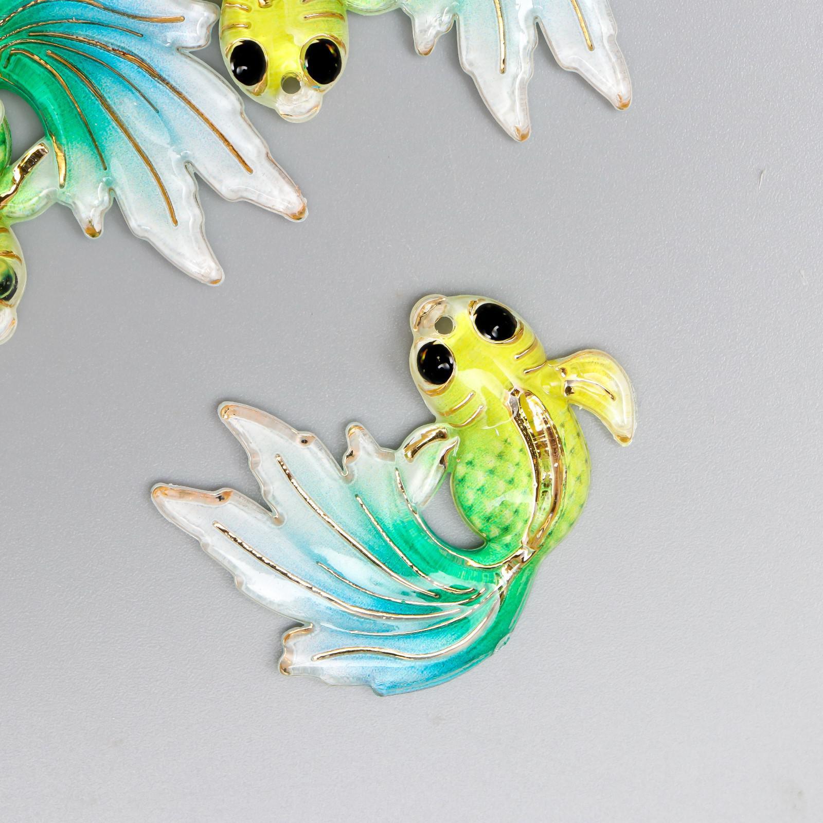 Декор для творчества пластик "Рыбка жёлтая с зелёно-голубым хвостом" с золотом 2,5х3 см
