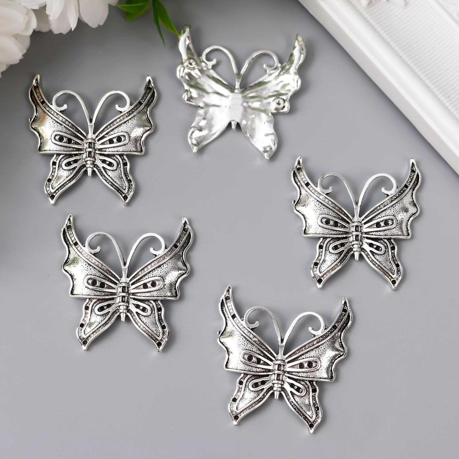 Декор для творчества металл "Бабочка Махаон" серебро 4,3х4,1 см