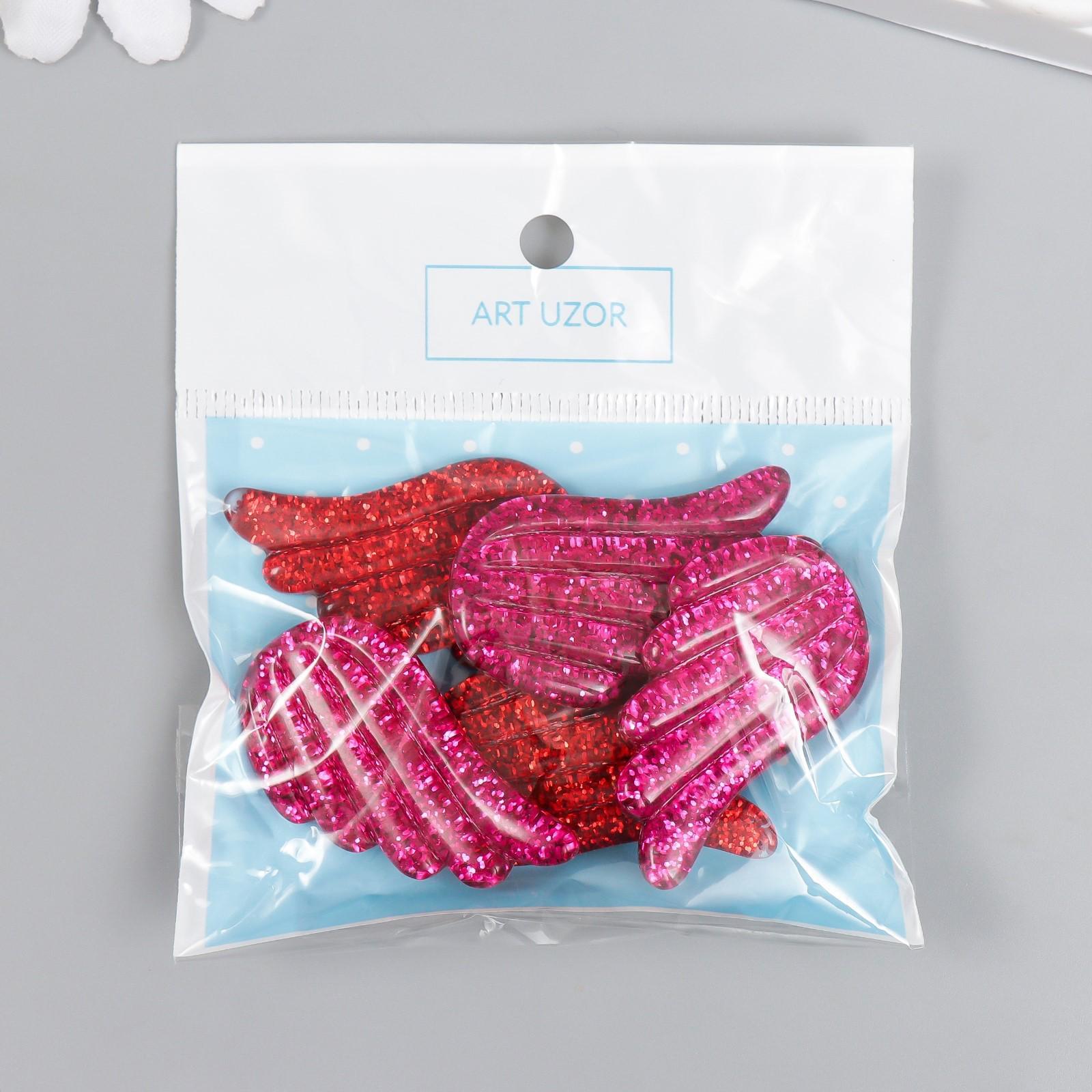 Декор для творчества пластик "Блестящие крылья" красно-розовый 2,2х3,3 см