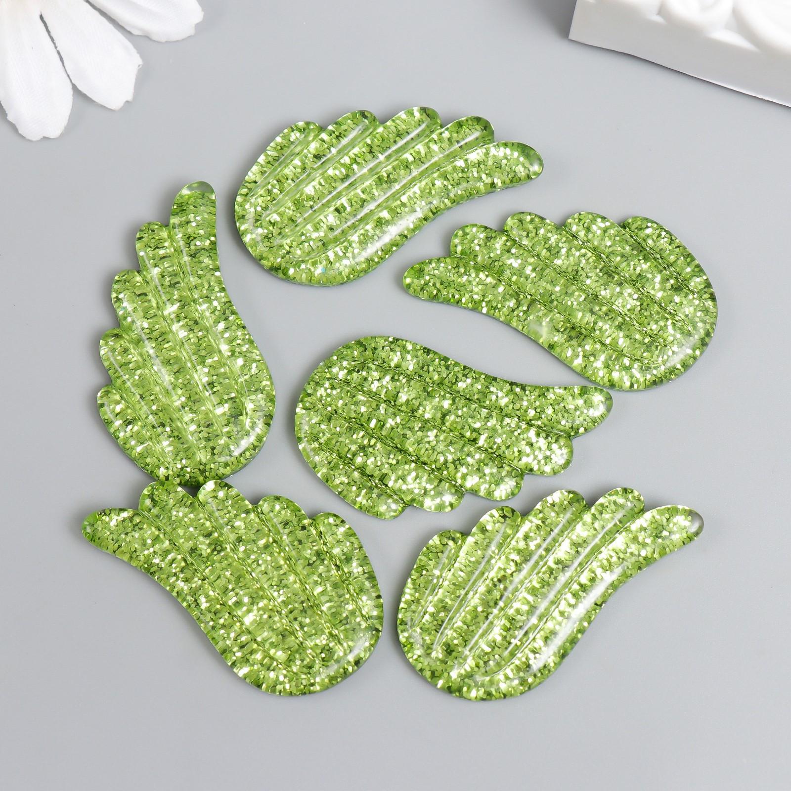 Декор для творчества пластик "Блестящие крылья" зелёный 2,2х3,3 см