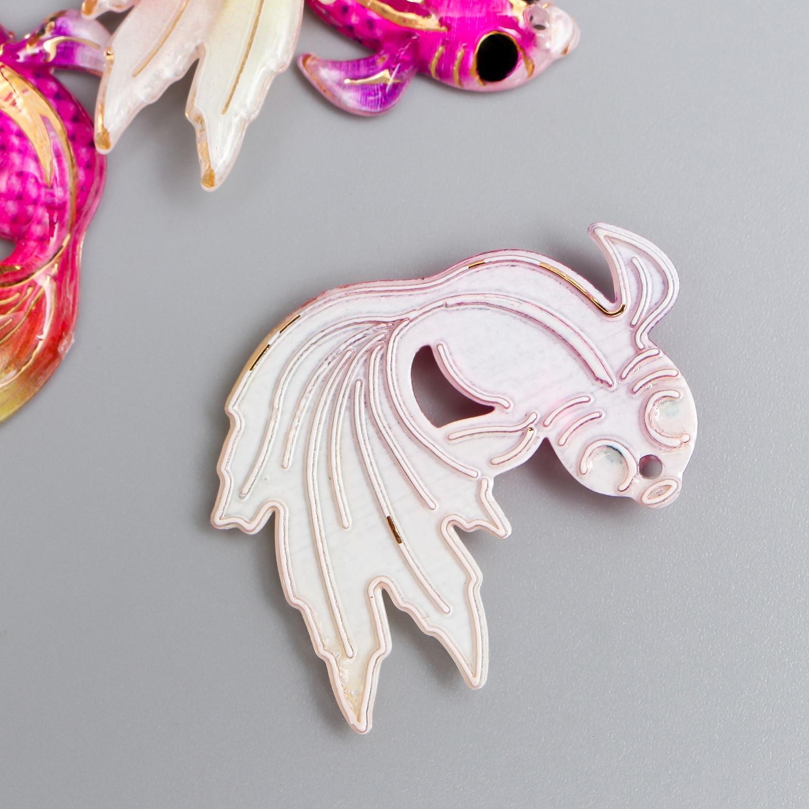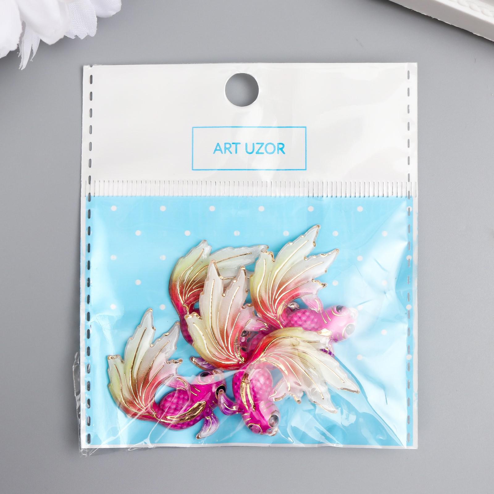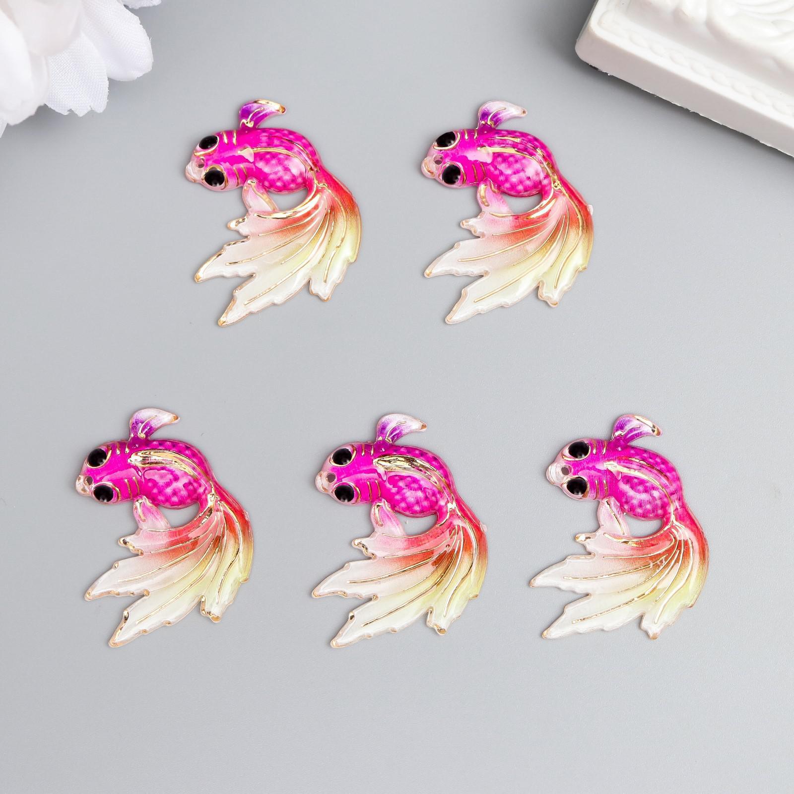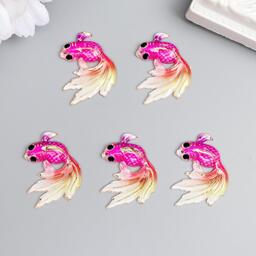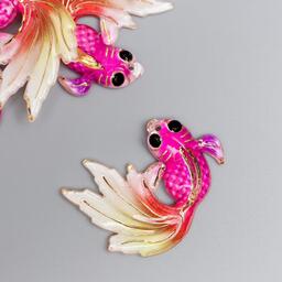 Декор для творчества пластик "Рыбка розовая с красно-жёлтым хвостом" с золотом 2,5х3 см