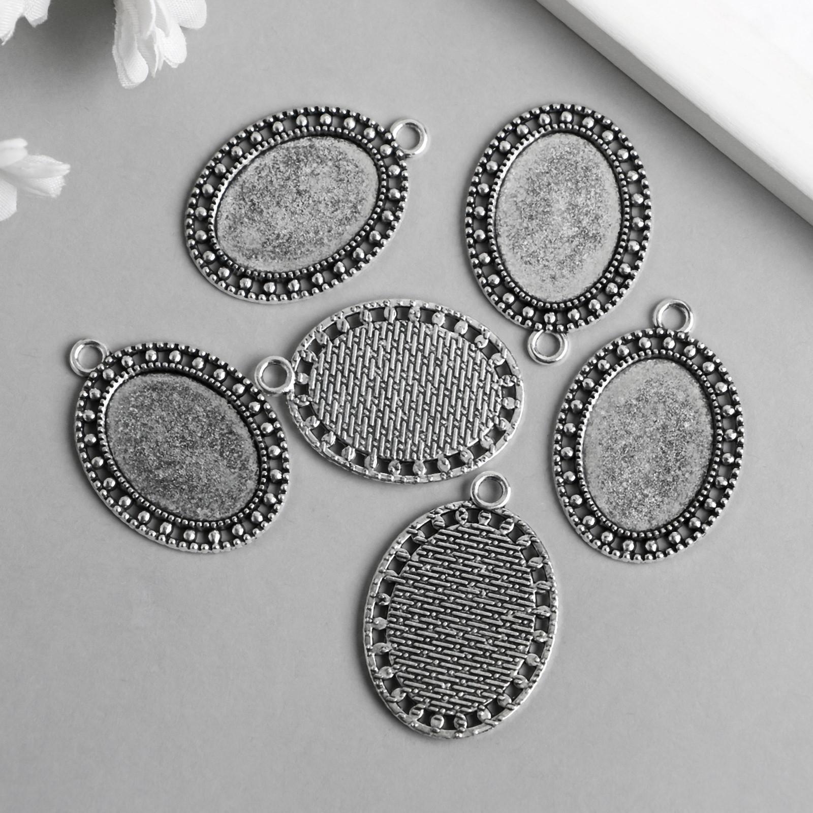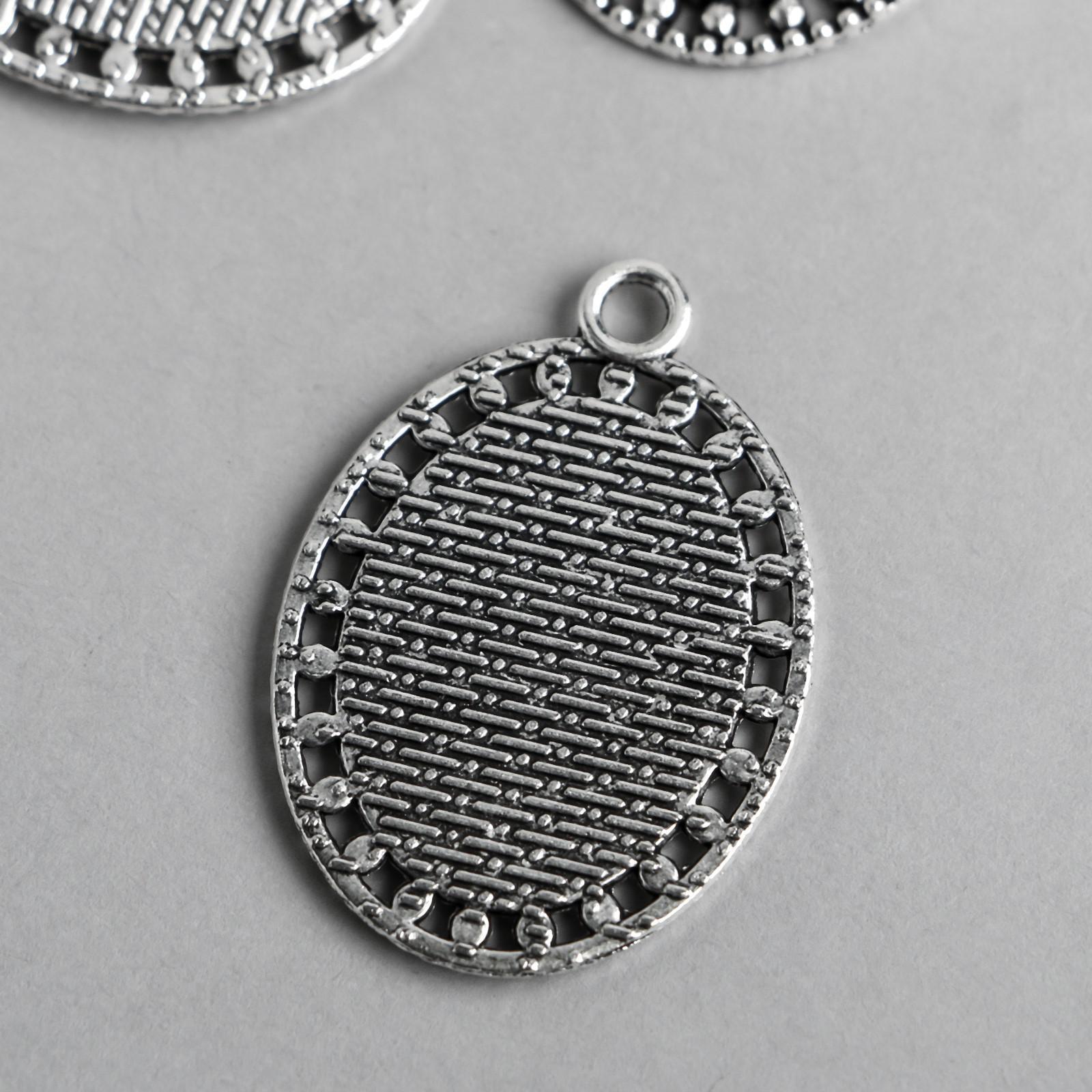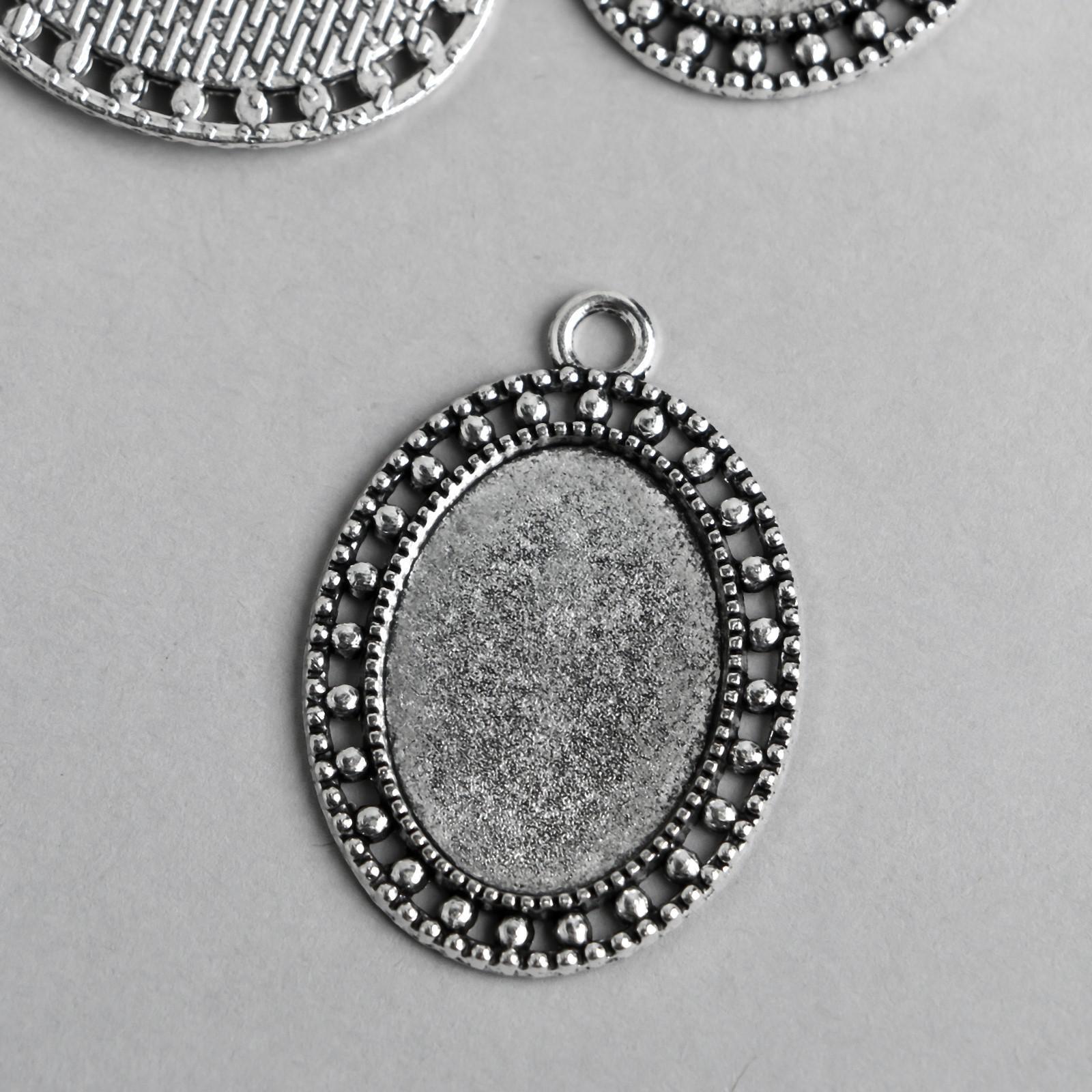 Сеттинг (основа под кабошон) металл "Медальон - Точки" серебро 7915 3,7х2,6 см