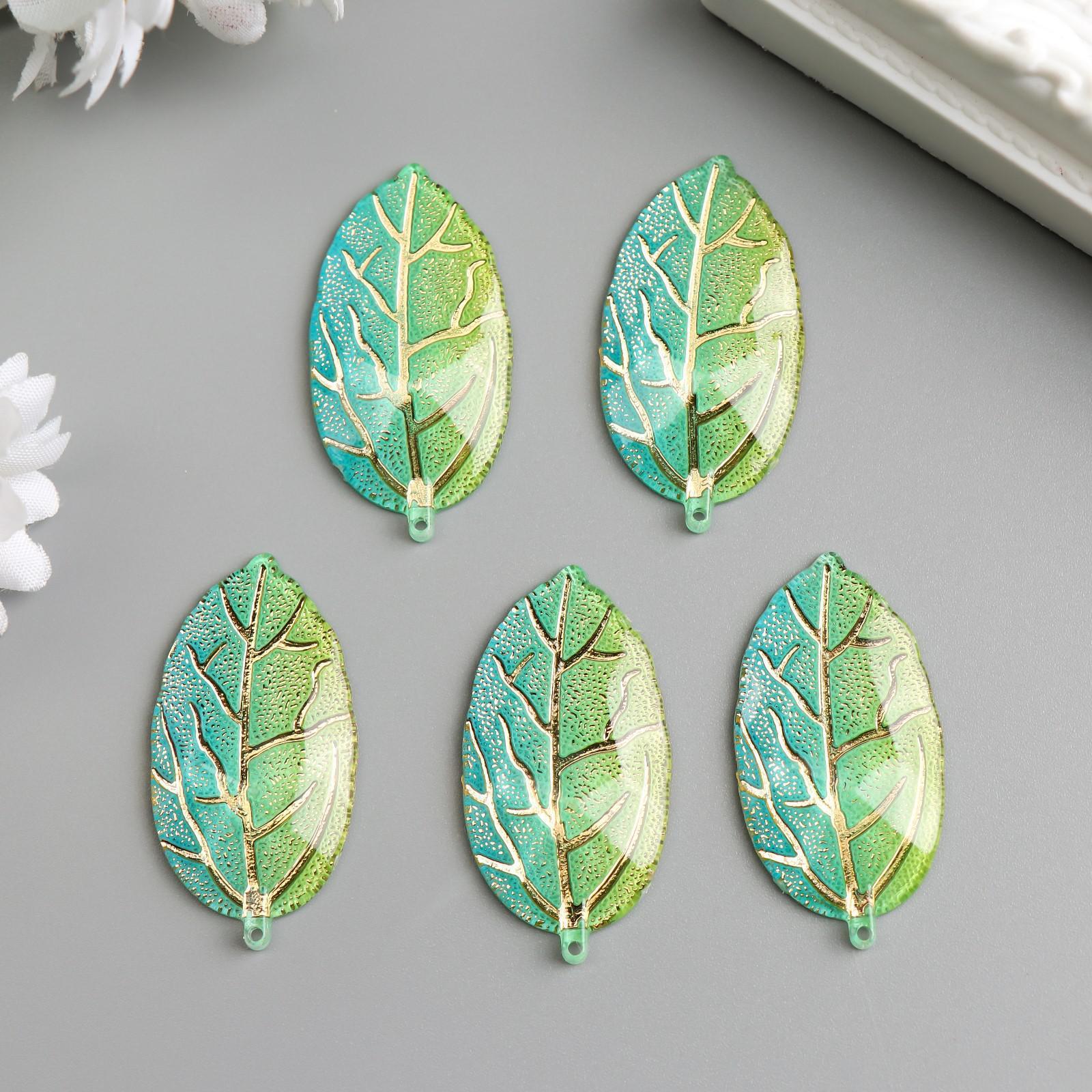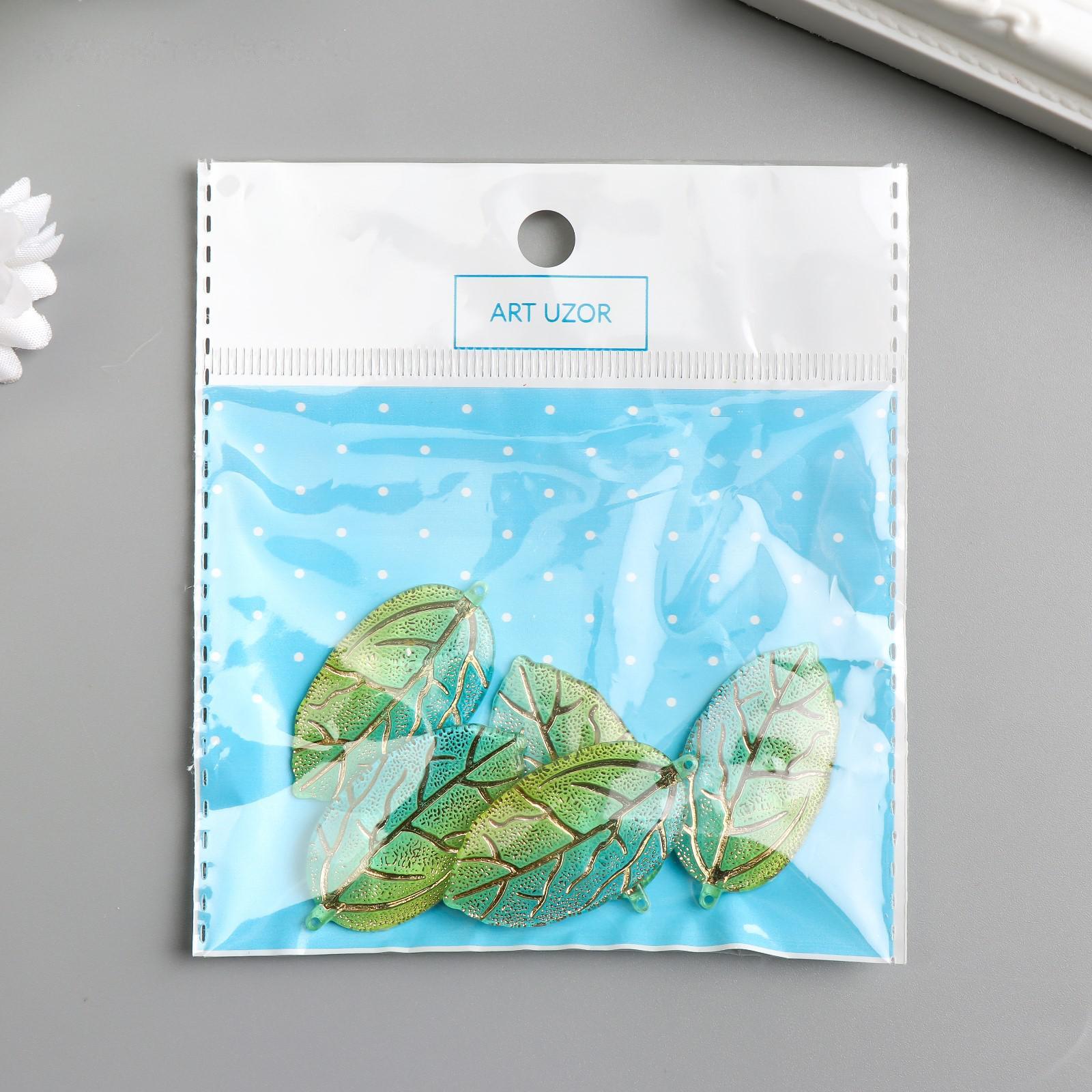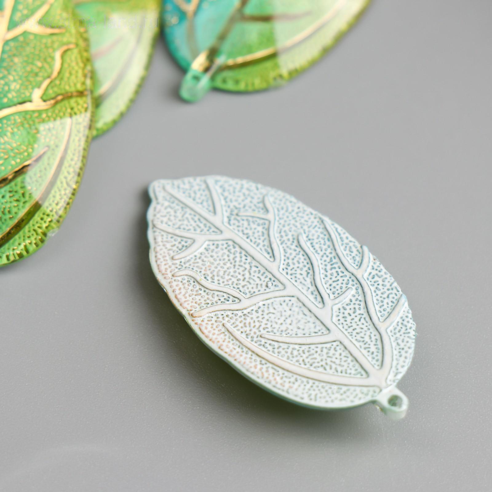 Декор для творчества пластик "Лист с золотыми линиями" 4х2 см