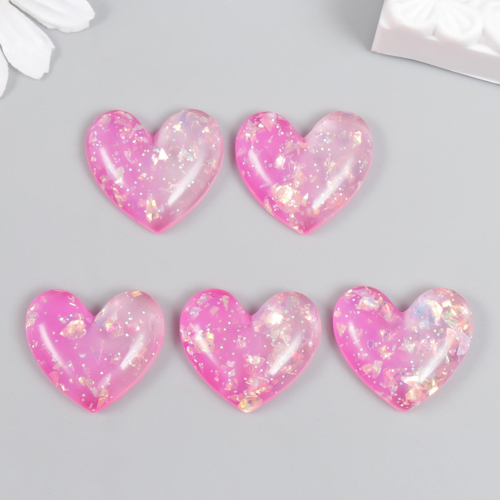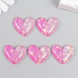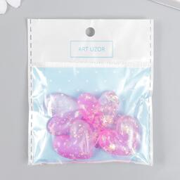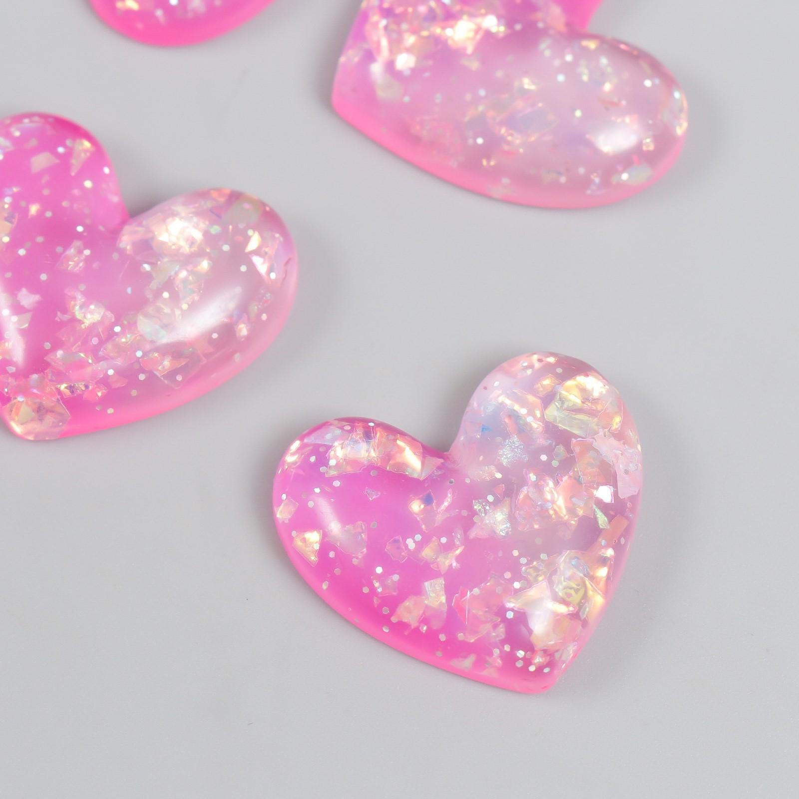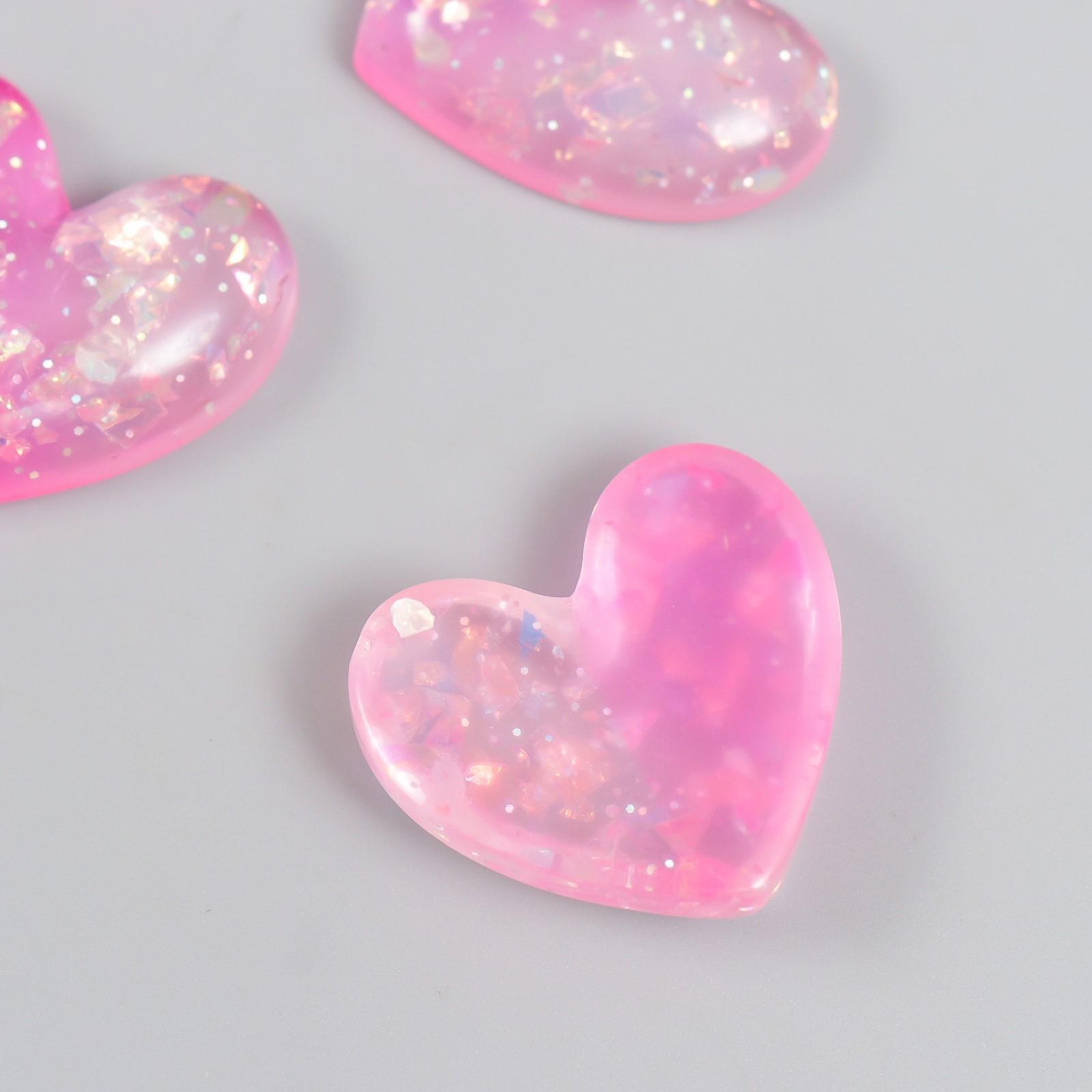 Декор для творчества пластик "Сердечки с глиттером" розовый 2,8х2,4 см