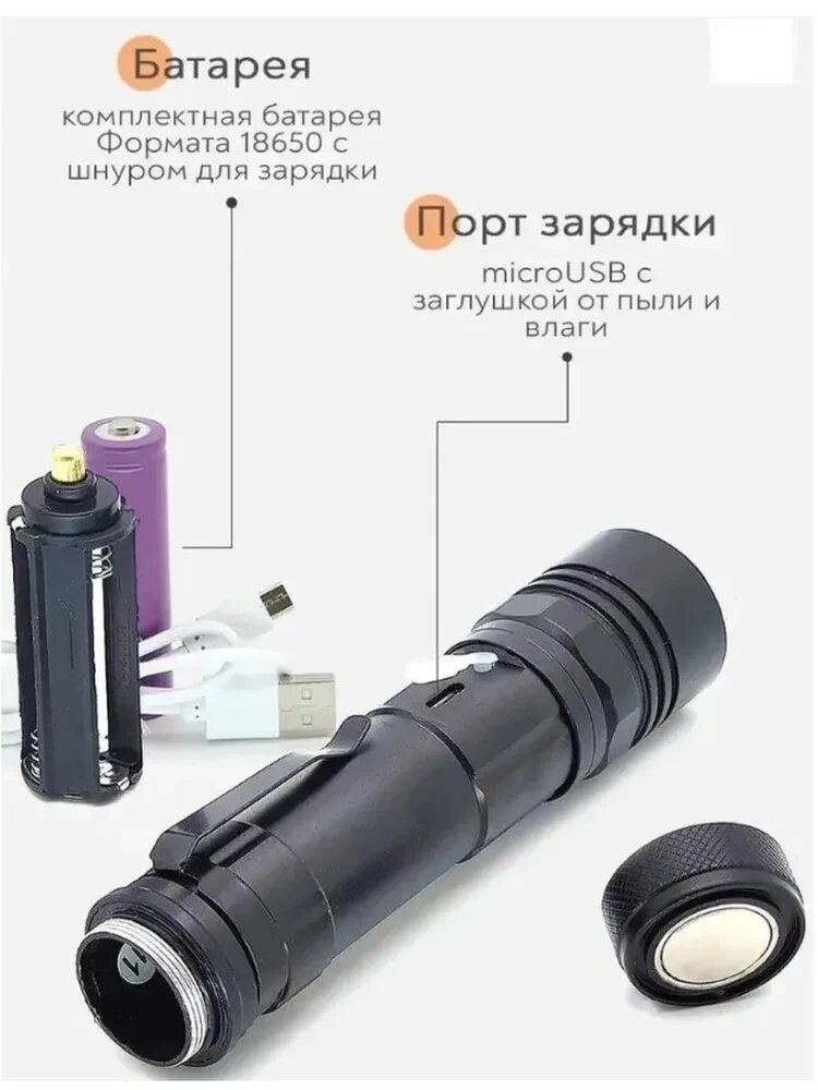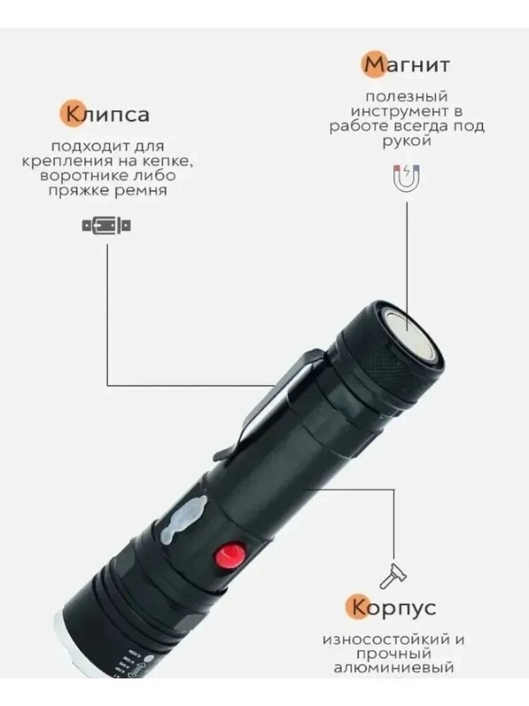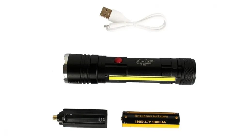 Фонарь ручной с АКБ T6-26 (YY-716) (T6+COB+Магнит, 18650, шнур для зарядки micro USB)