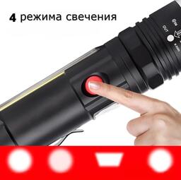 • Режимы работы фонаря Средний, Максимальный, Минимальный, Режим SOS