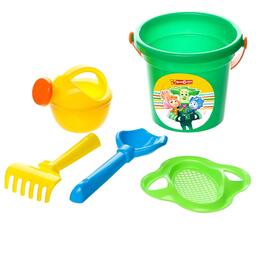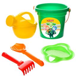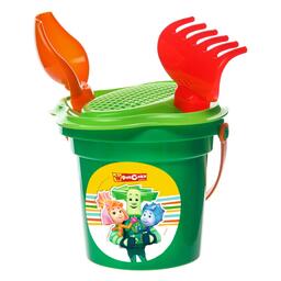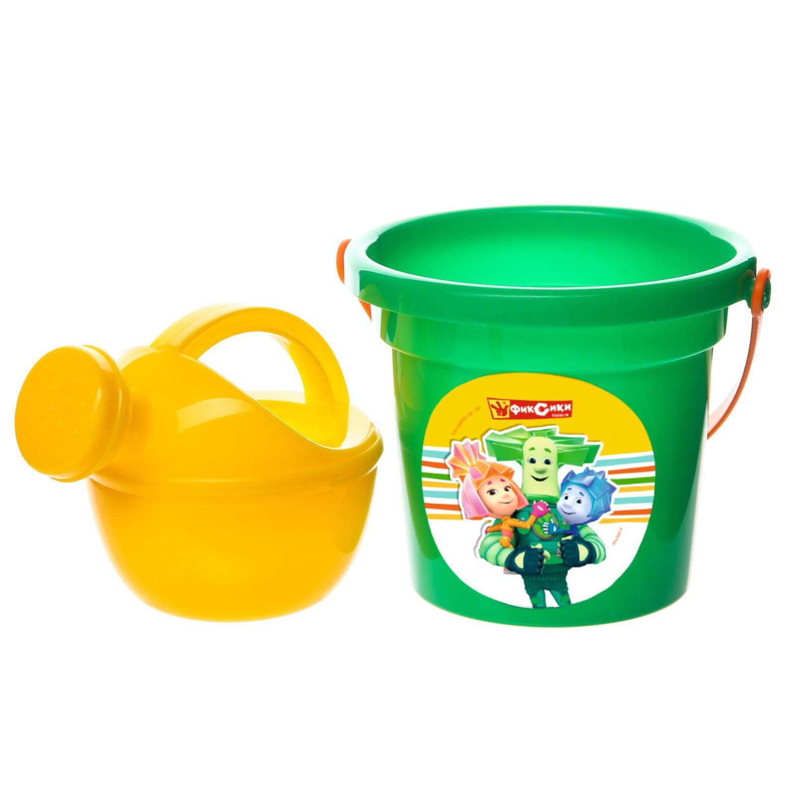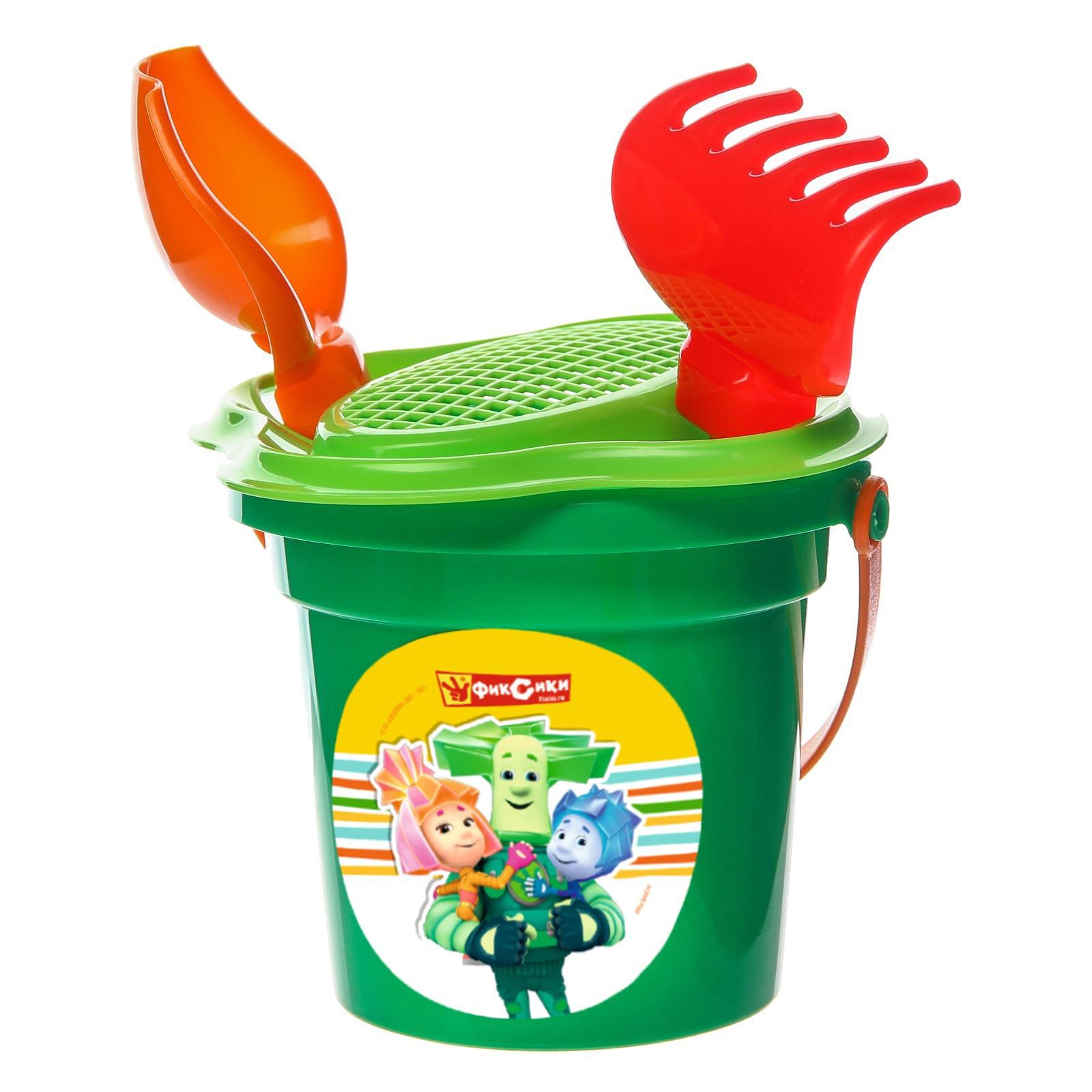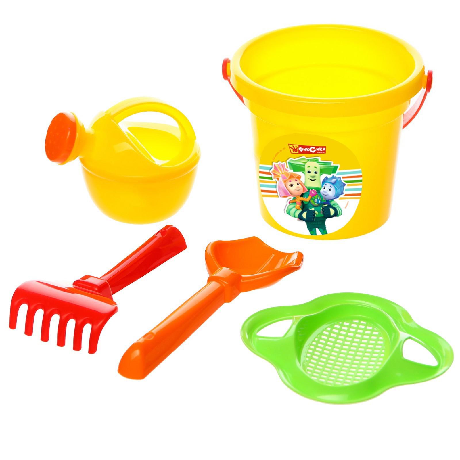 Набор для игры в песке ФИКСИКИ: ведро-крепость малое, ситечко, совок, лейка, цвет МИКС