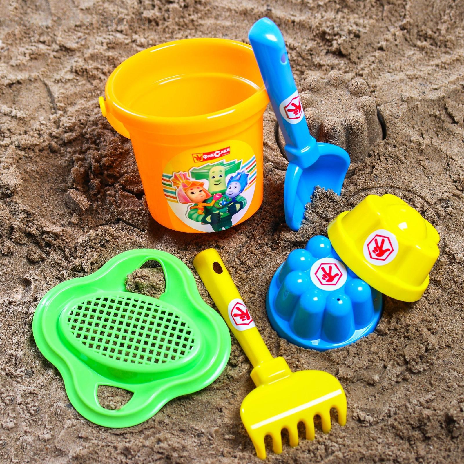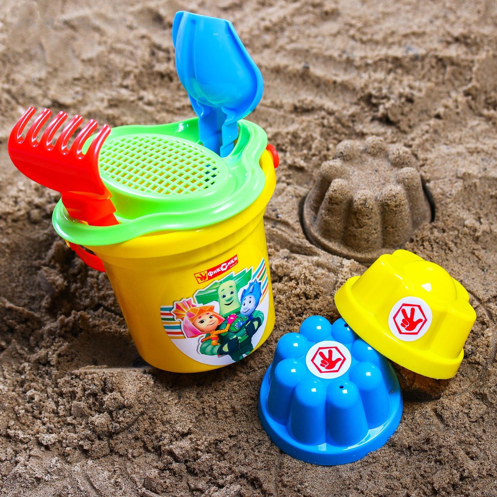 Набор для игры в песке: ведро, сетка, лопата, грабли, 2 формочки, ФИКСИКИ цвет МИКС, 530 мл