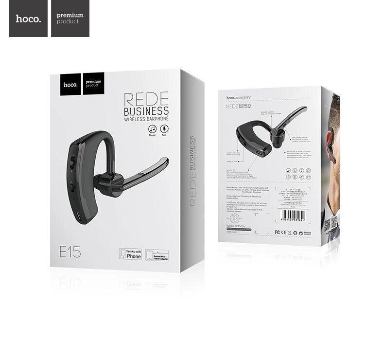 Bluetooth гарнитура HOCO E15 (Bluetooth 4.1, 90 мАч, бизнес-модель) Черная