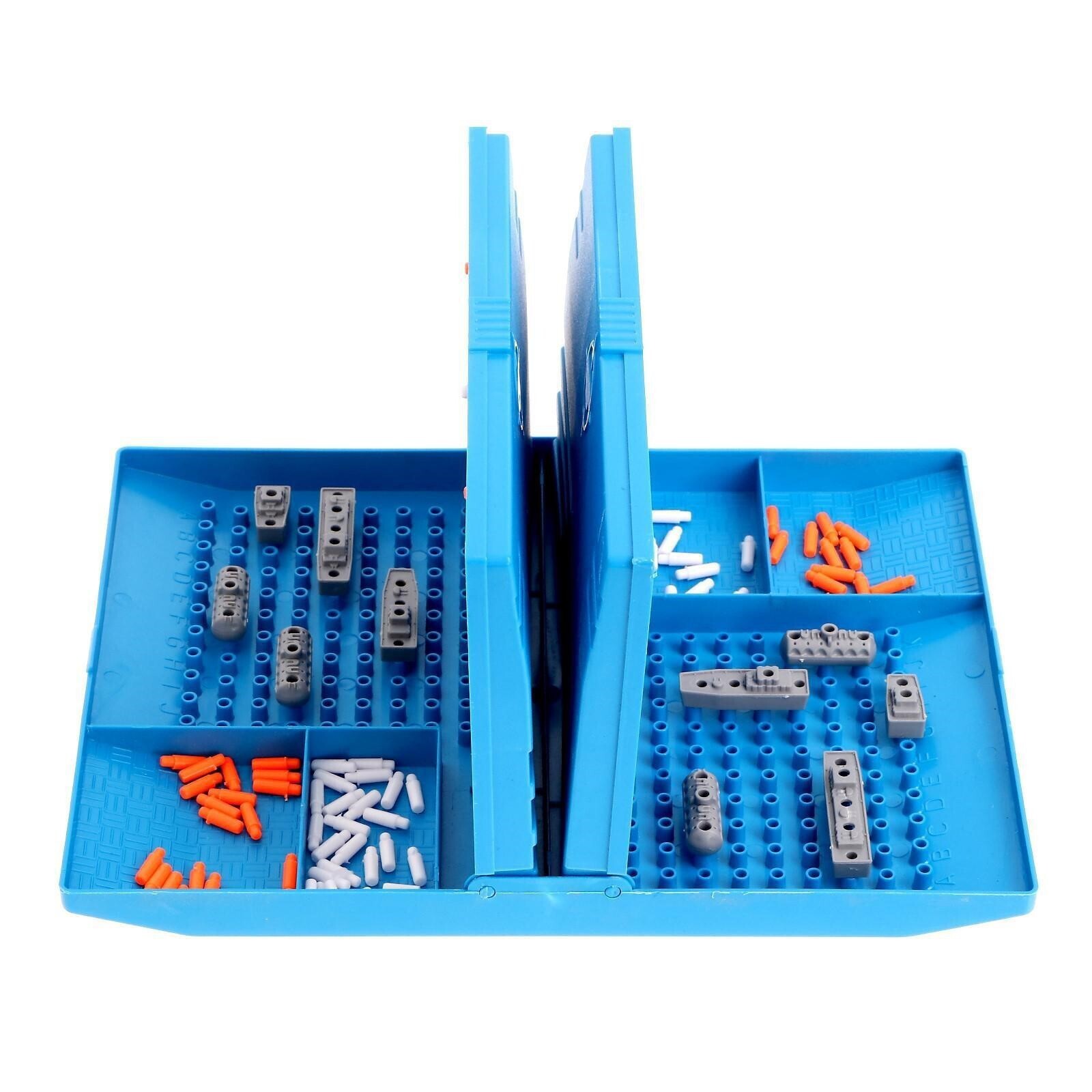 Поставьте чемоданчик на удобную поверхность и откройте крышки. У каждого игрока будет поле с двумя сетками для расстановки кораблей: своих и противника. В наборе вы найдёте 10 судов: разделите их поровну между участниками. Угадайте месторасположение флотилии соперника и потопите все корабли.