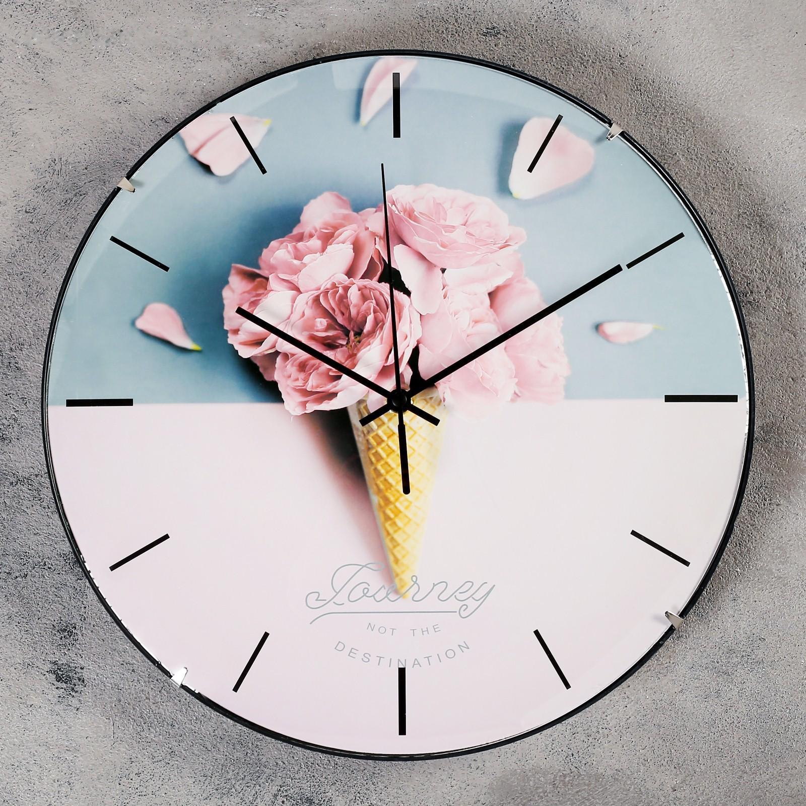 Часы настенные, серия: Интерьер, "Розовый рожок", плавный ход, d-30 см